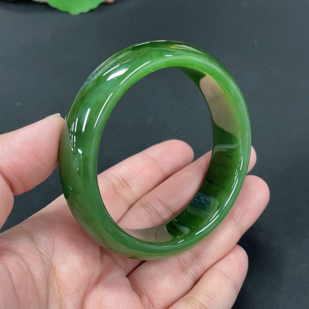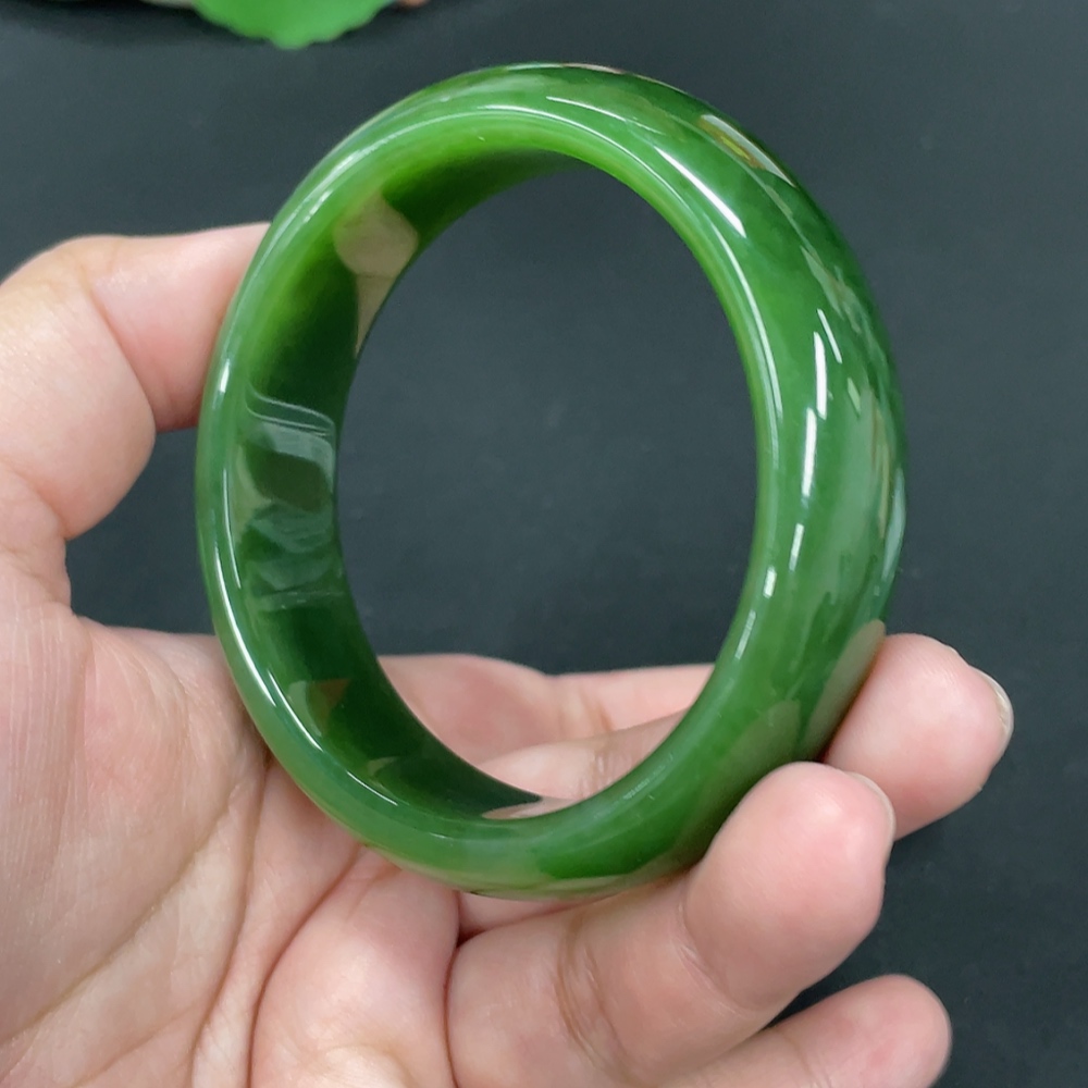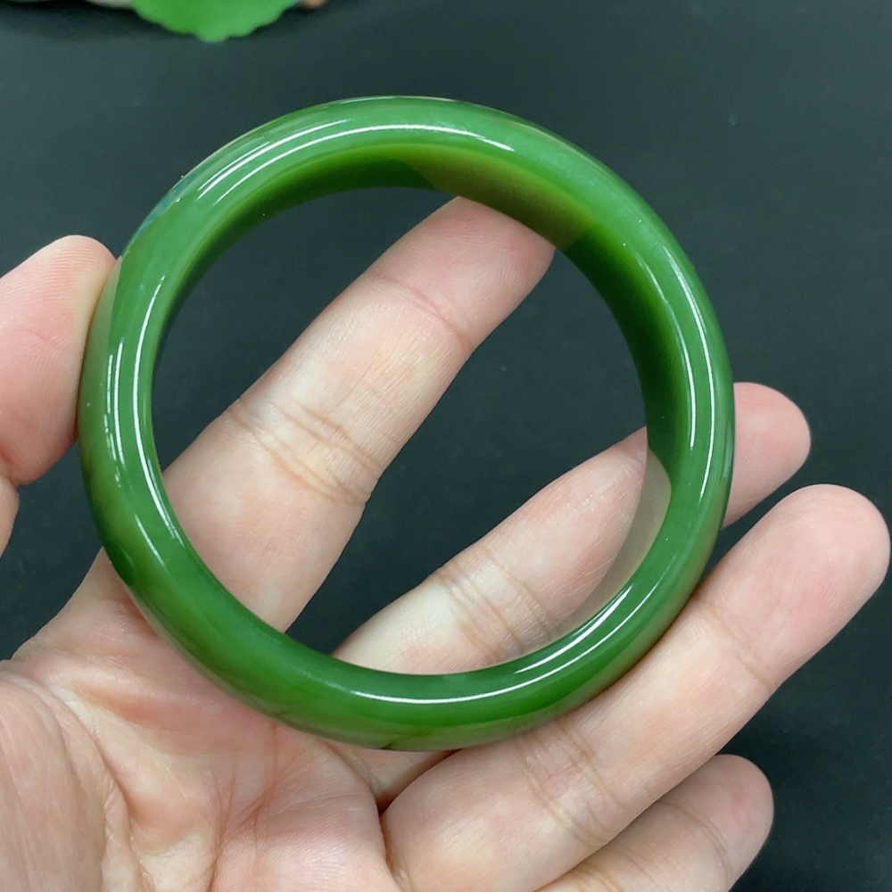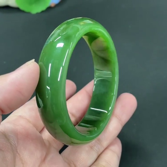Hetian Jade Green Jade Round Bracelet Size 58.5 Total Weight Approx. 70.4g