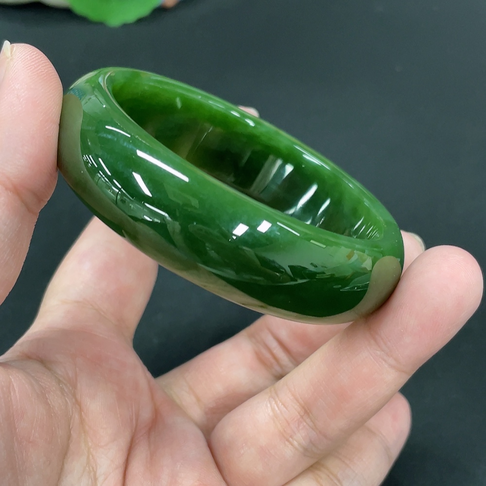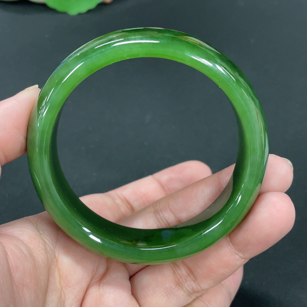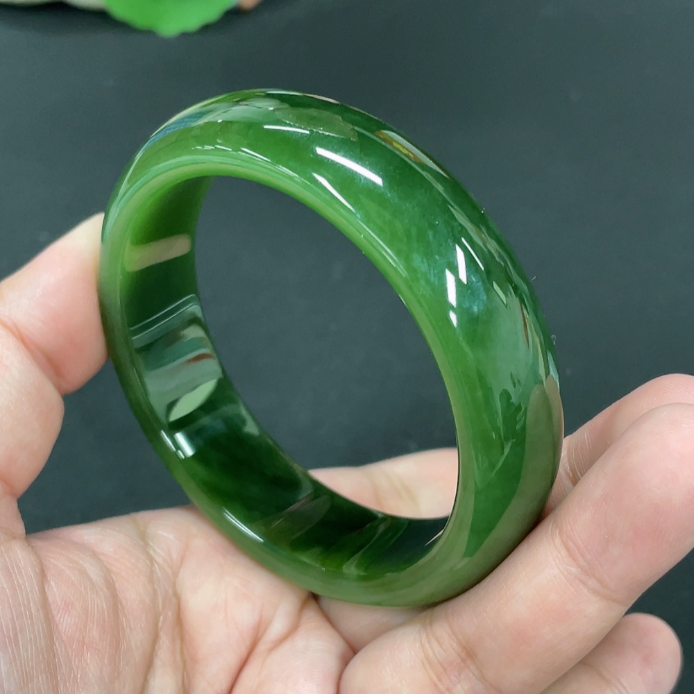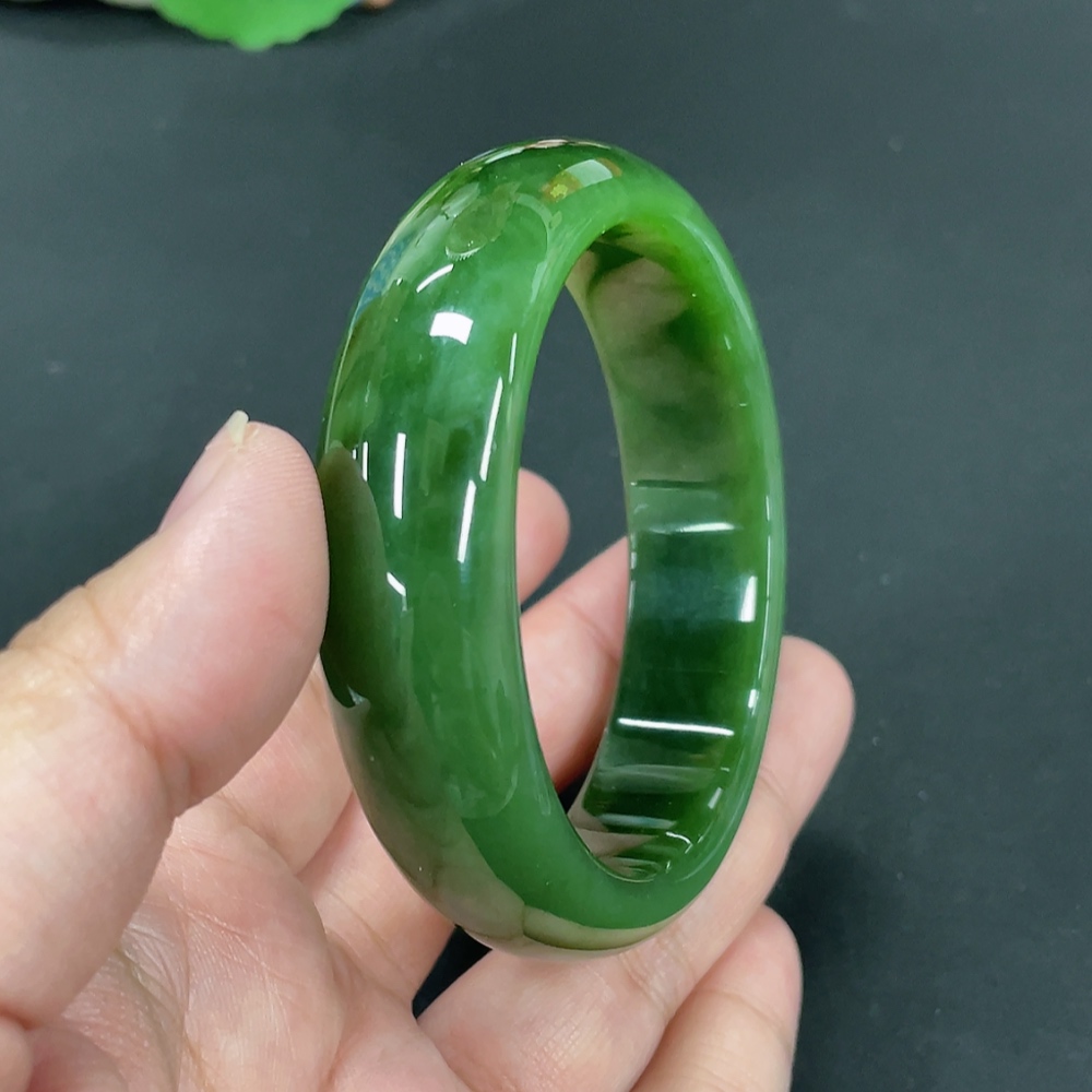 Hetian Jade Green Jade Round Bracelet Size 58.5 Total Weight Approx. 70.4g