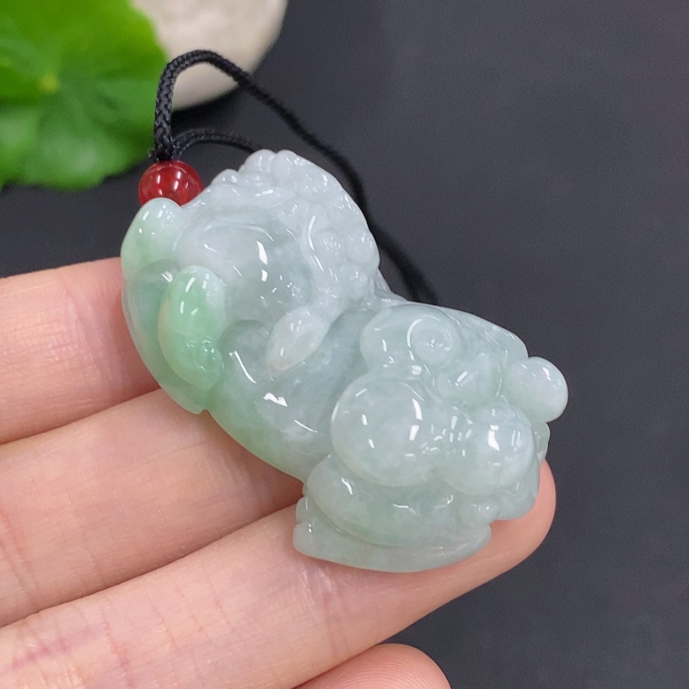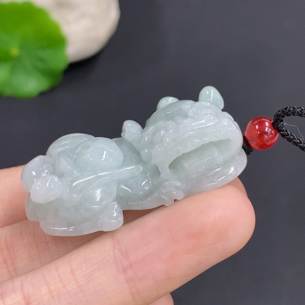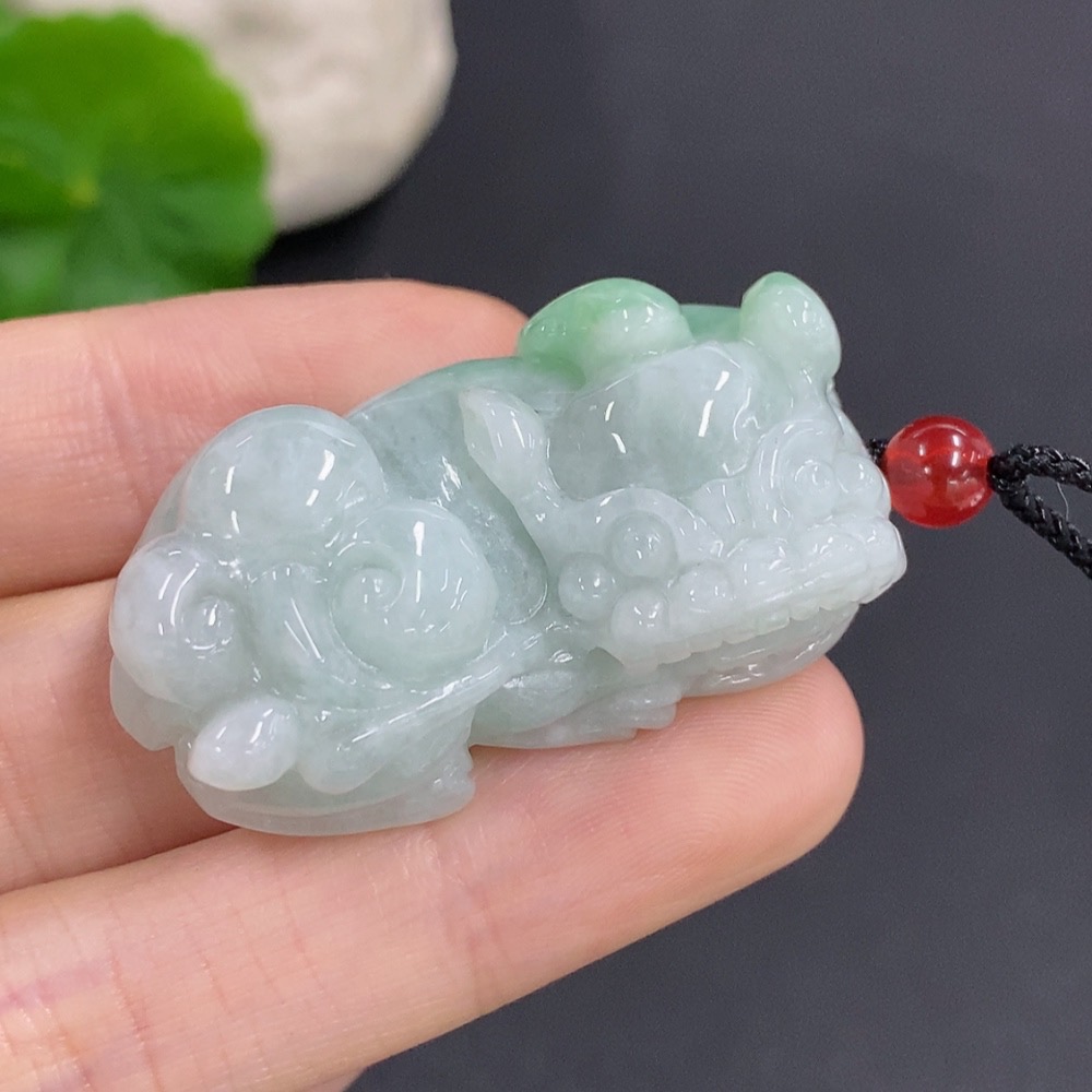 Jadeite Pi Xiu Pendant, Total Weight Including Rope Approximately 27.2g