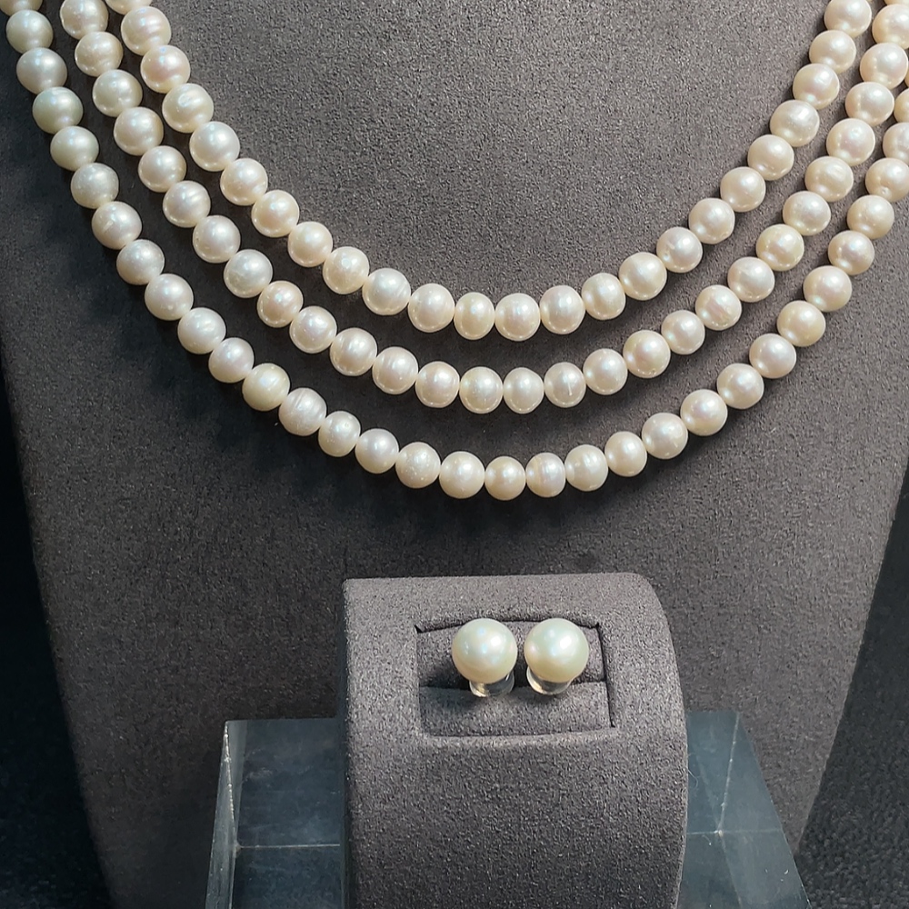 Pearl Necklace + Earrings Non-Gold Total Weight Approx. 104.13g Sell as a Lot