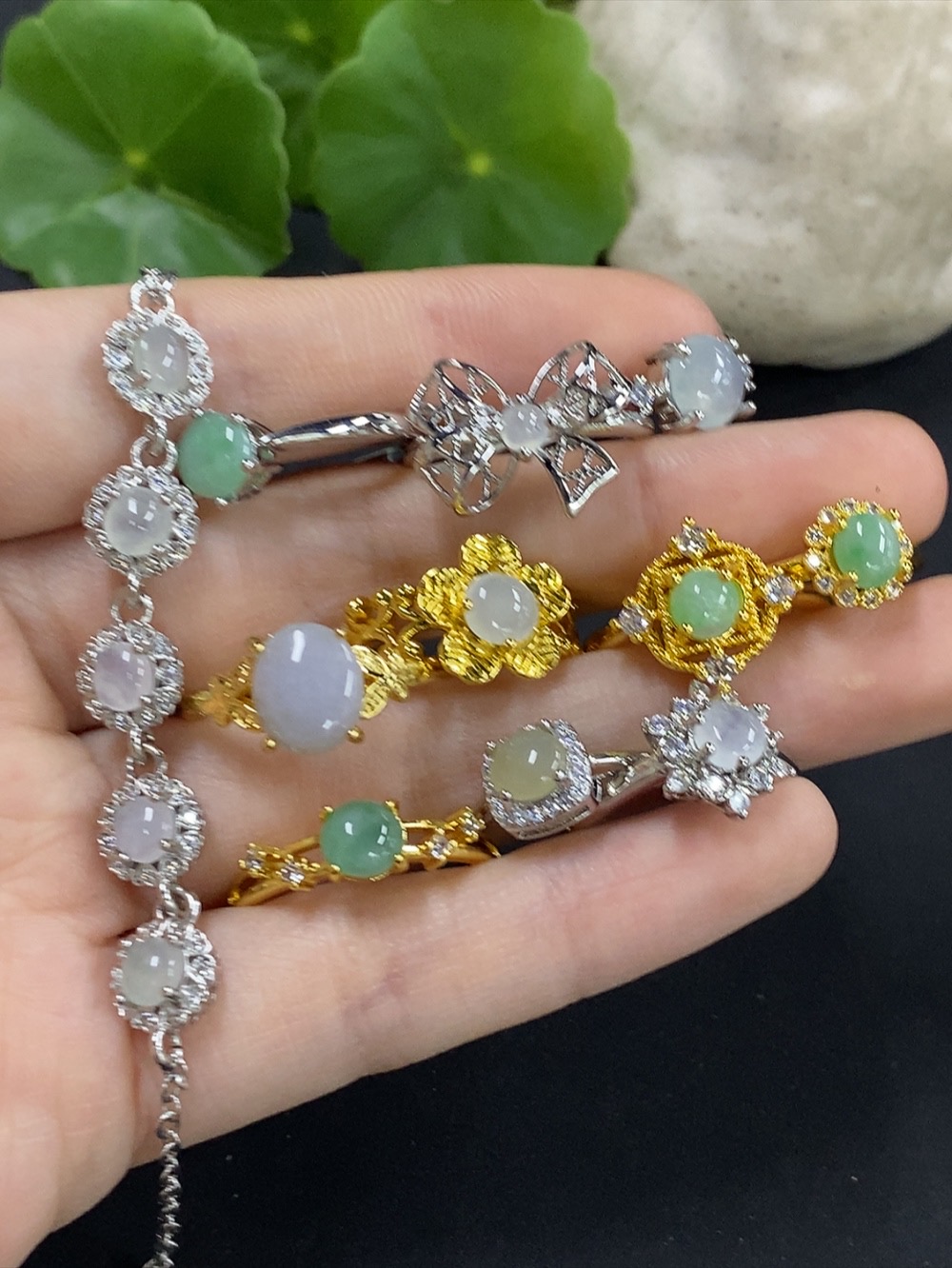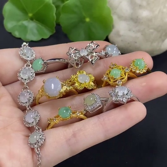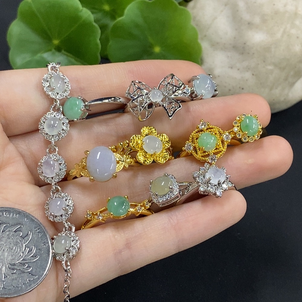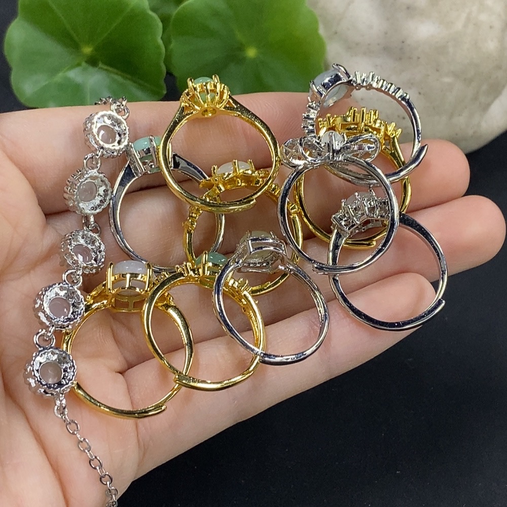 Jadeite cabochon bracelet/adjustable ring, non-gold setting