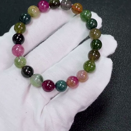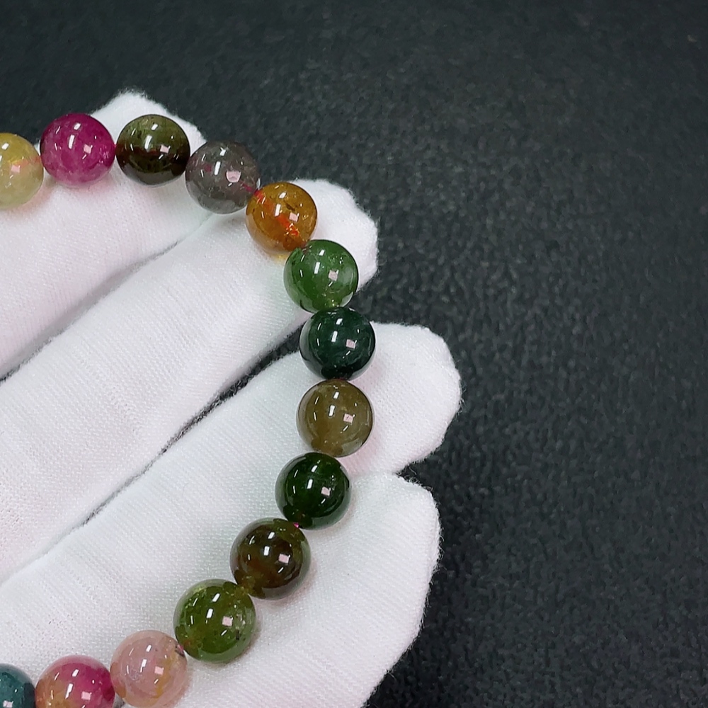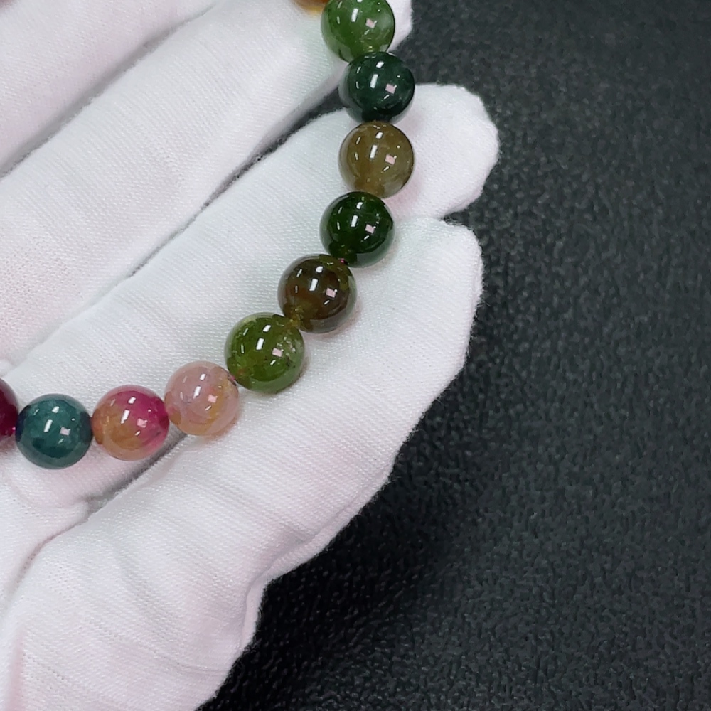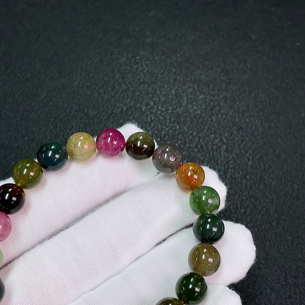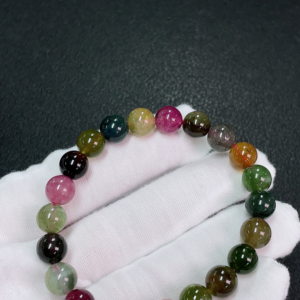 Tourmaline bracelet containing other mineral components, visible organic matter, total weight approximately 18.89g, size about 8.2mm