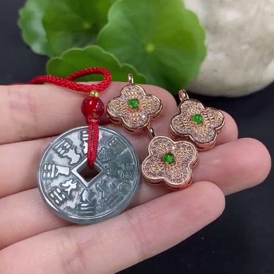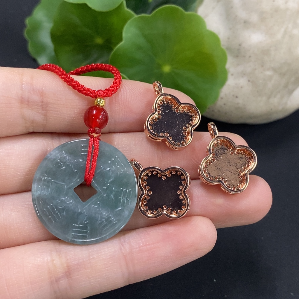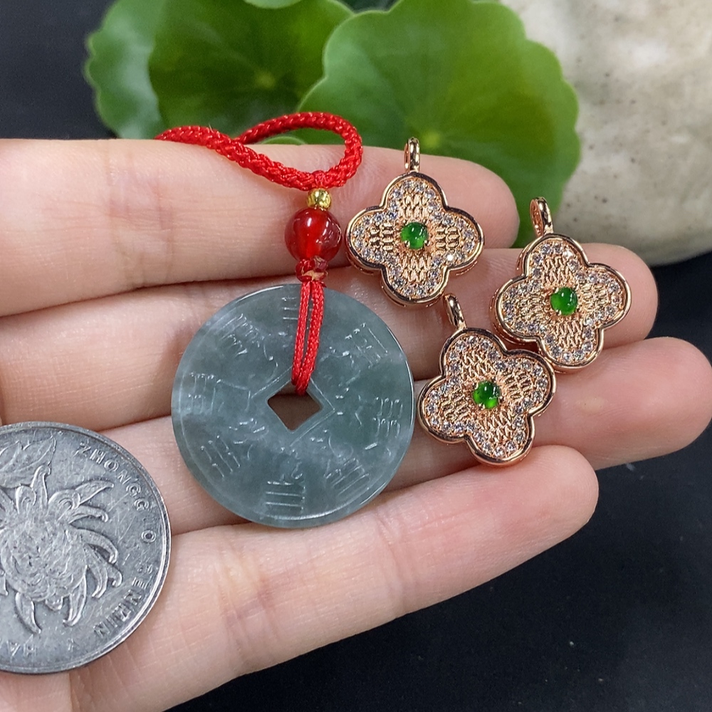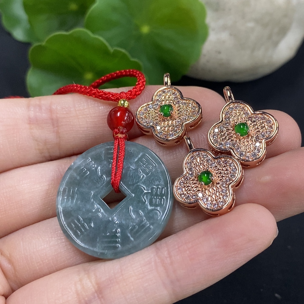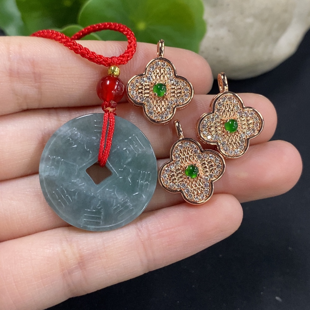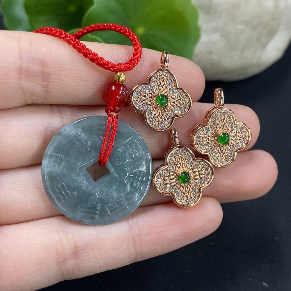 Jadeite Pendant Sell as a Lot Non-Gold Inlay (Matching Beads Non-A)