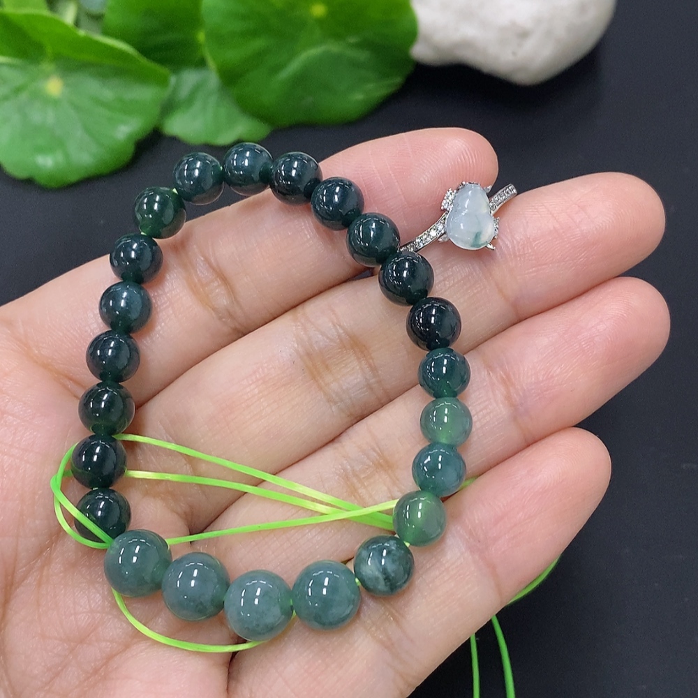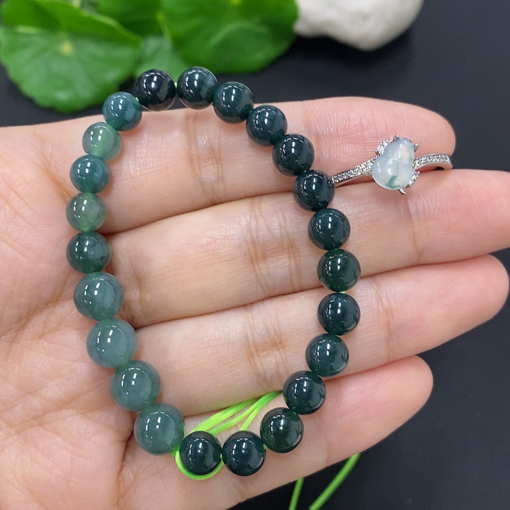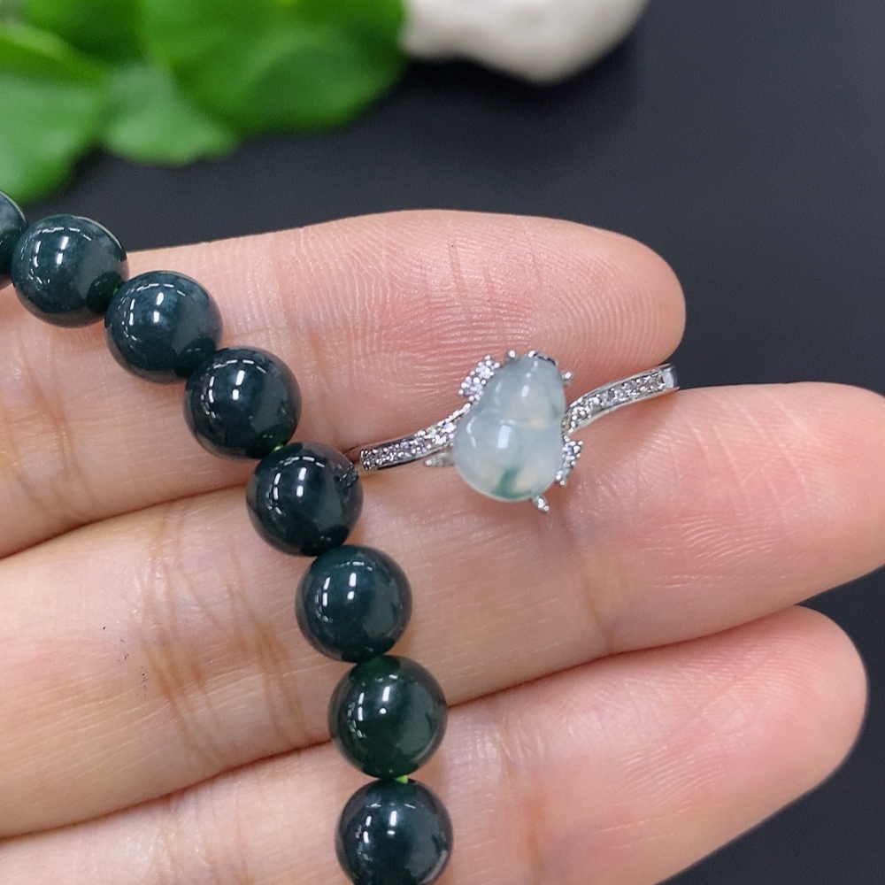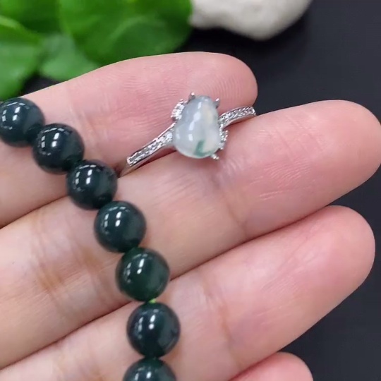 Jadeite Inlaid Ring with Bead Chain Sell as a Lot Adjustable Size Non-Gold Inlaid