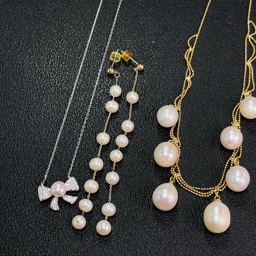 Pearl Earrings + Necklace Non-Gold Total Weight Approx. 34.4g Sell as a Lot
