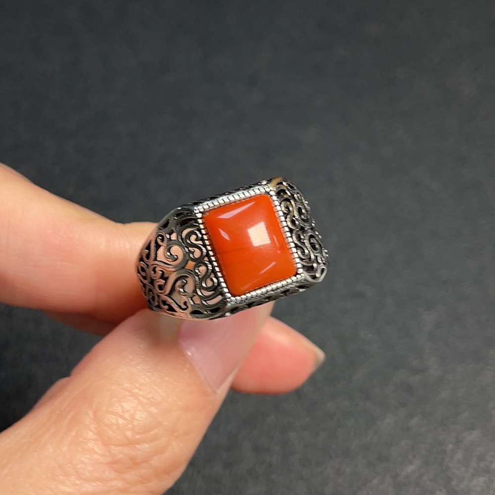 South Red Agate Ring, Adjustable, Total Weight Approx. 4.01g