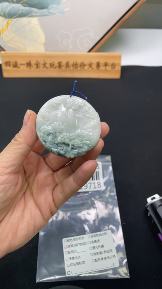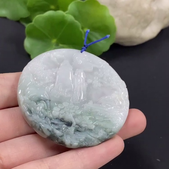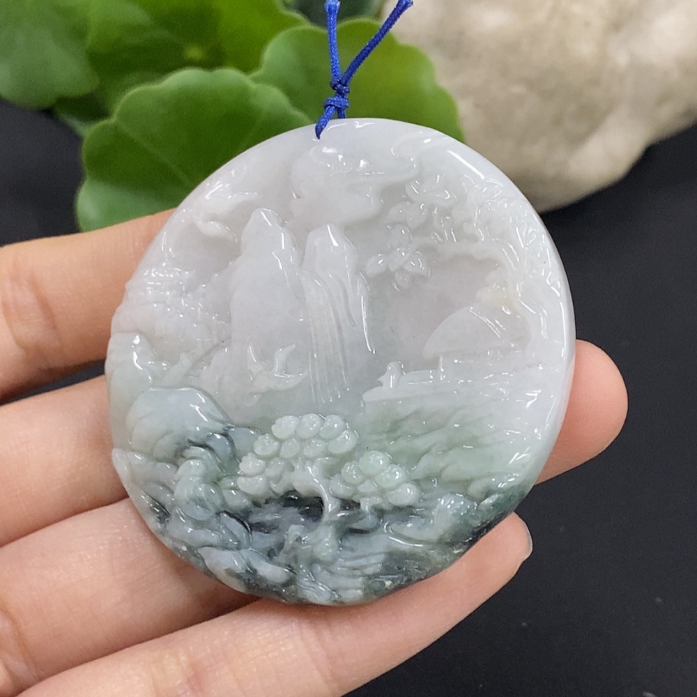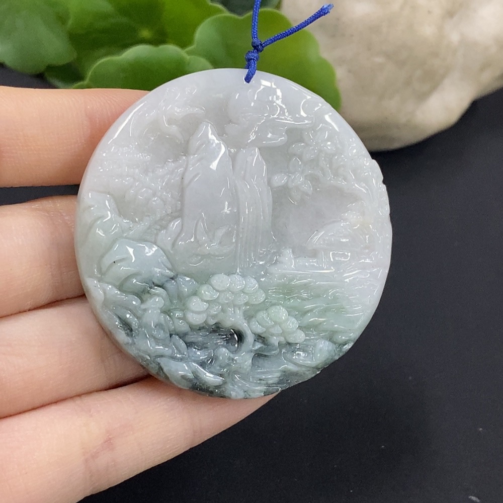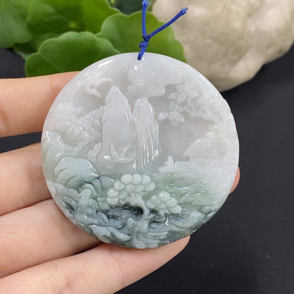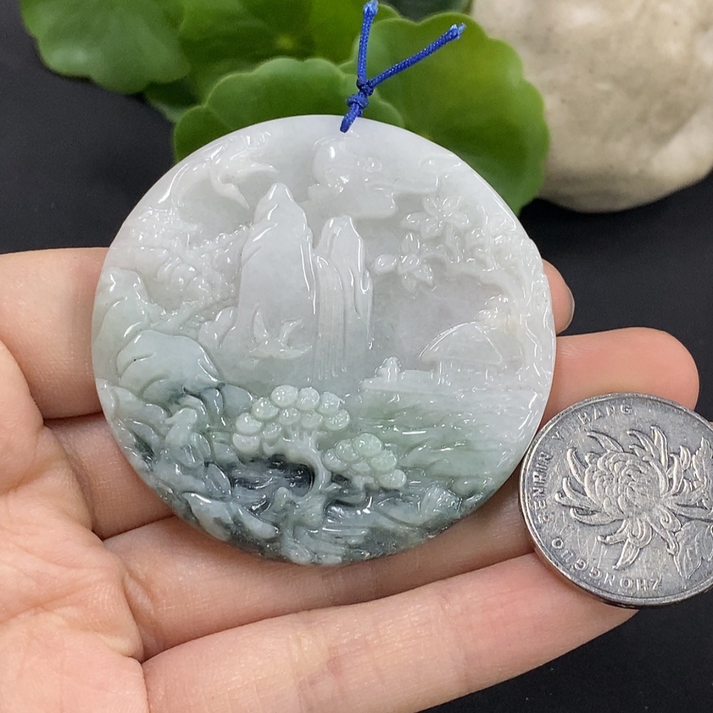 Jadeite Landscape Pendant with Other Mineral Components, Total Weight Approximately 30g