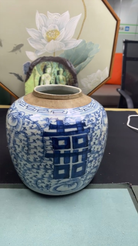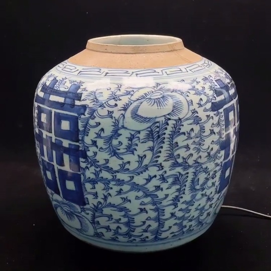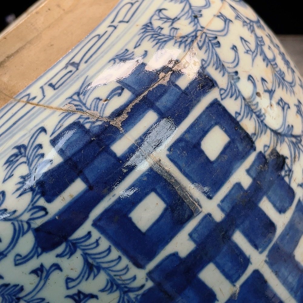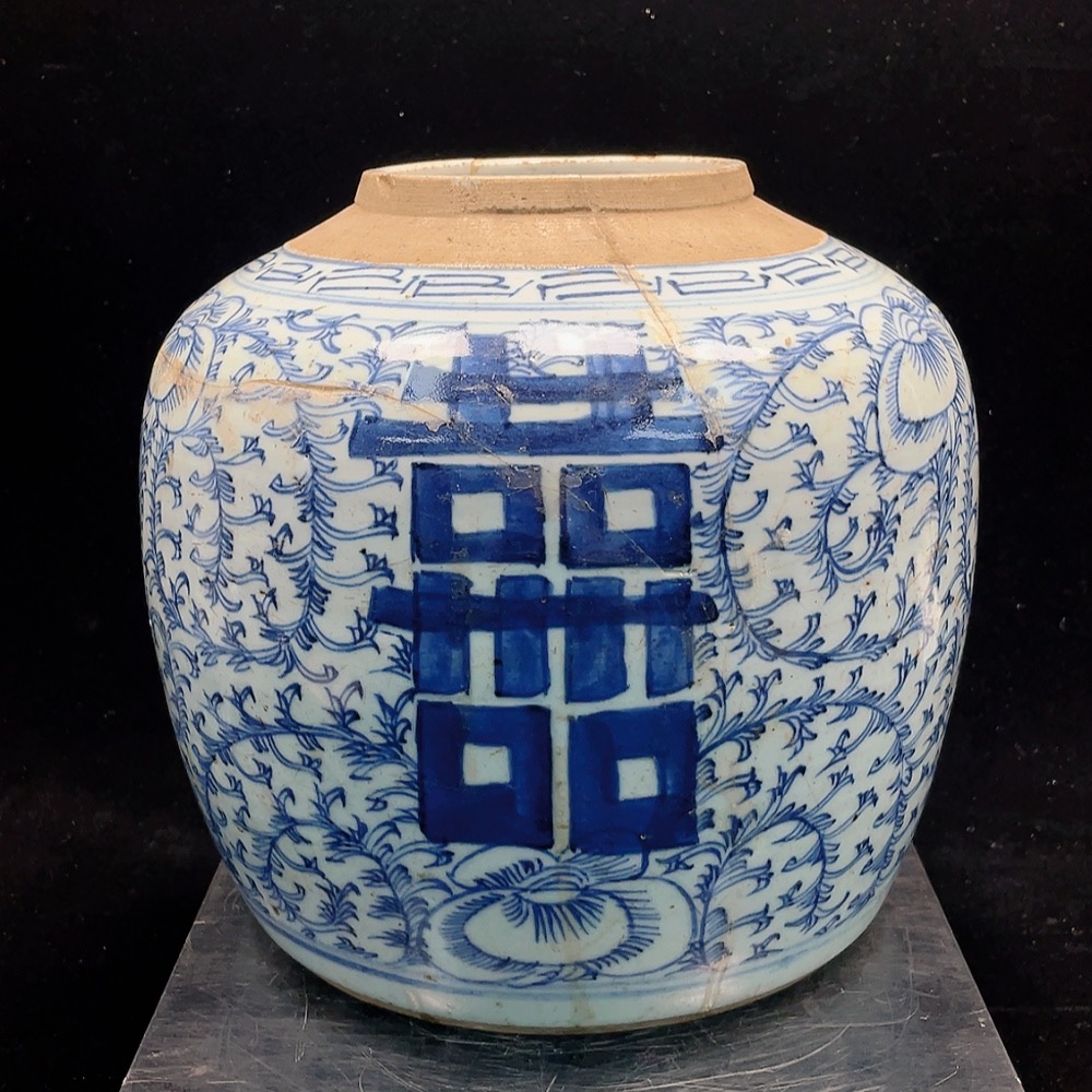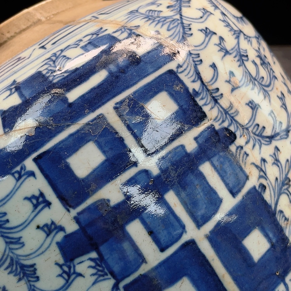 Ceramic, Restored, Republic of China Blue-and-White 'Double Happiness' Jar