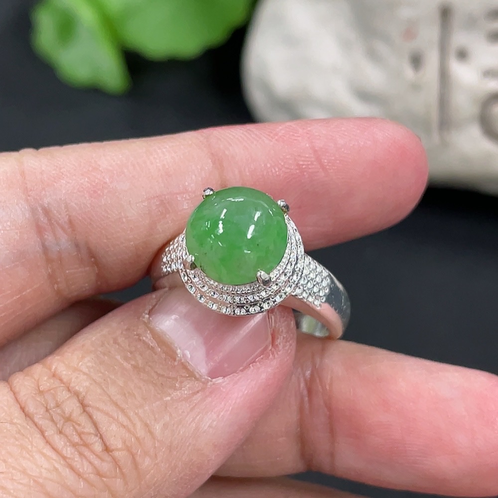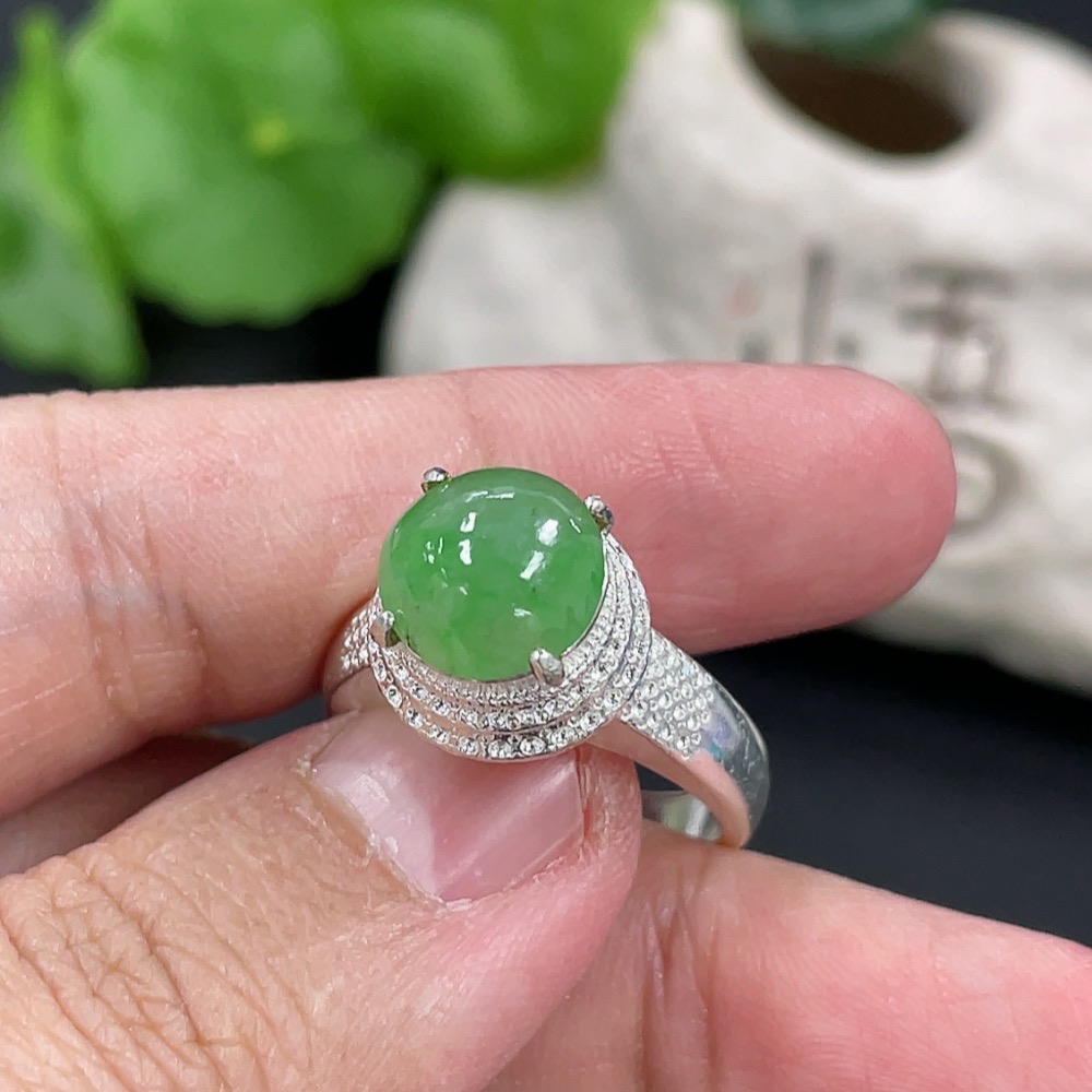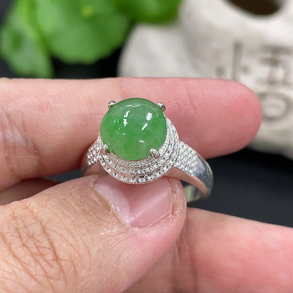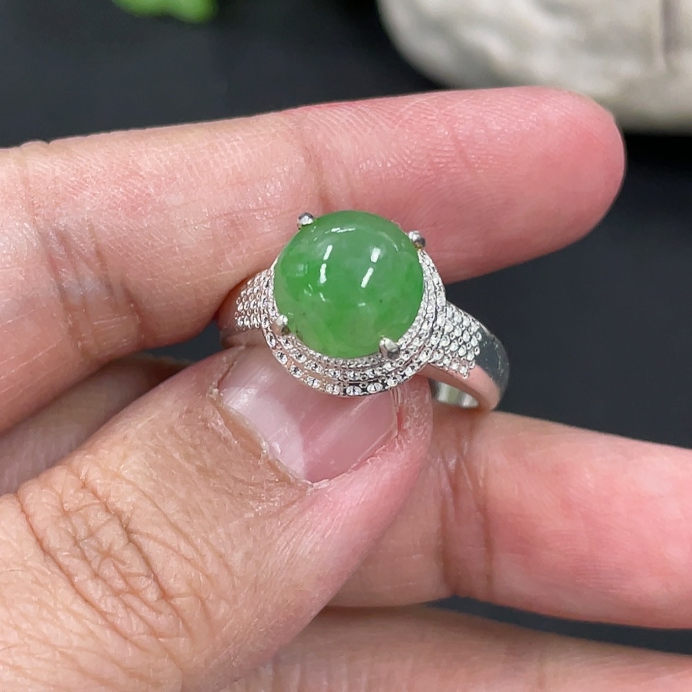 Jadeite inlaid cabochon with copper setting, total weight approximately 5.38g