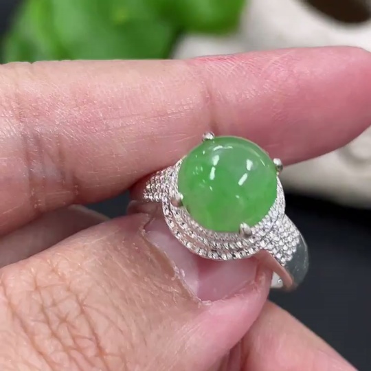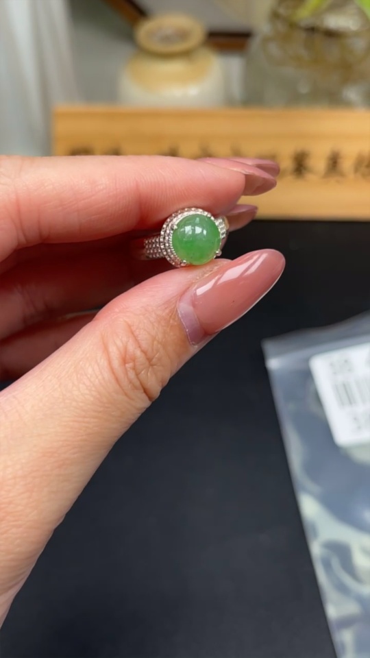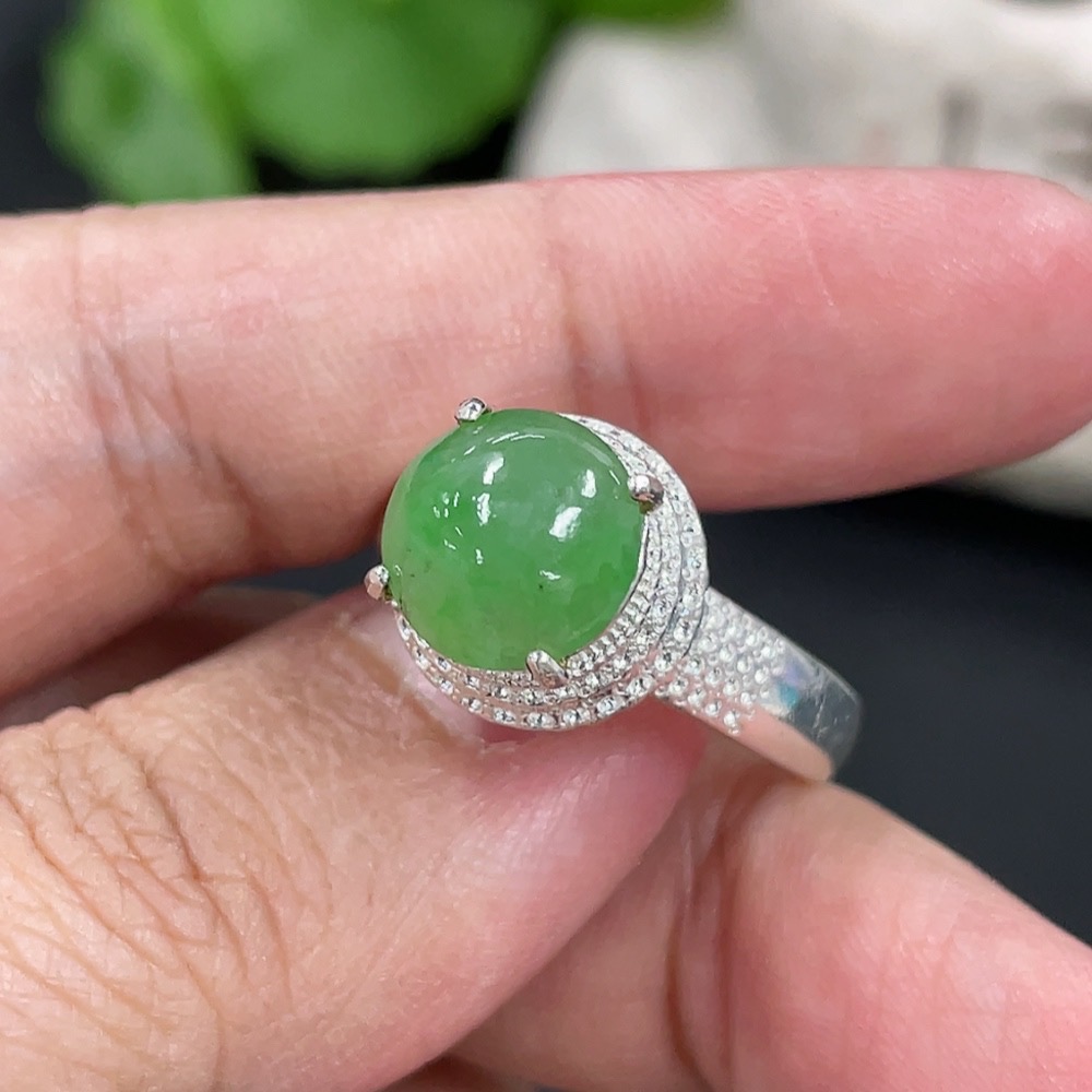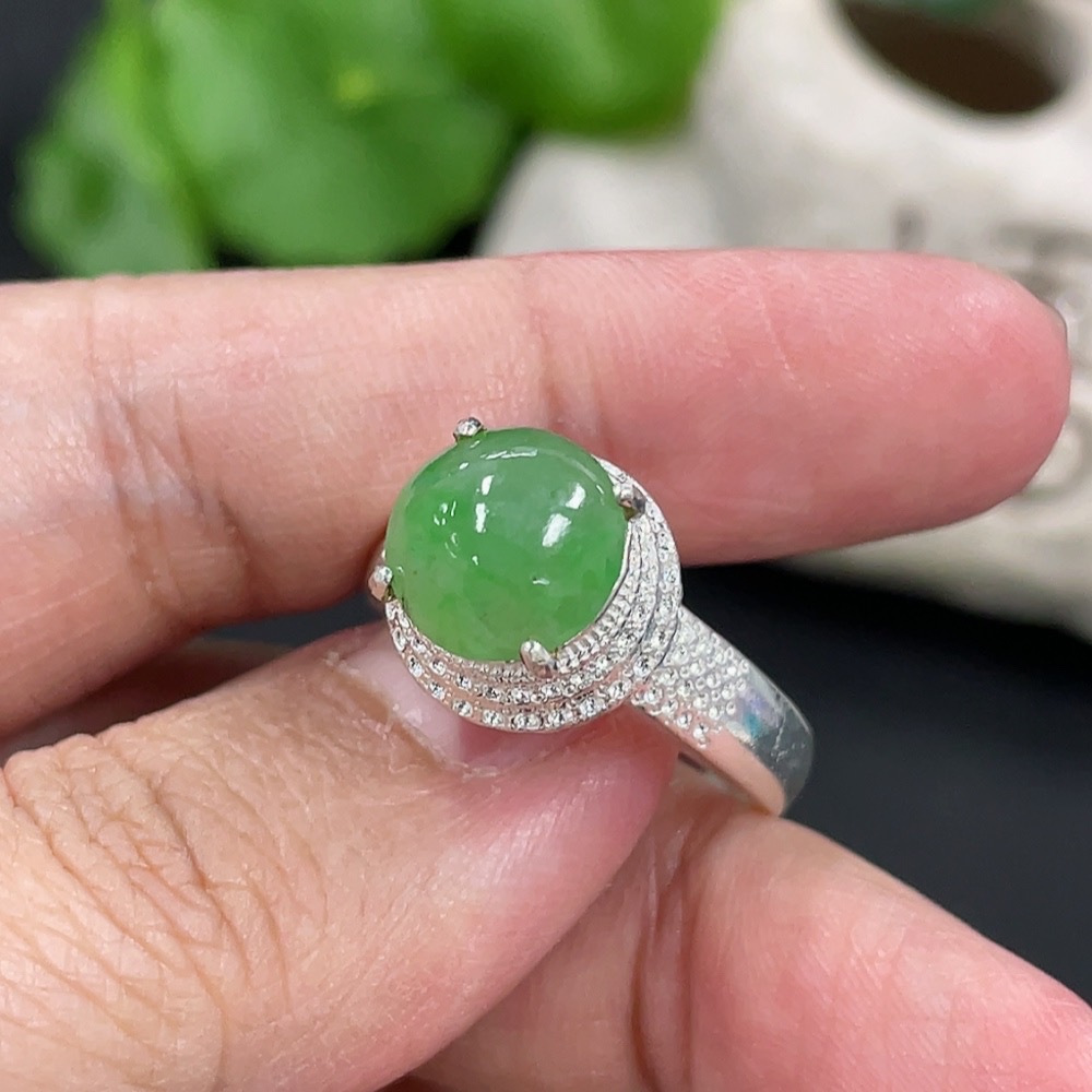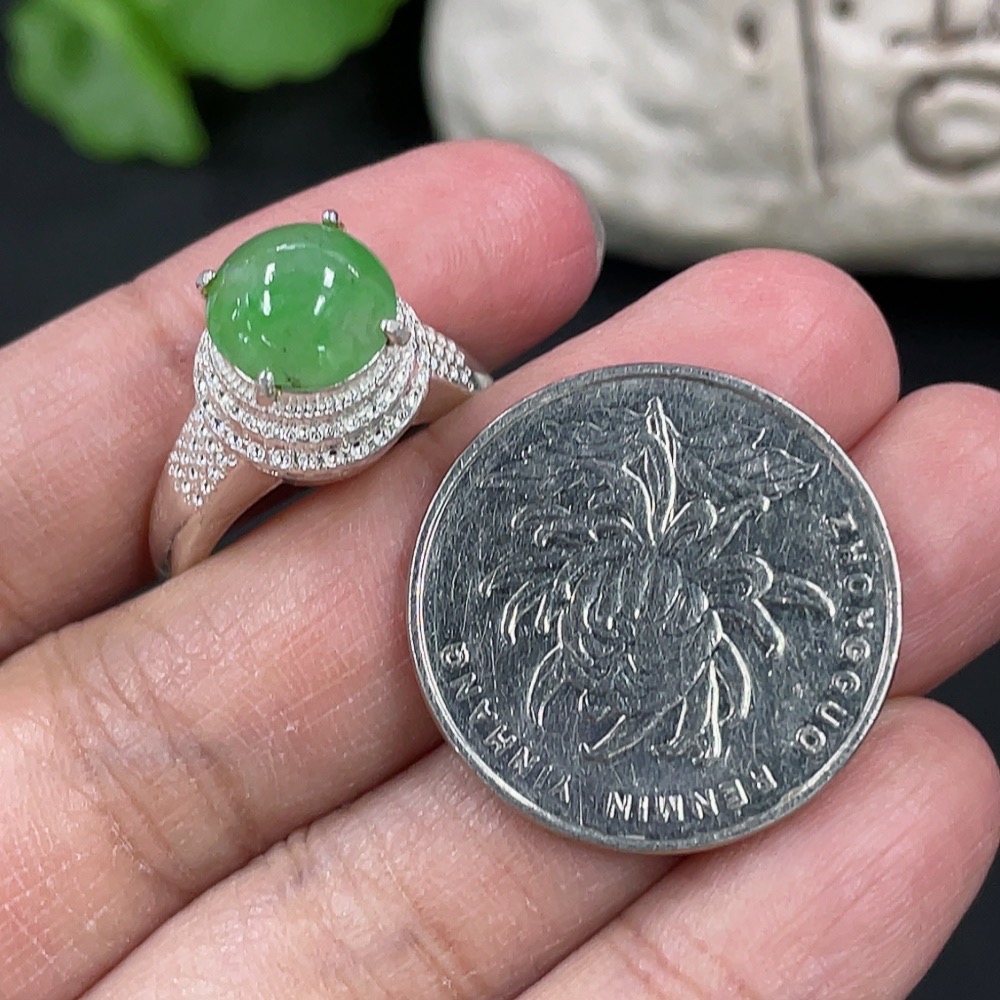 Jadeite inlaid cabochon with copper setting, total weight approximately 5.38g