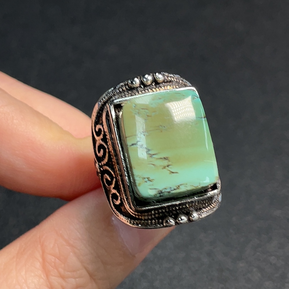 Turquoise Ring with Other Mineral Components, Adjustable Opening, Non-Gold, Total Weight Approximately 11.68g