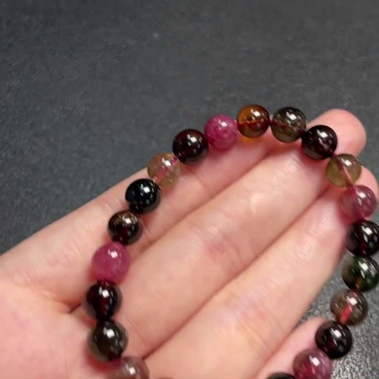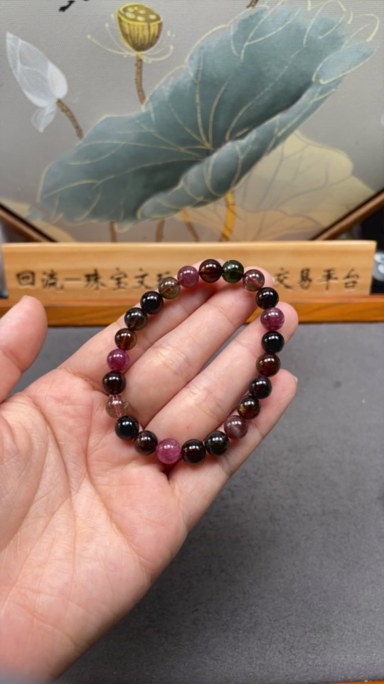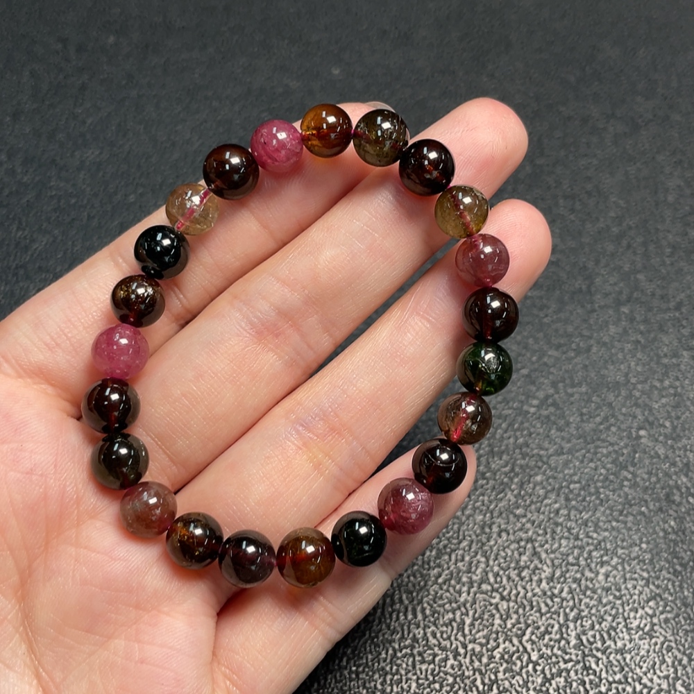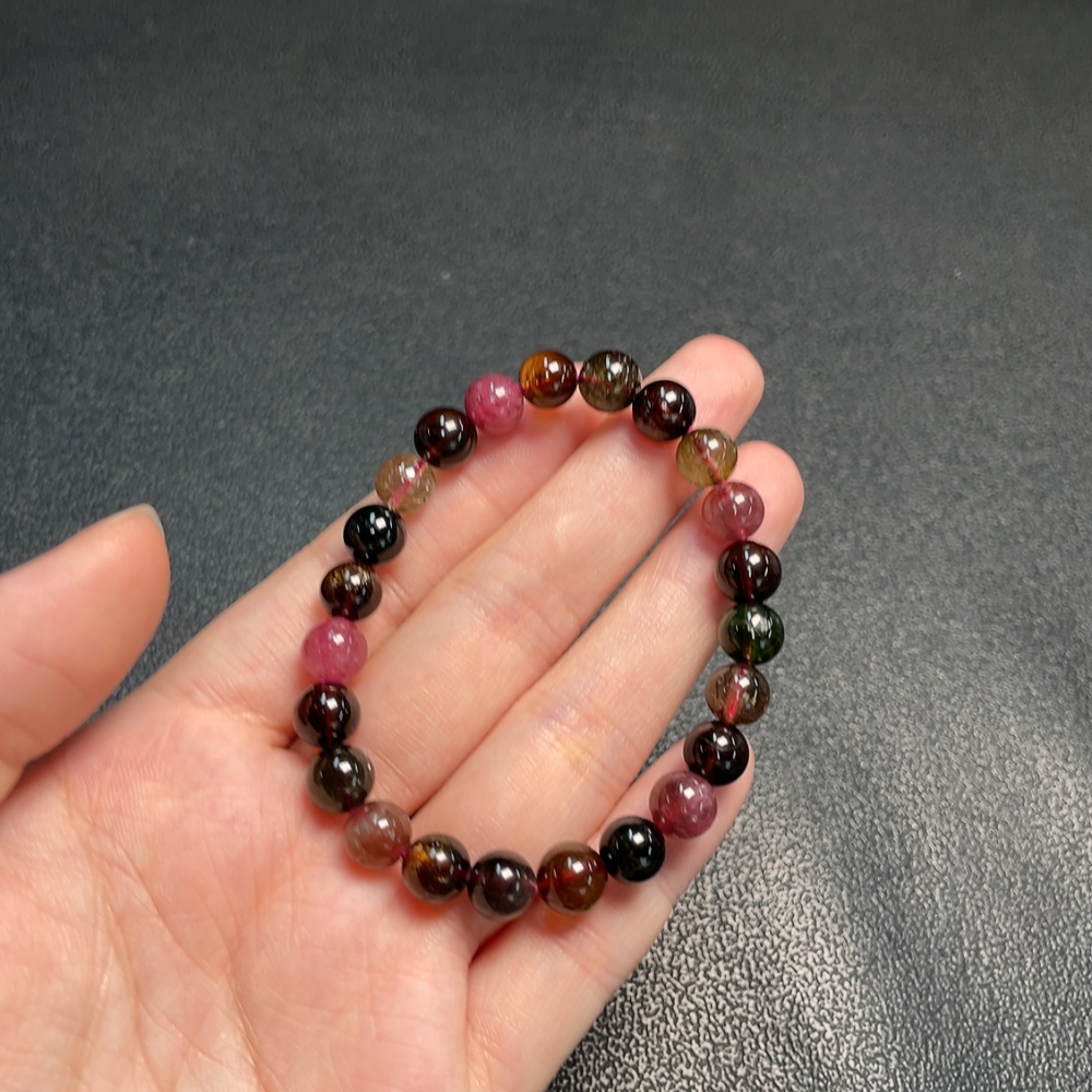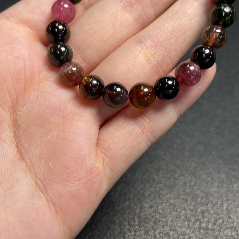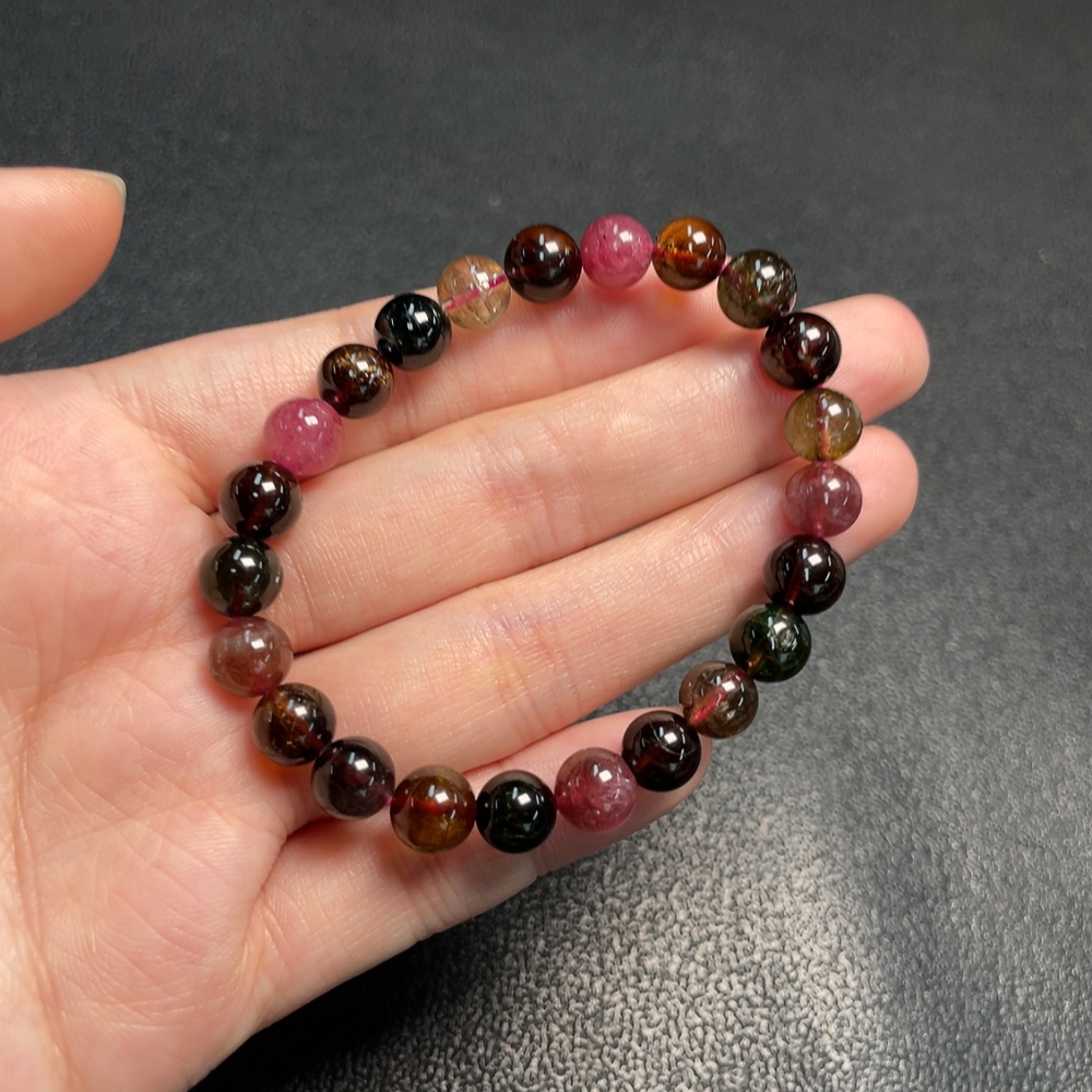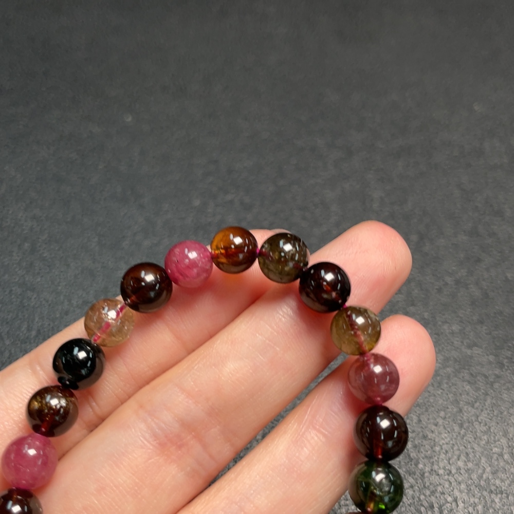 Tourmaline Bracelet with Visible Organic Matter, Total Weight Approx. 16g, Size About 7.7mm