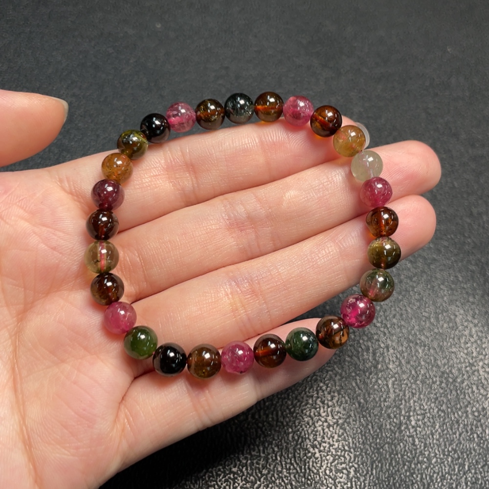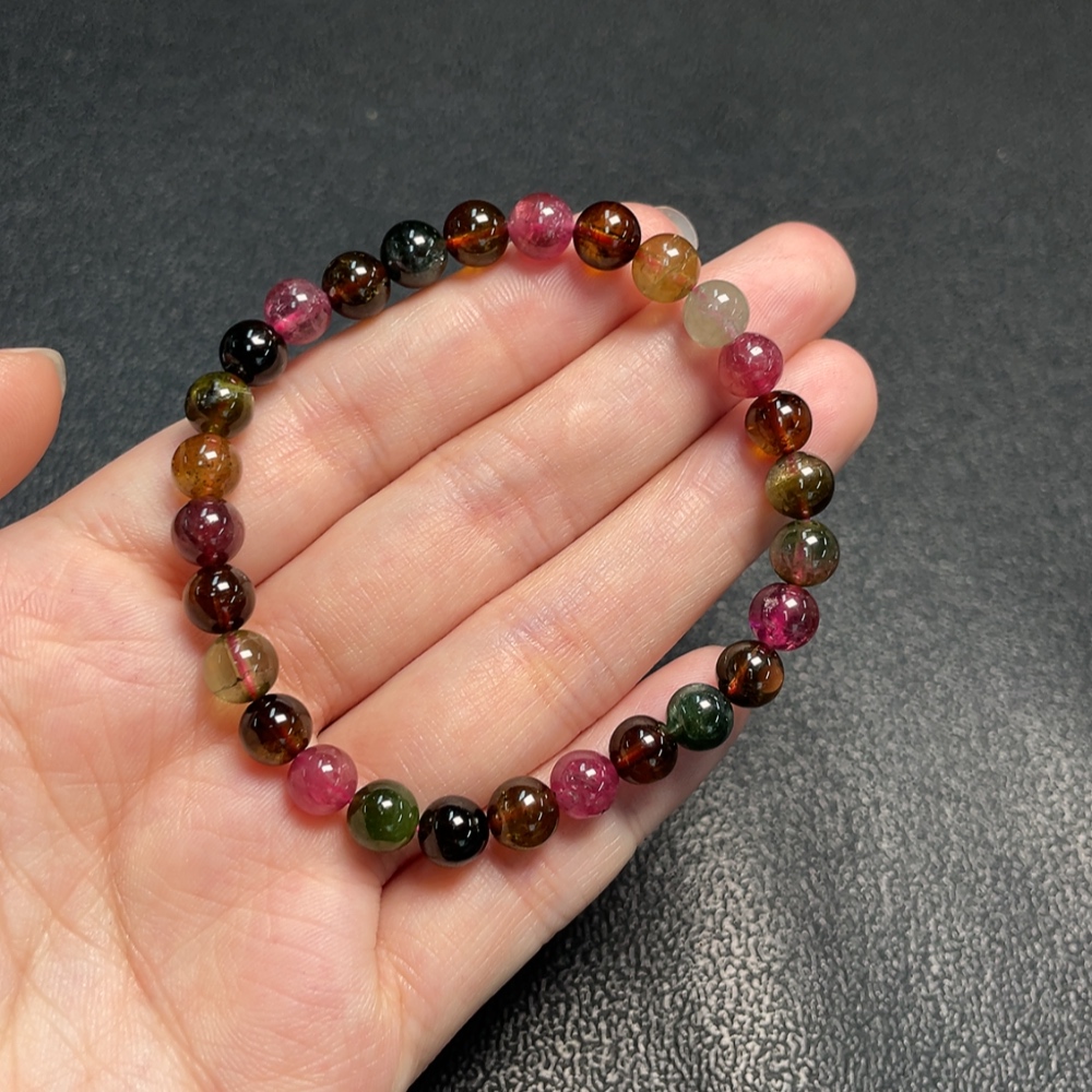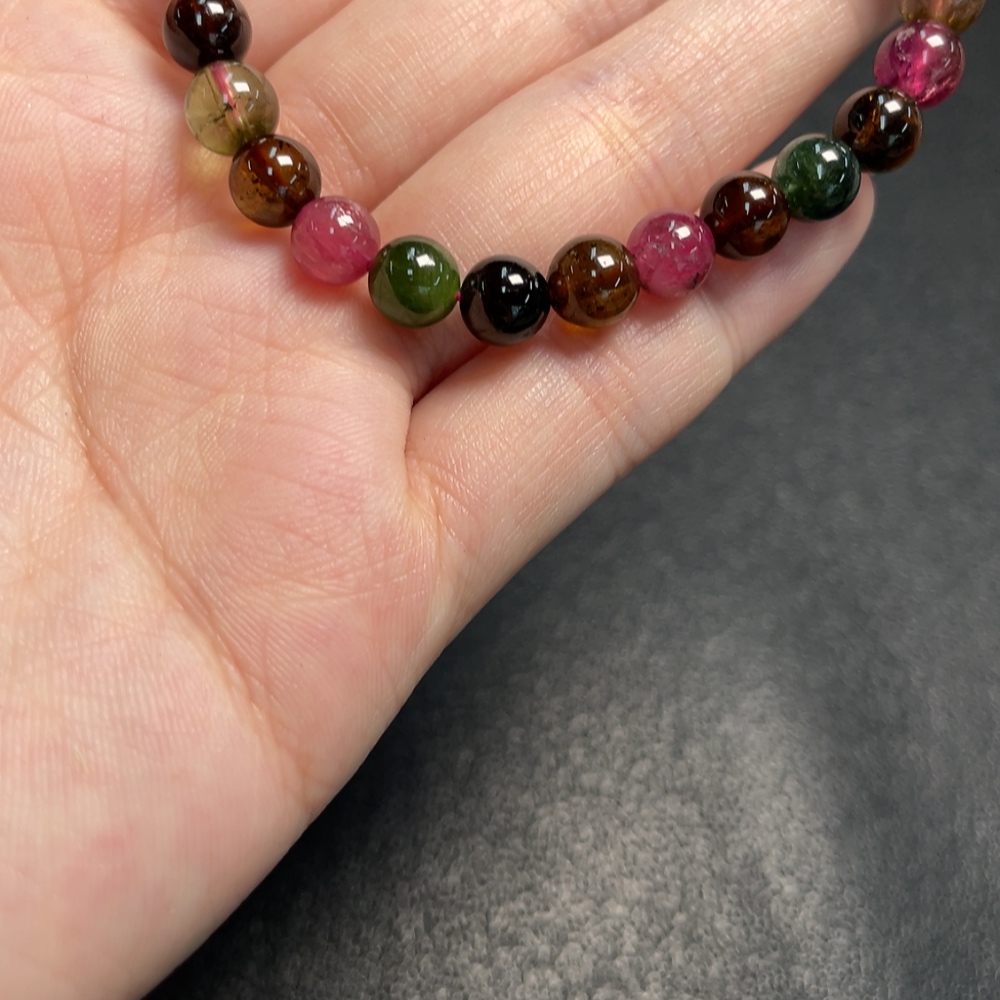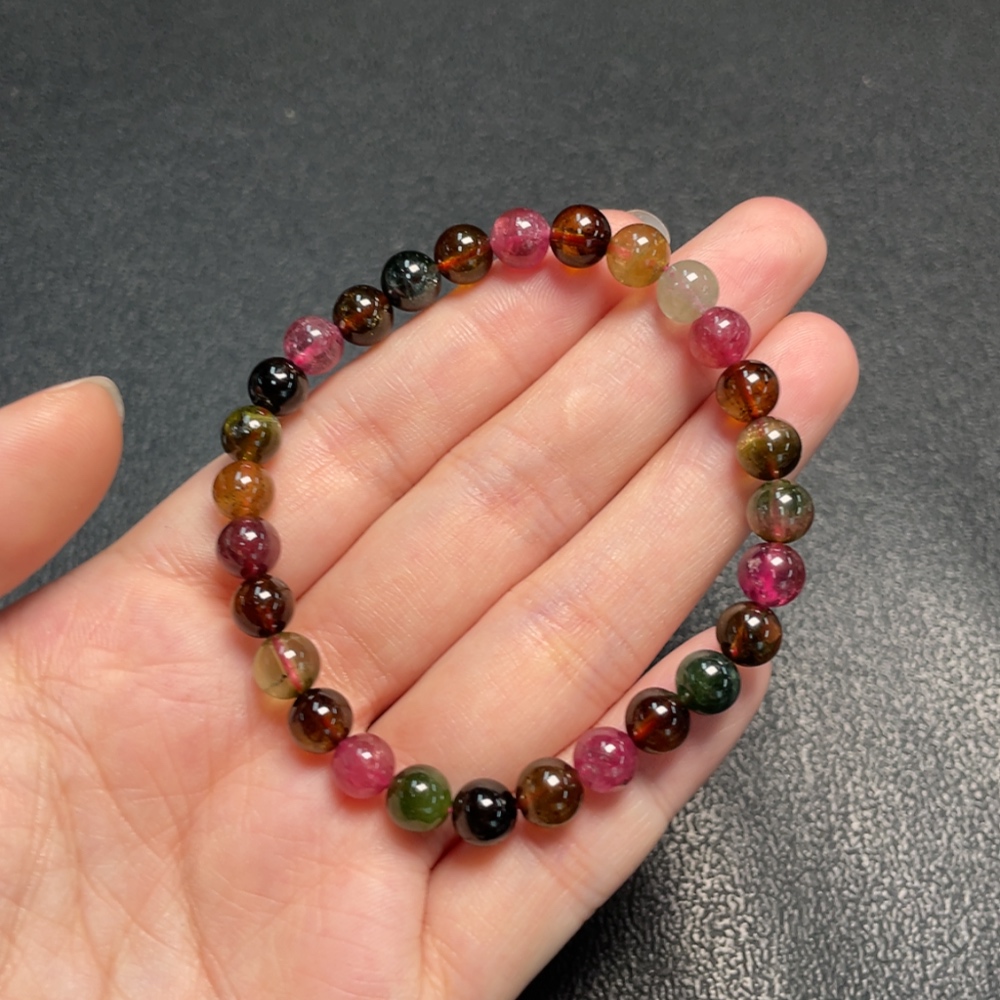 Tourmaline Bracelet with Visible Organic Matter, Total Weight Approx. 13.17g, Size About 6.6mm