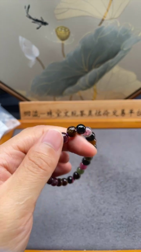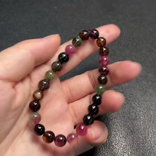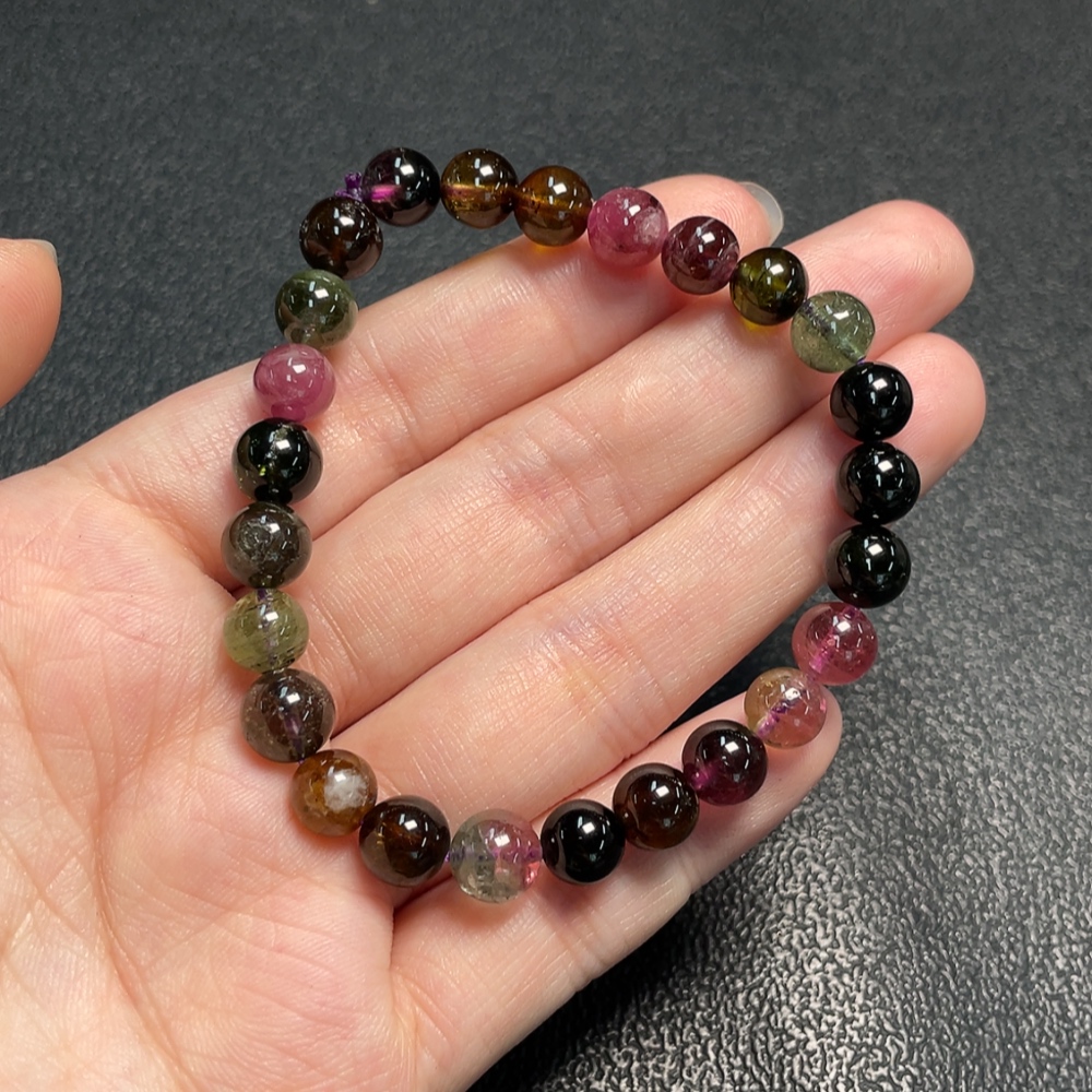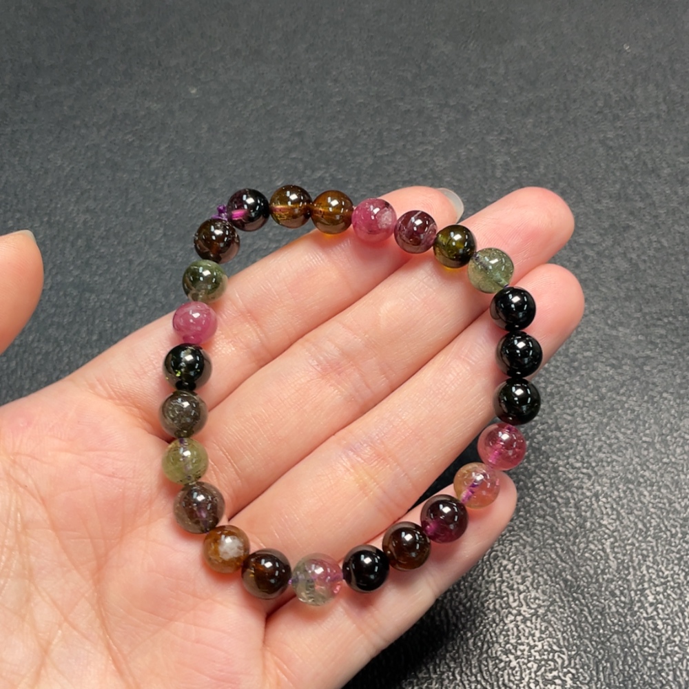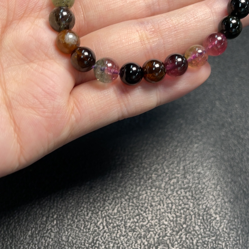 Tourmaline Bracelet with Visible Organic Matter, Total Weight Approx. 15.66g, Size ~6.9mm