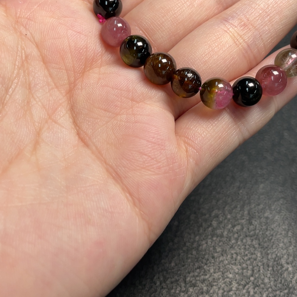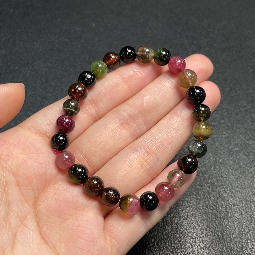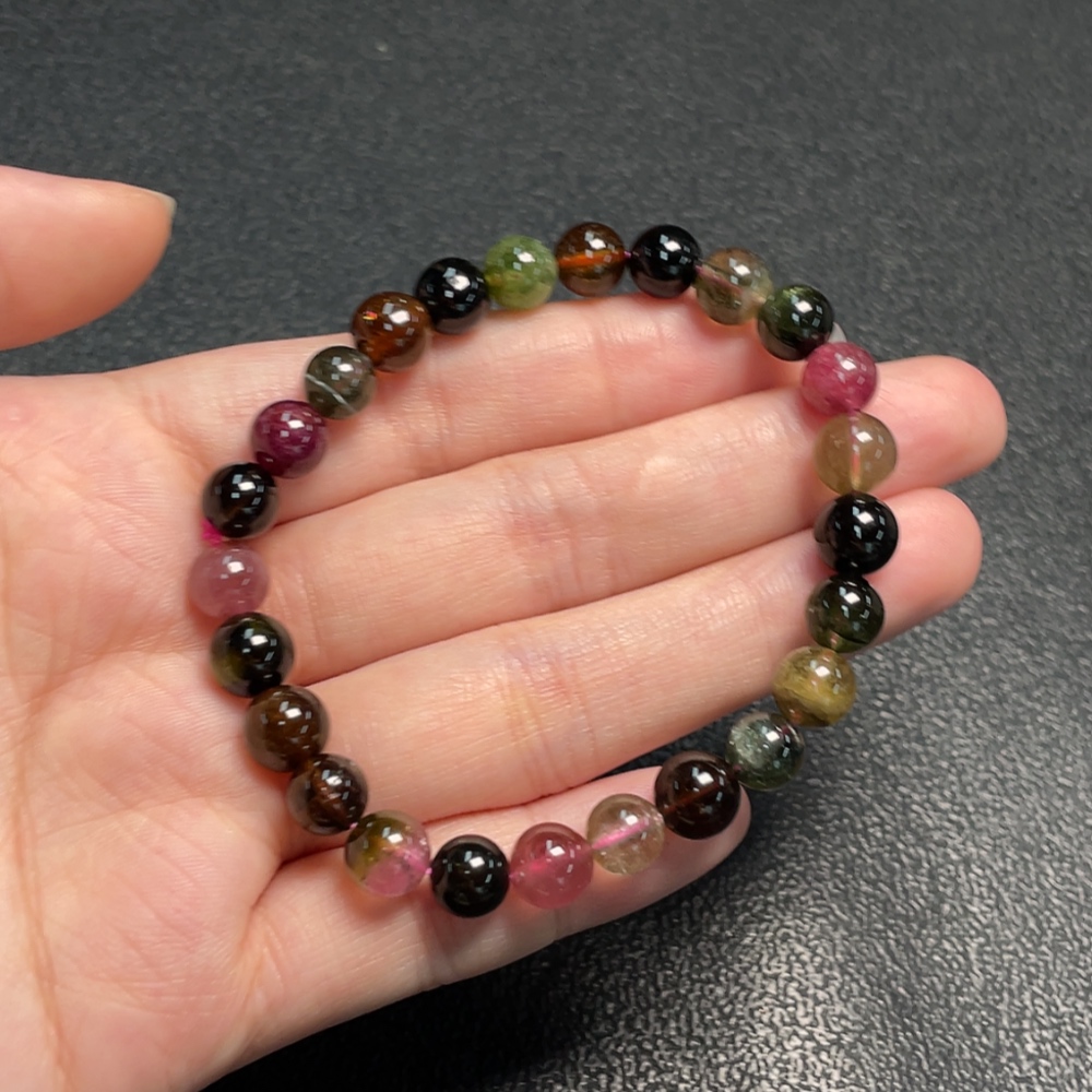 Tourmaline Bracelet with Visible Organic Matter, Total Weight Approx. 16.34g, Size About 7.4mm