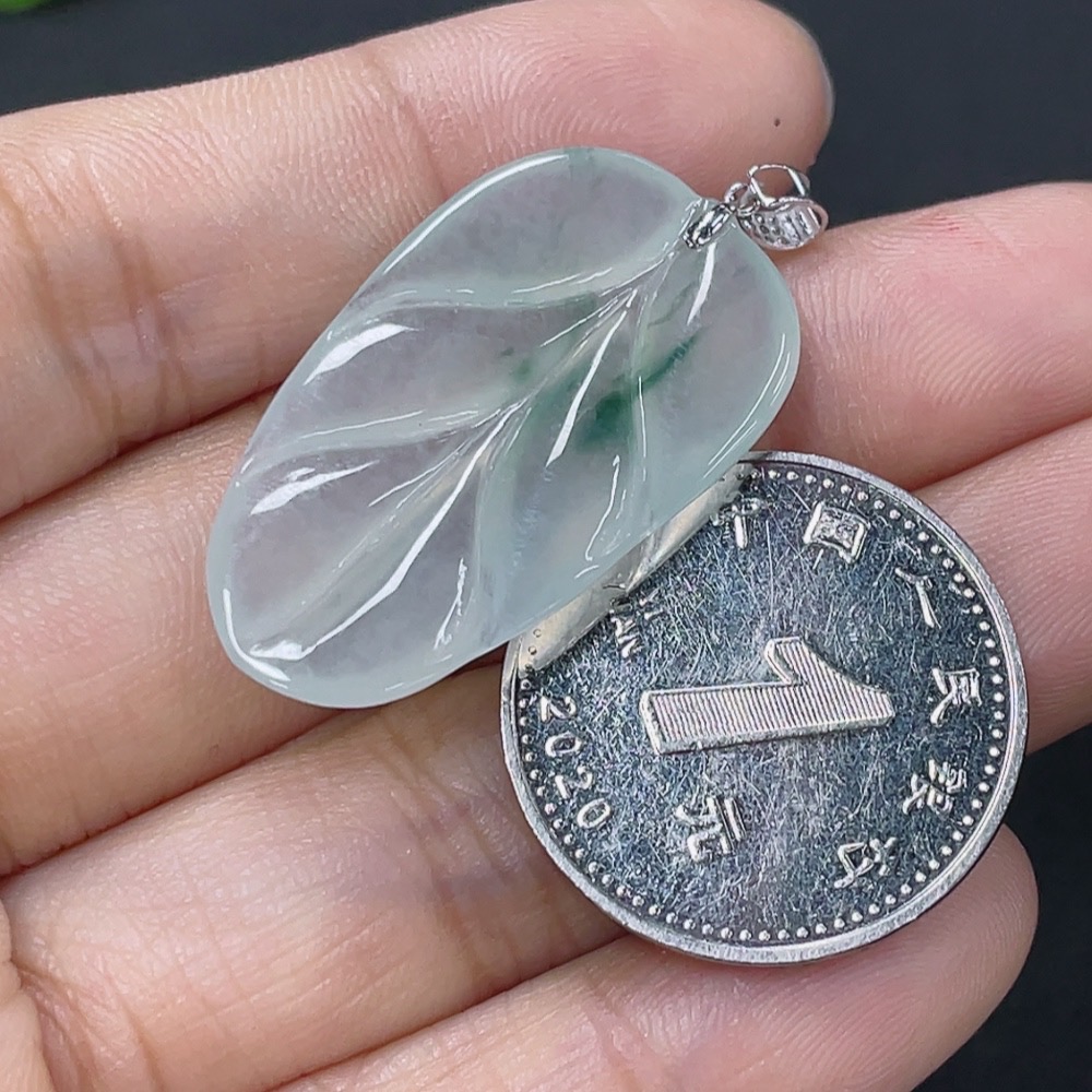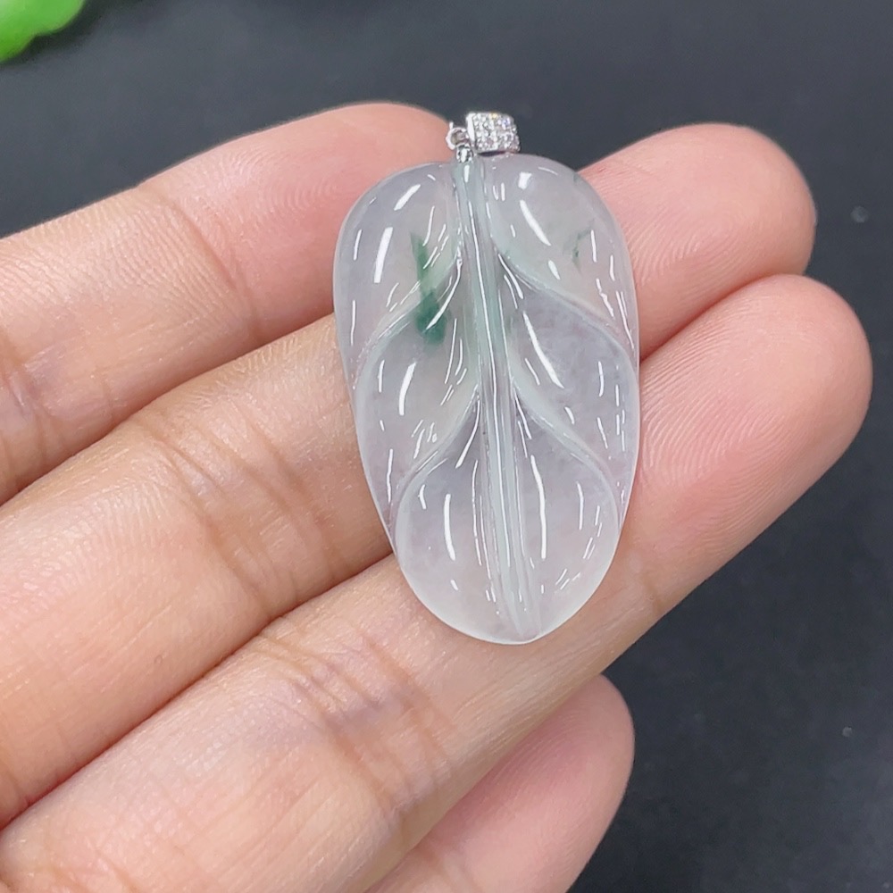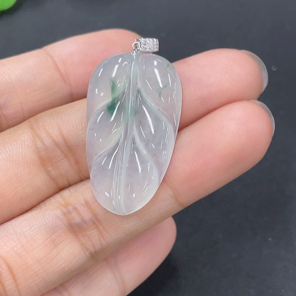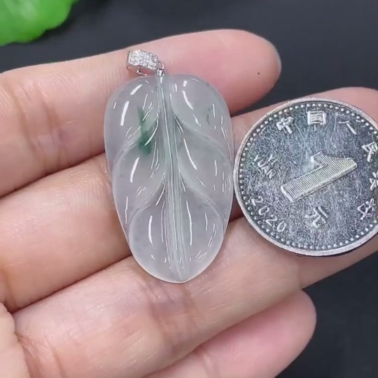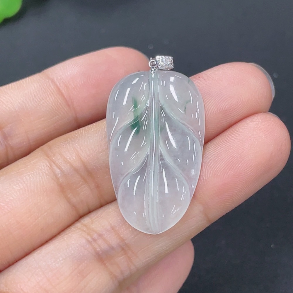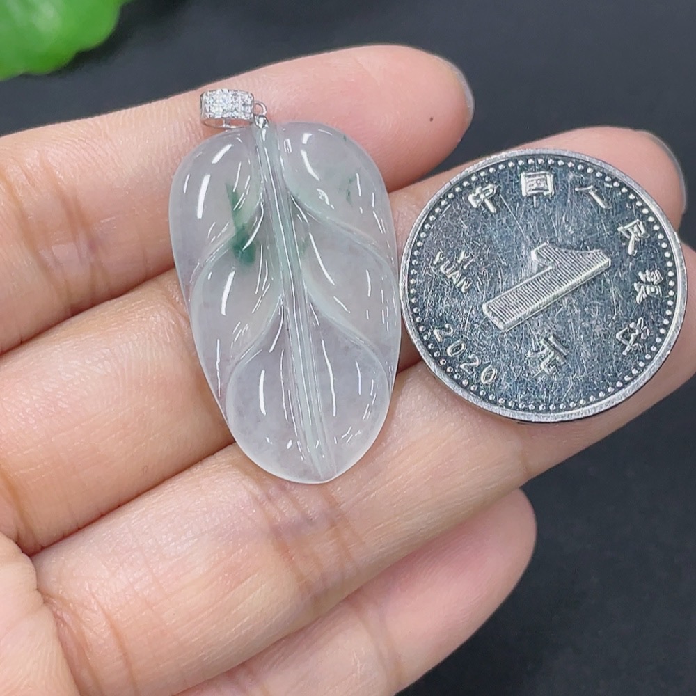 Jadeite Leaf Pendant with 18K Gold and Diamond Accents, Total Weight Approximately 3.55 Grams