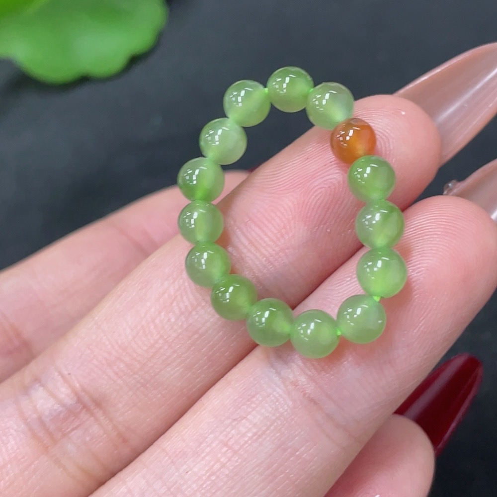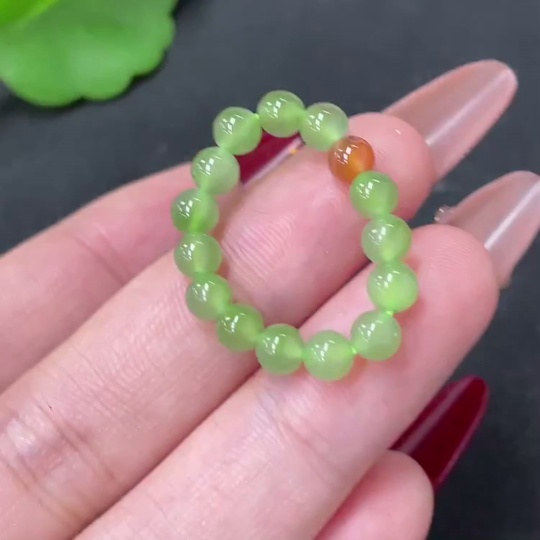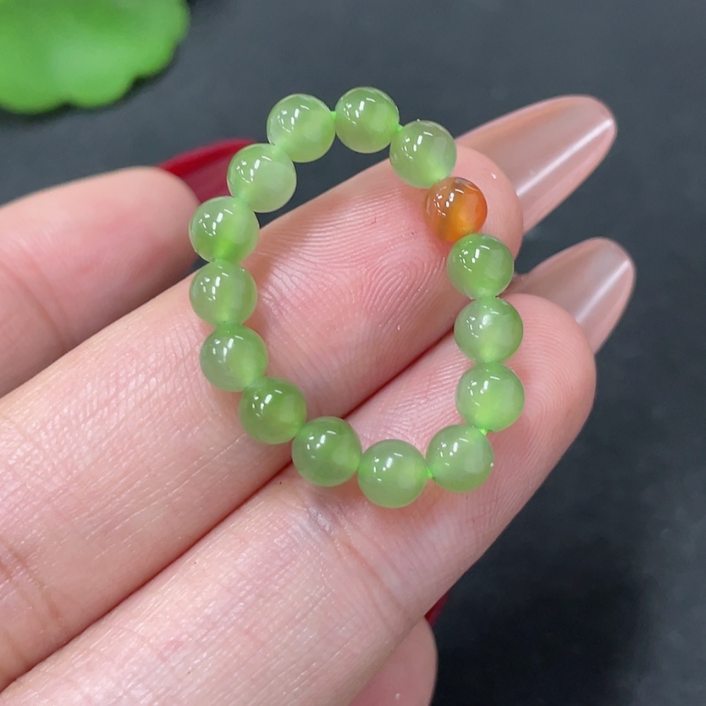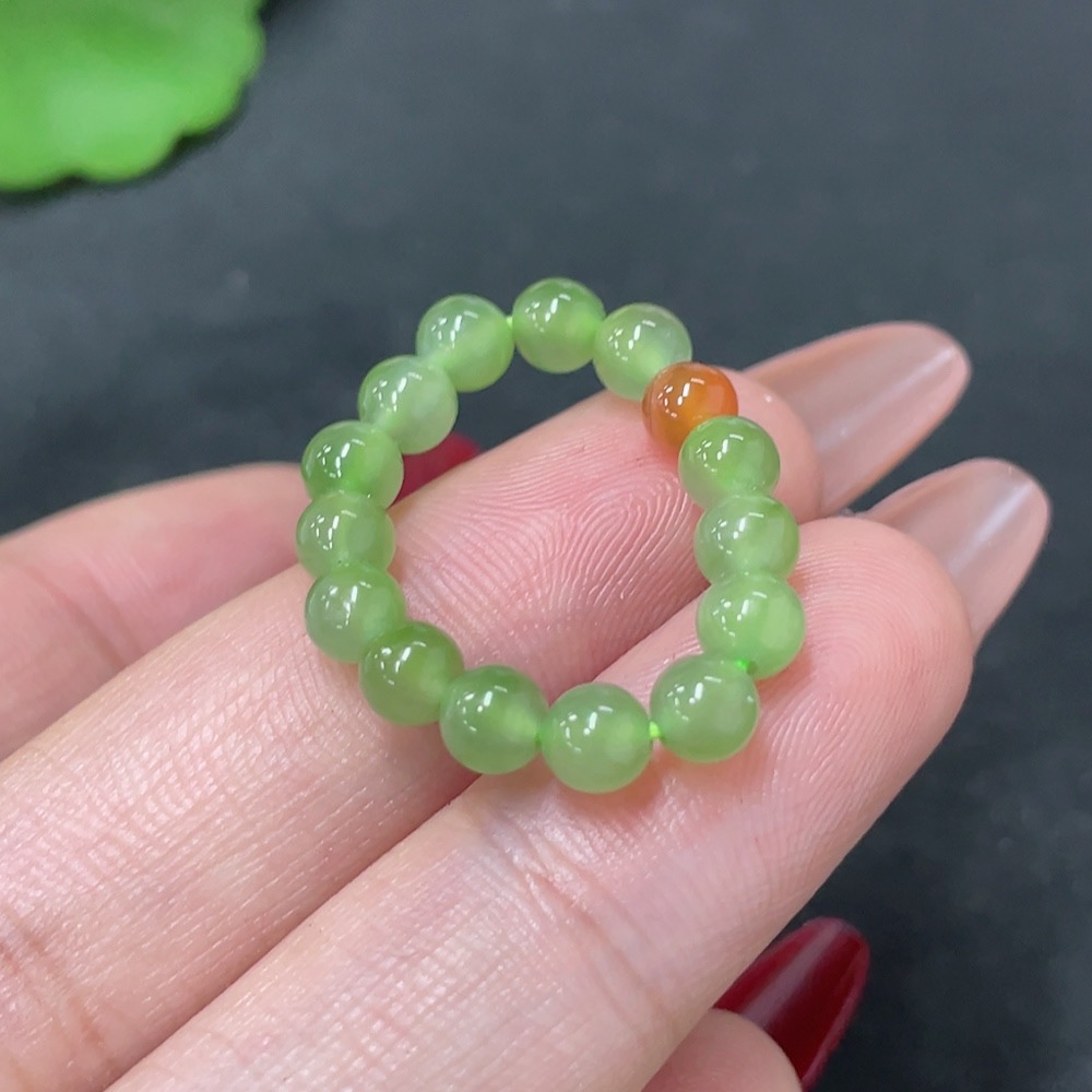 Hetian Jade Beaded Ring, Approx. 4.2mm, with Non-Hetian Jade Beads, Total Weight Approx. 2g
