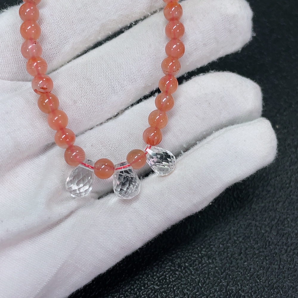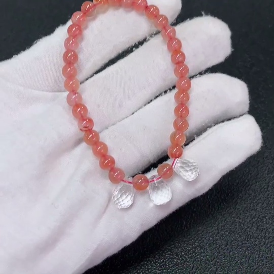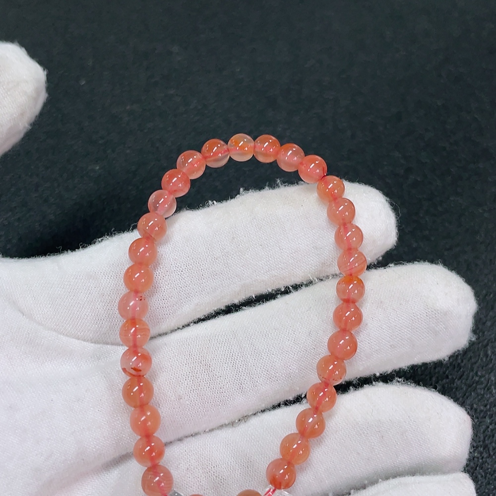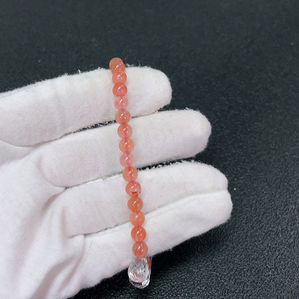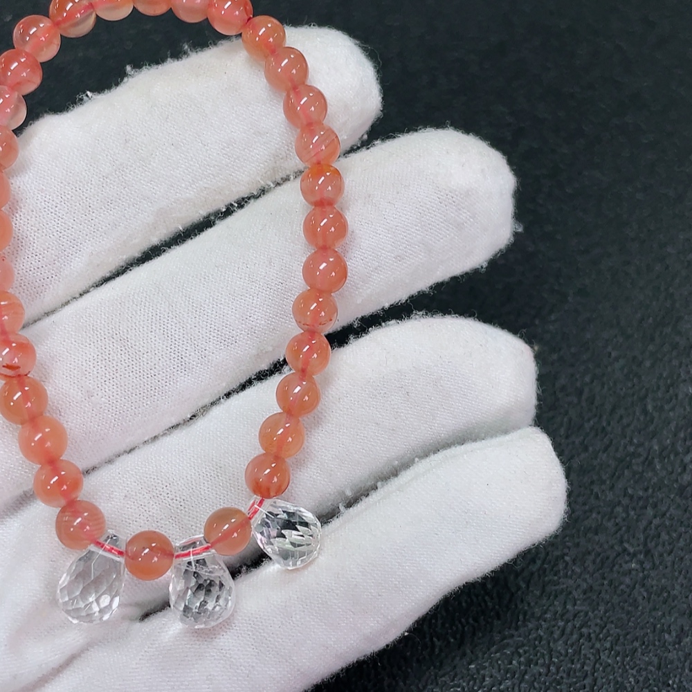Red Agate Bracelet with Crystal, Visible Organic Matter, Total Weight Approx. 8.31g, Size About 5.3mm