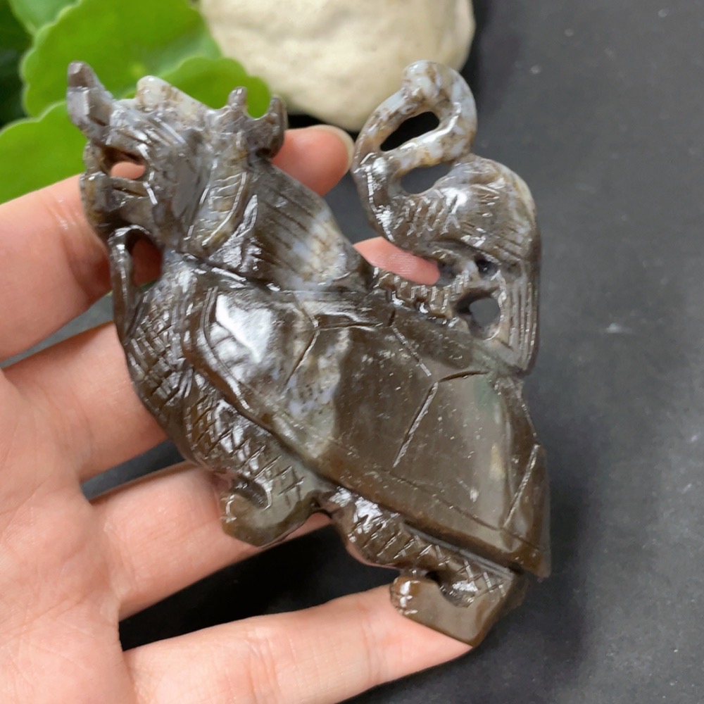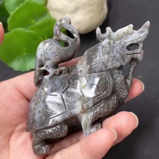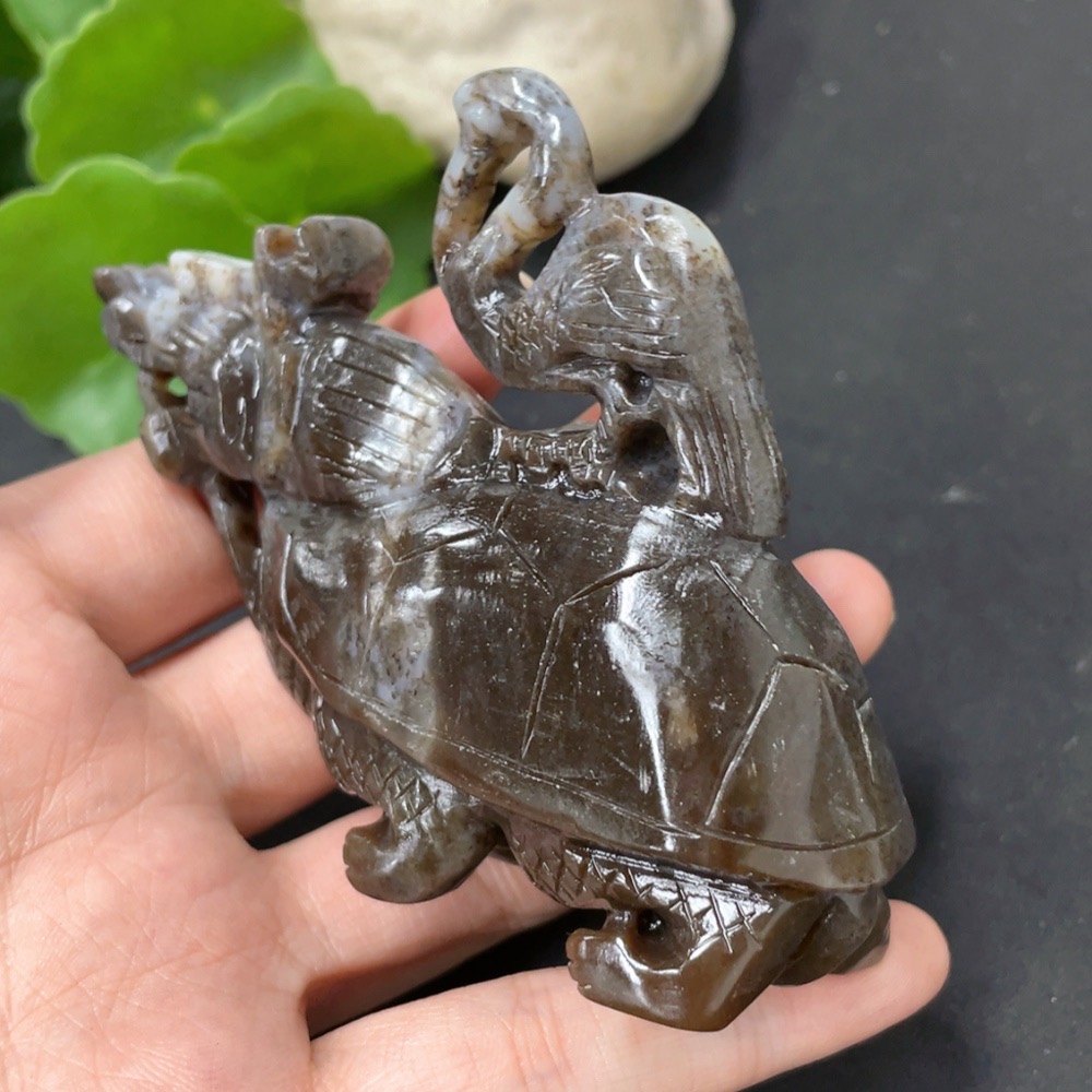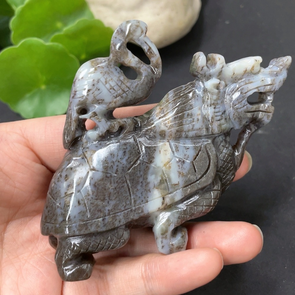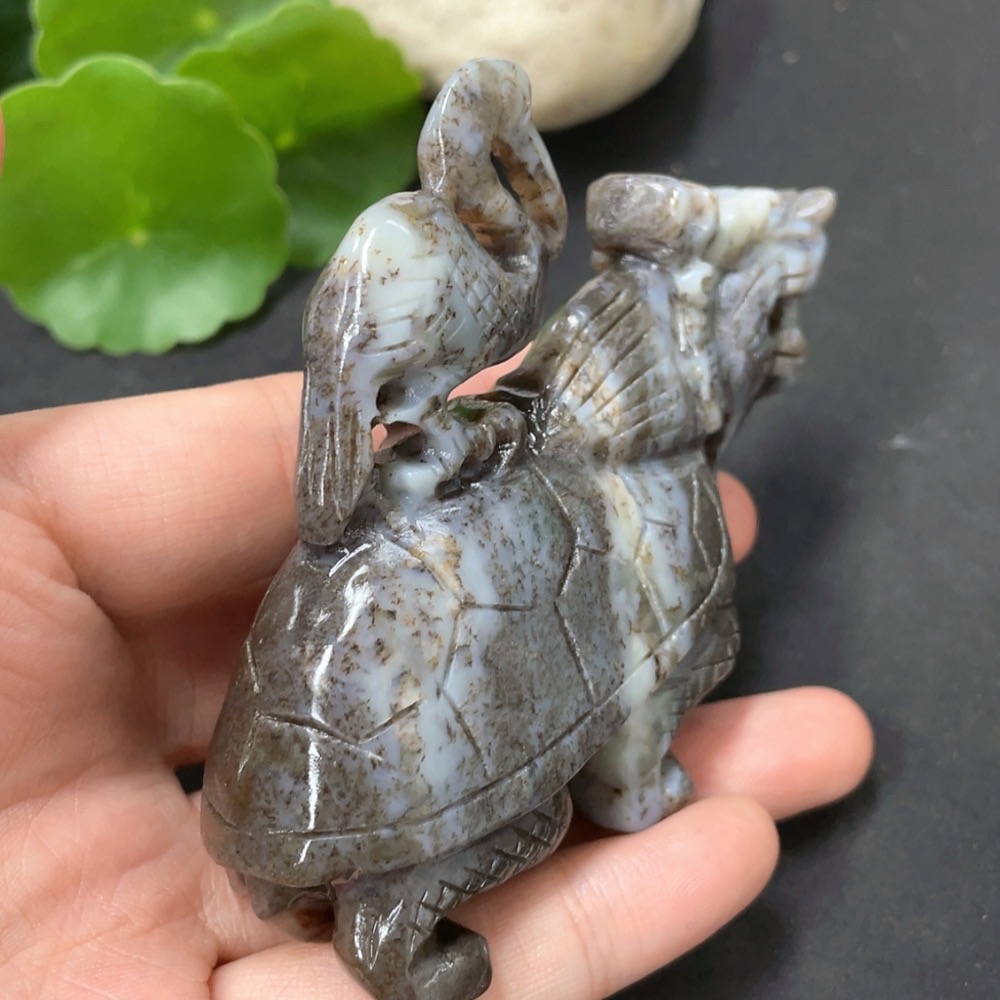 Hetian Jade Ornament "Tortoise and Crane Symbolizing Longevity" Total Weight Approx. 140.6g