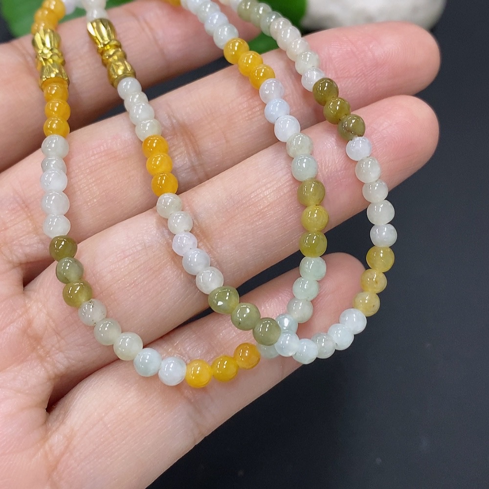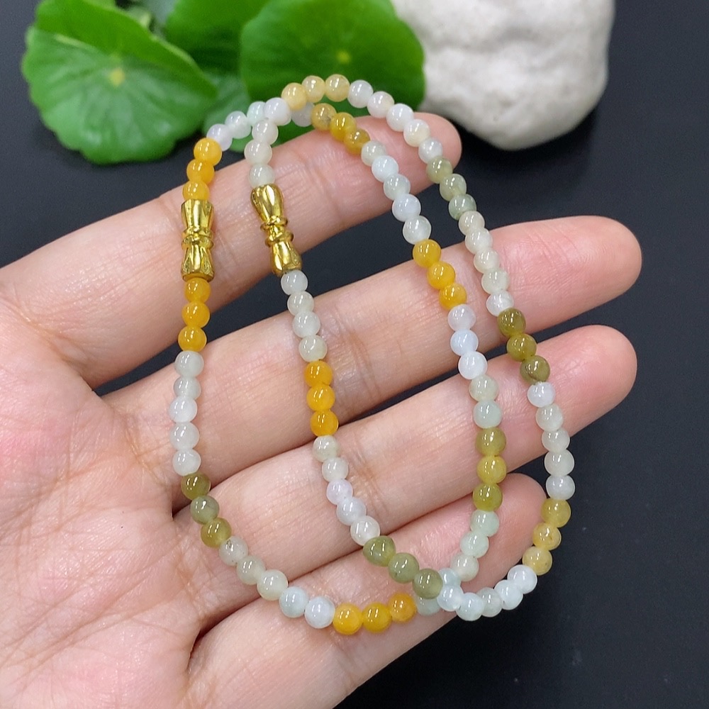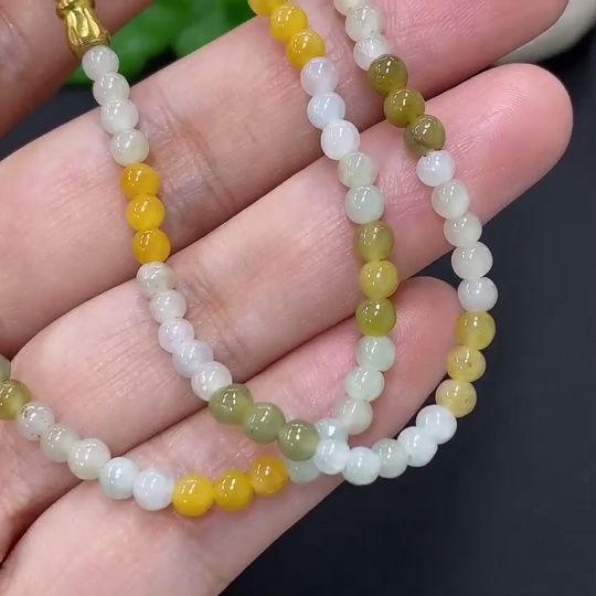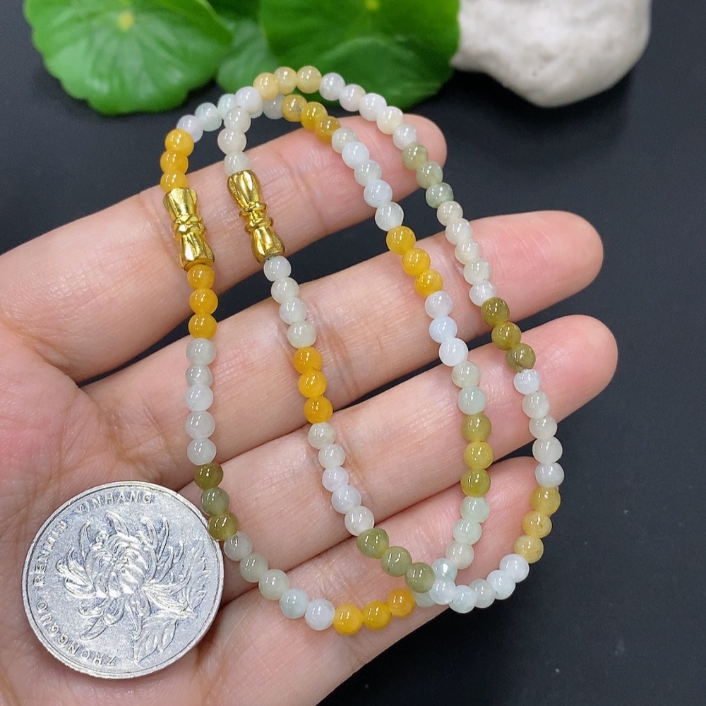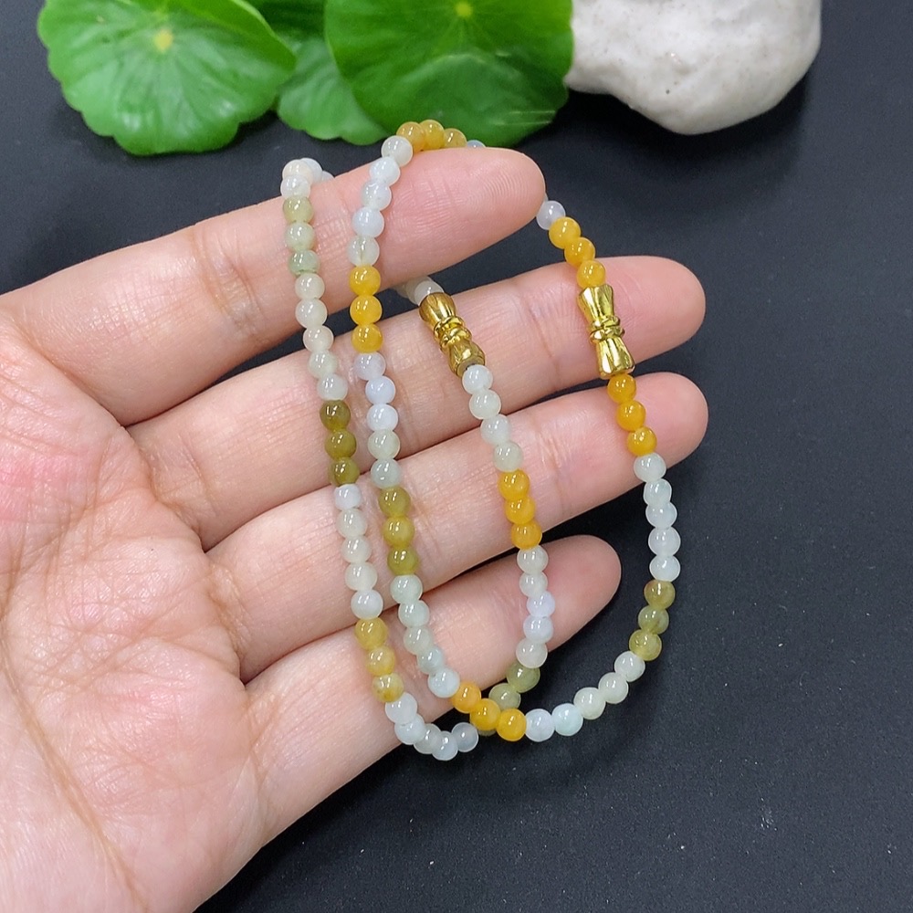 Jadeite Bracelet Approx. 3.7mm Beads Non-Gold Inlaid Total Weight Approx. 9.83g