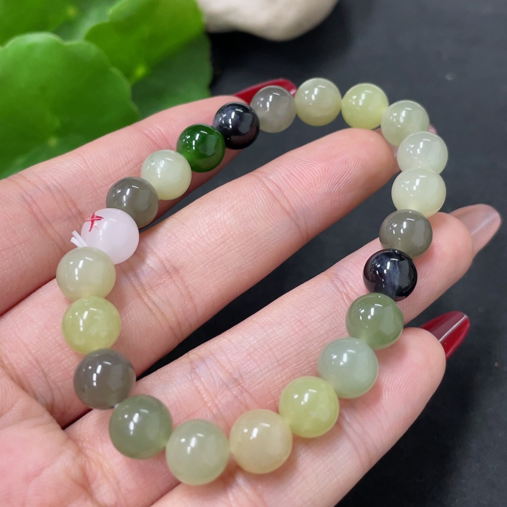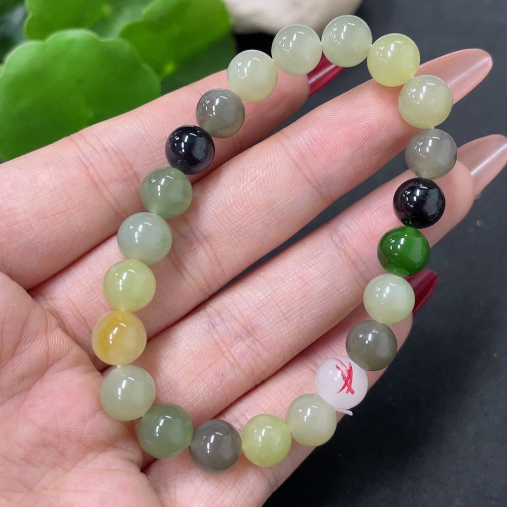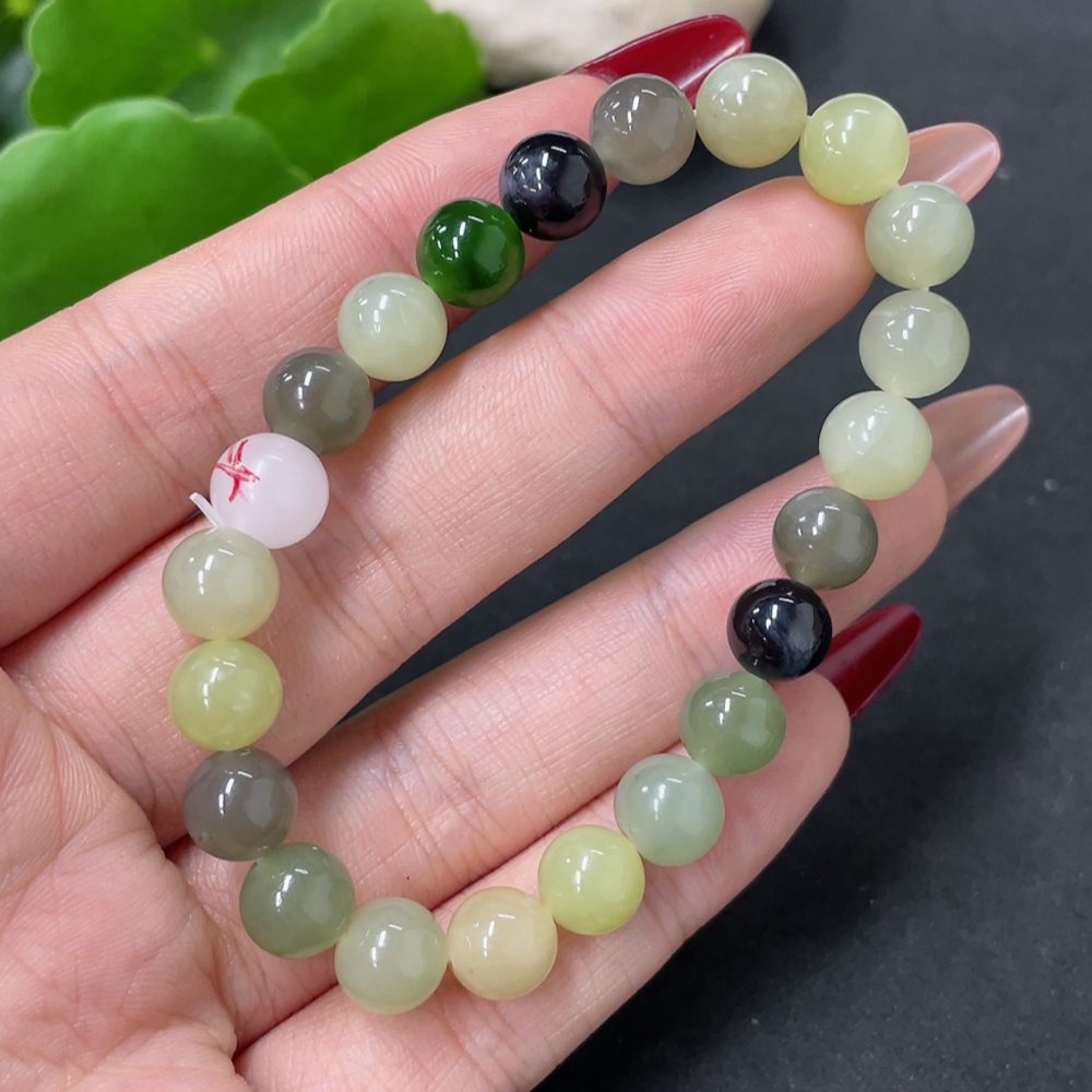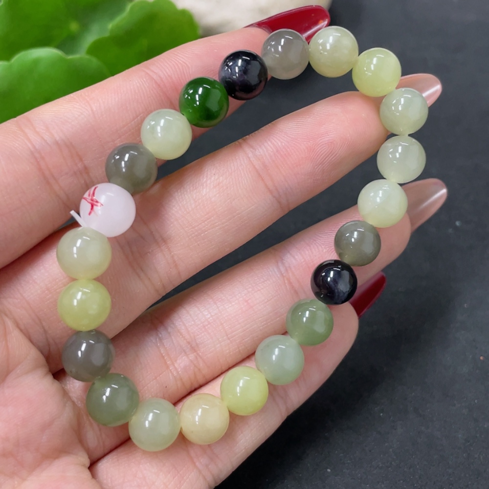 Hetian Jade Bracelet, approx. 7.8mm, total weight approx. 17.2g, non-Hetian Jade beads, with impurities