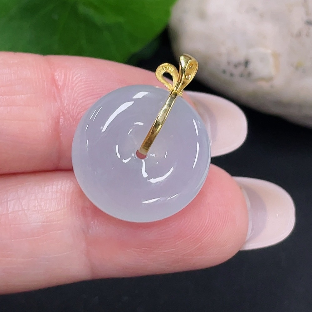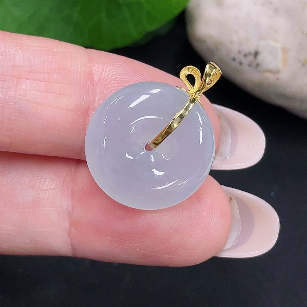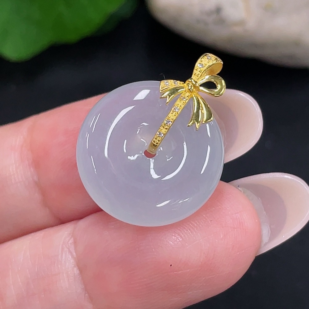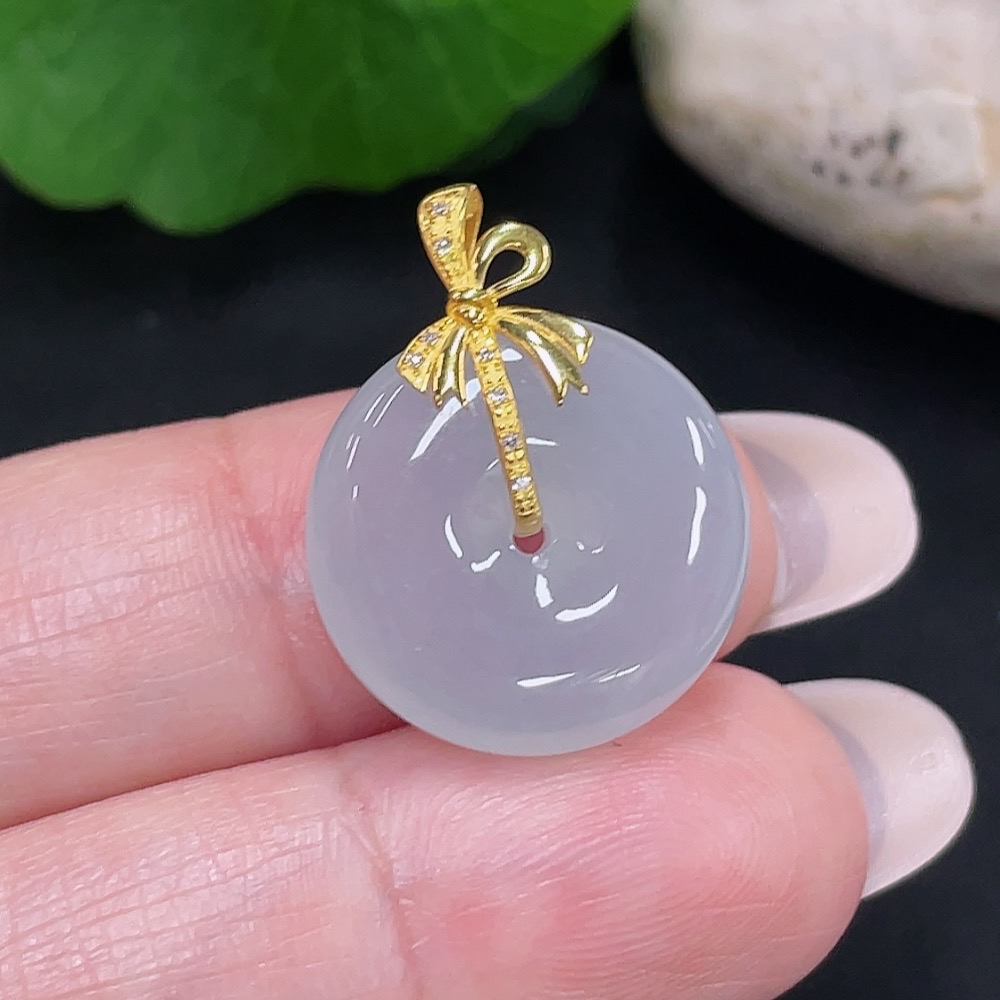 Jadeite Safety Pendant with 18K Gold, Total Weight Approx. 3.6g (Set with Diamonds)