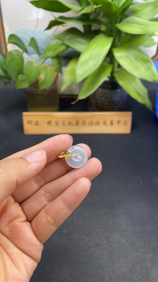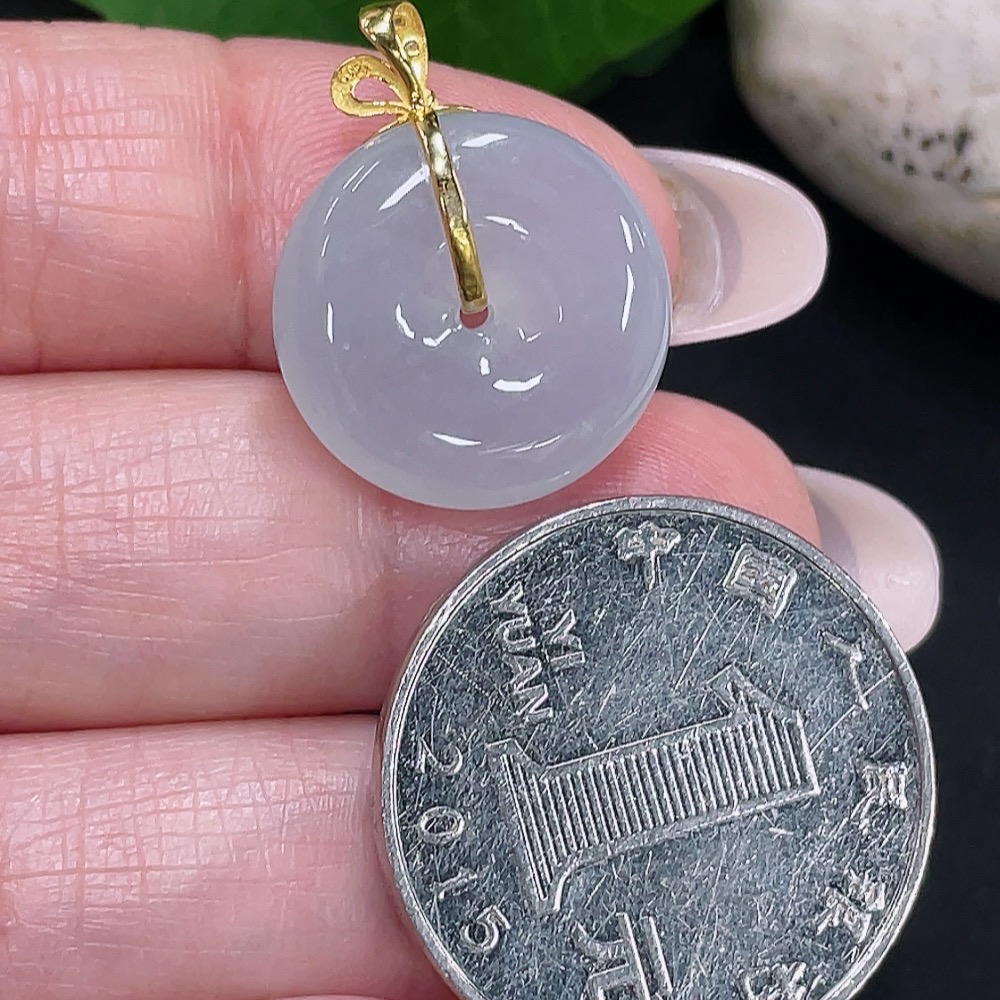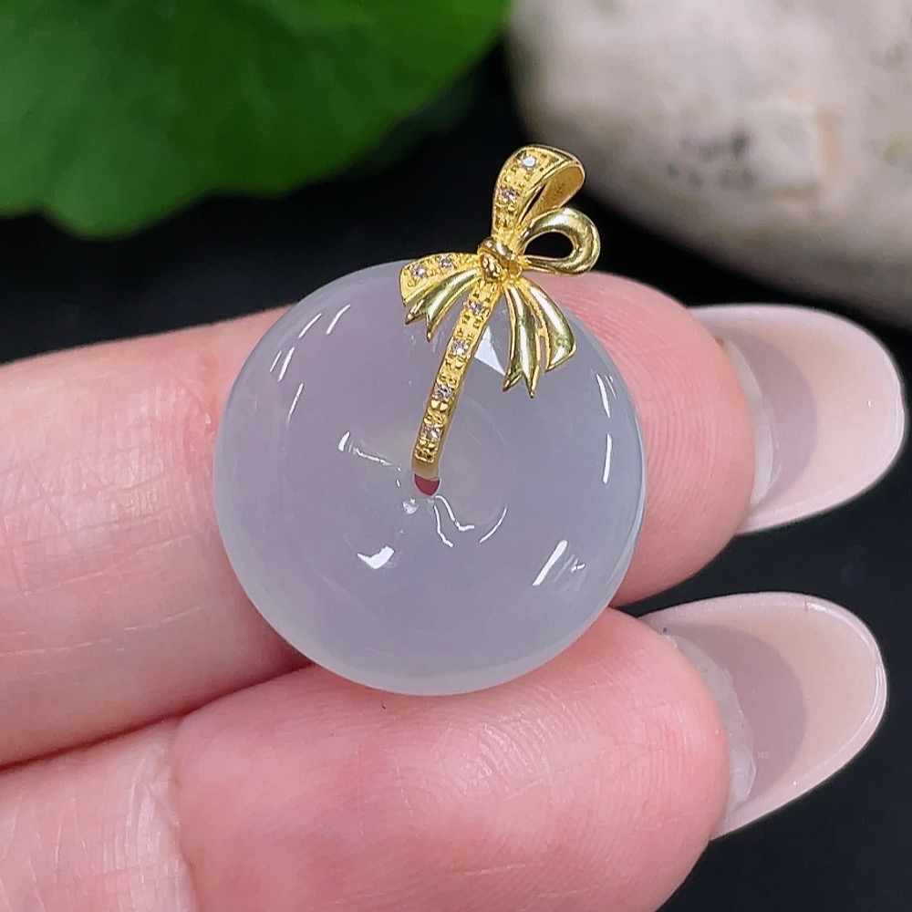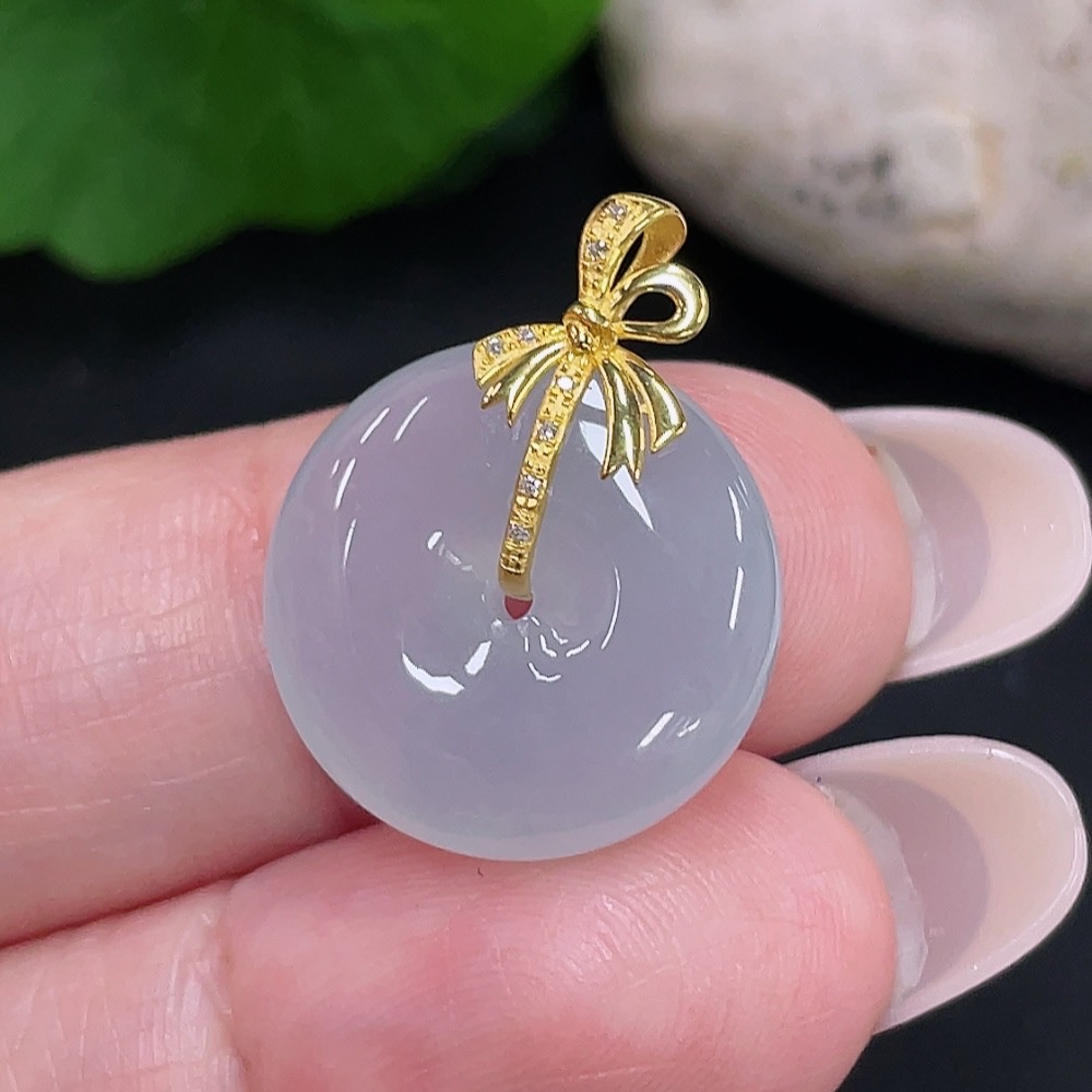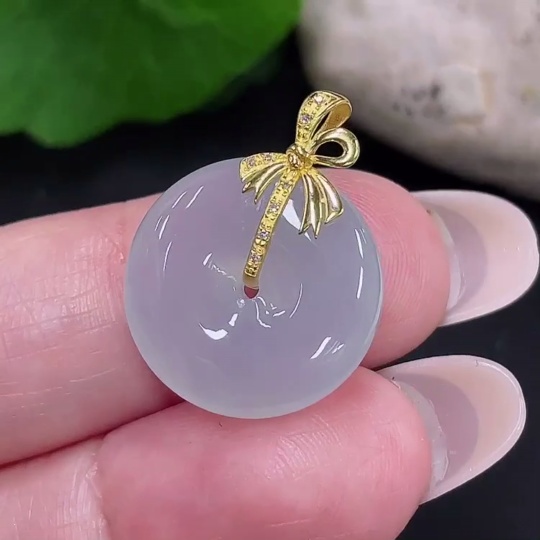 Jadeite Safety Pendant with 18K Gold, Total Weight Approx. 3.6g (Set with Diamonds)