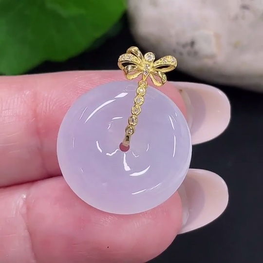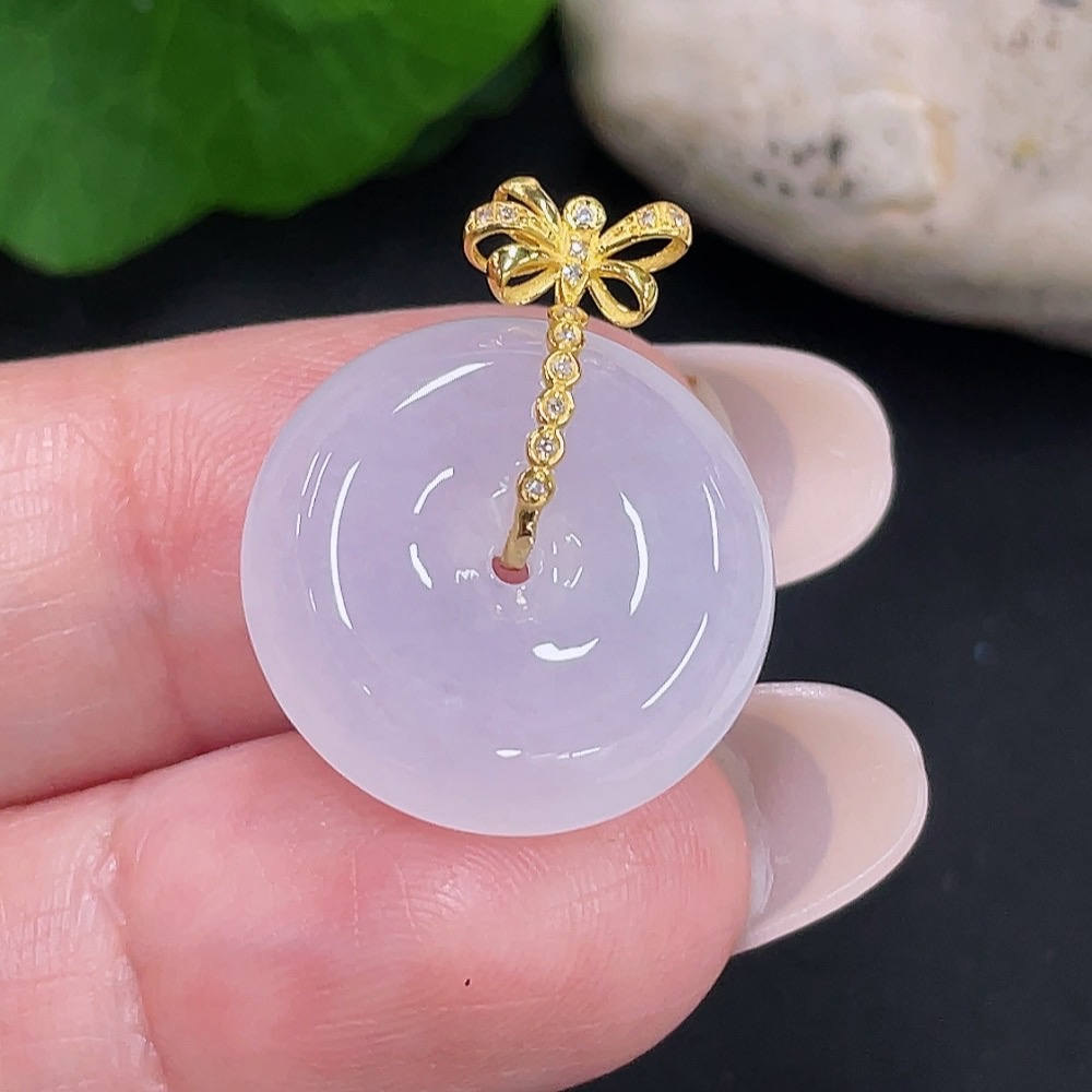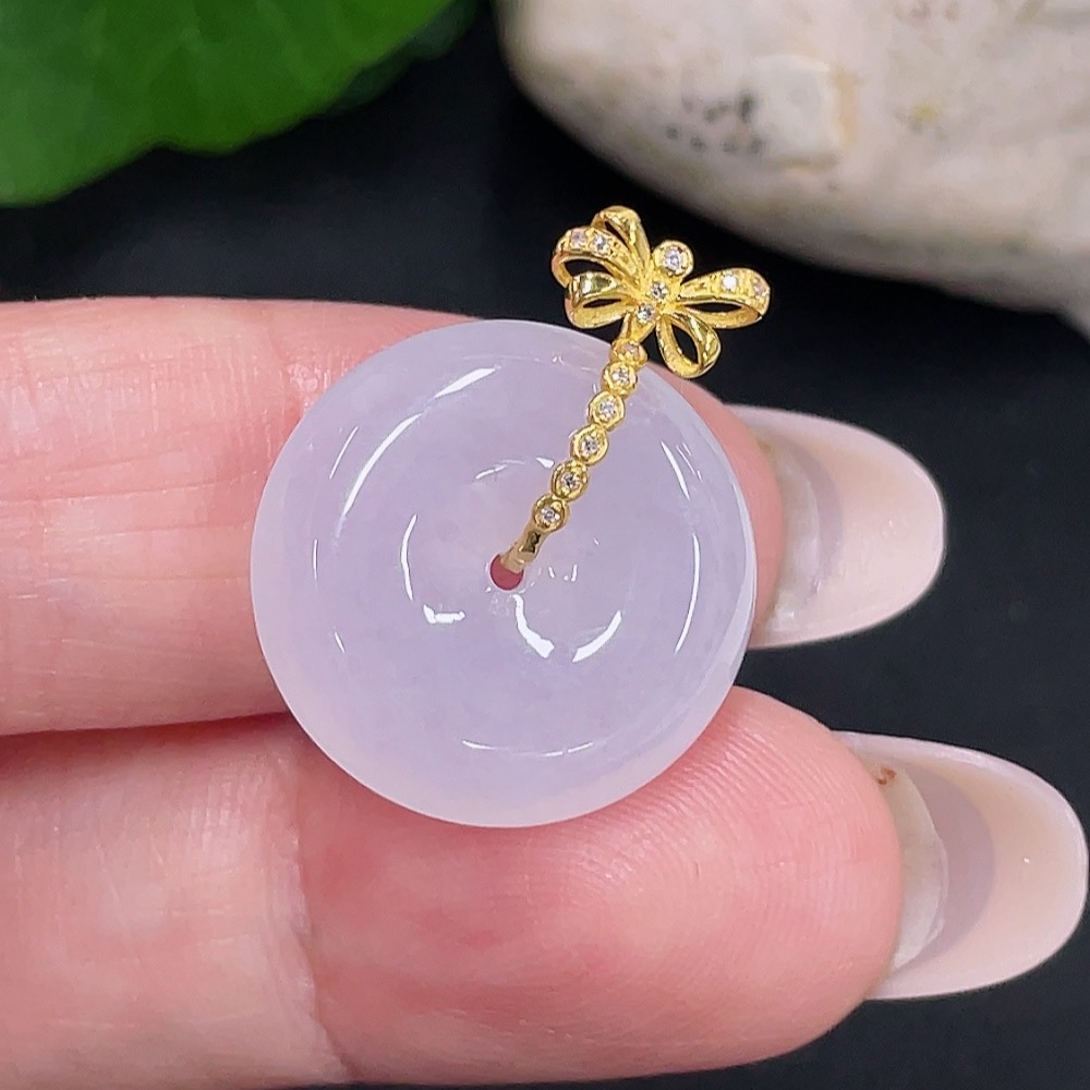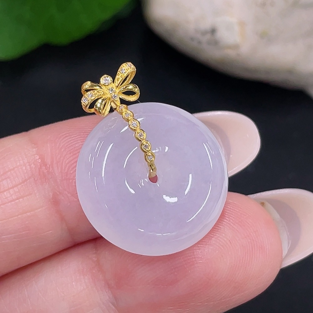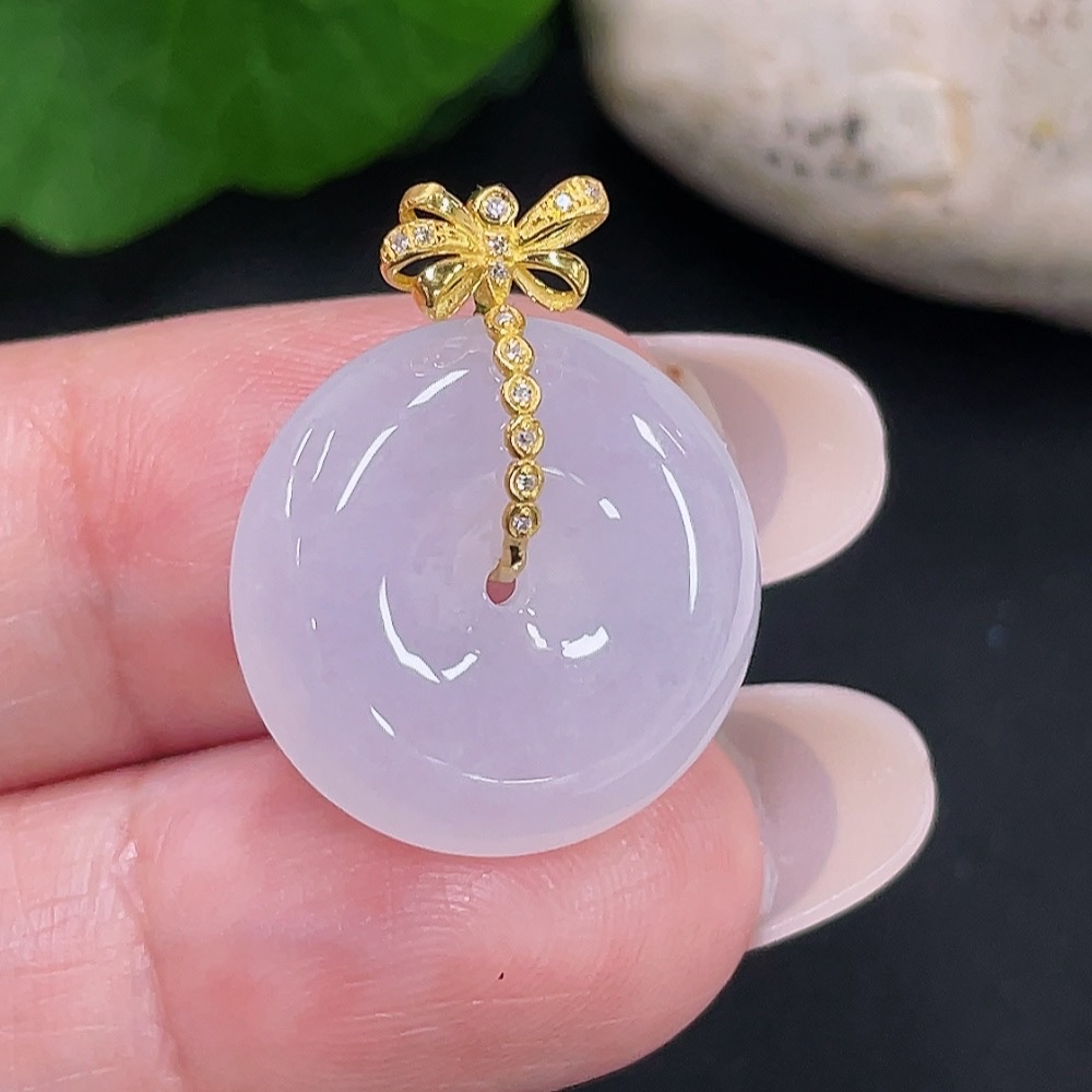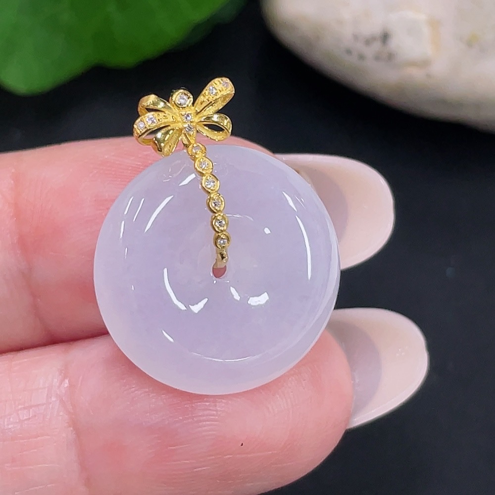 Jadeite Safety Buckle Pendant 18K Gold Total Weight Approx. 3.9g (with Diamond Accents)