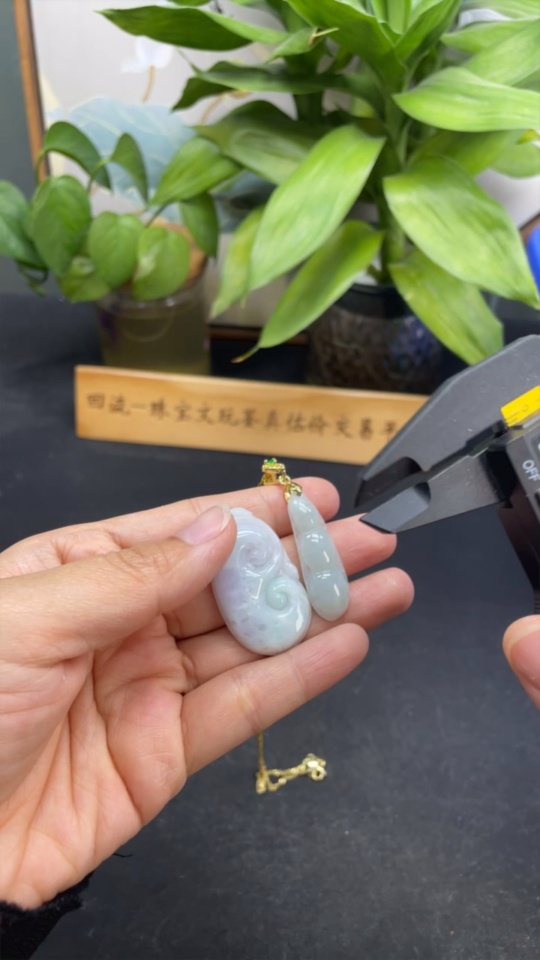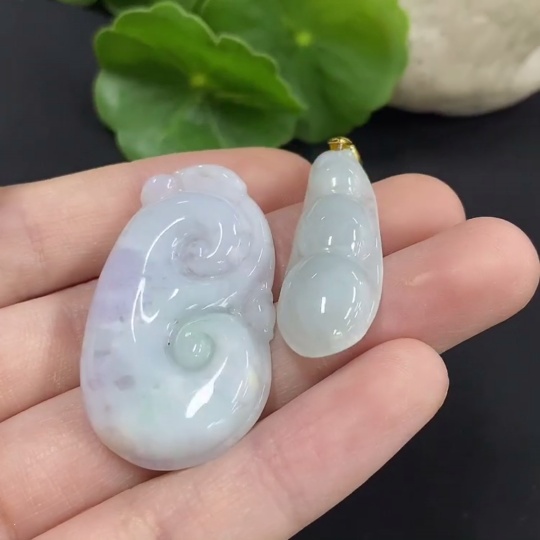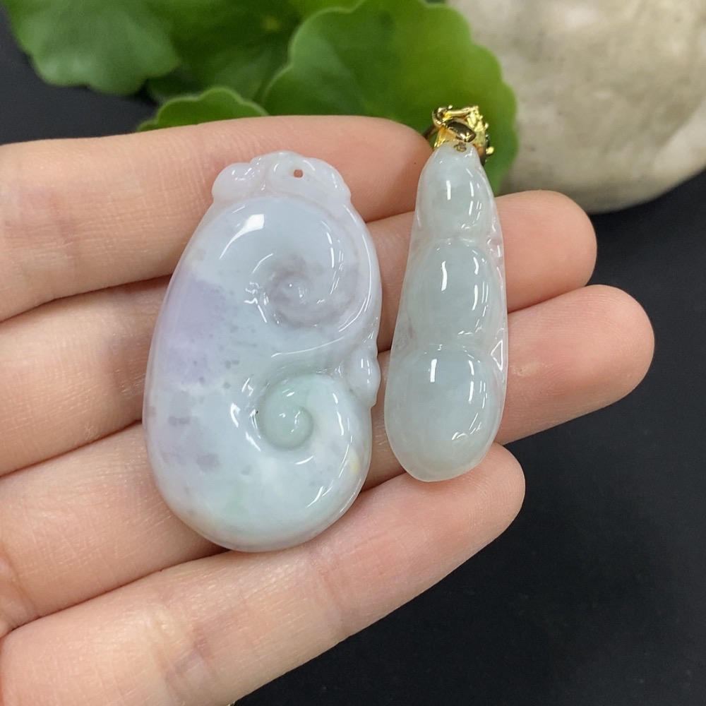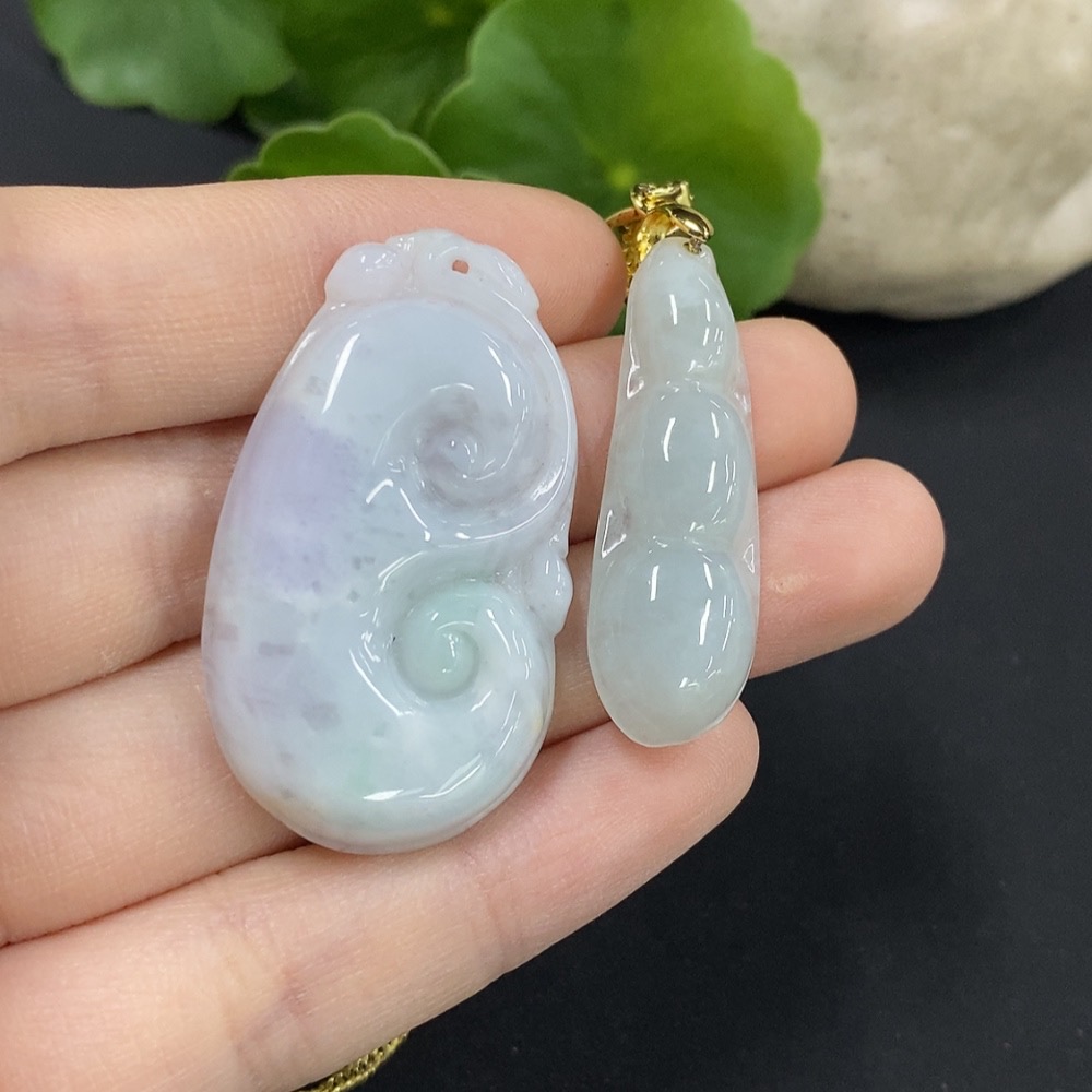 Jadeite Ruyi/Fu Dou Pendant Non-Gold Inlaid