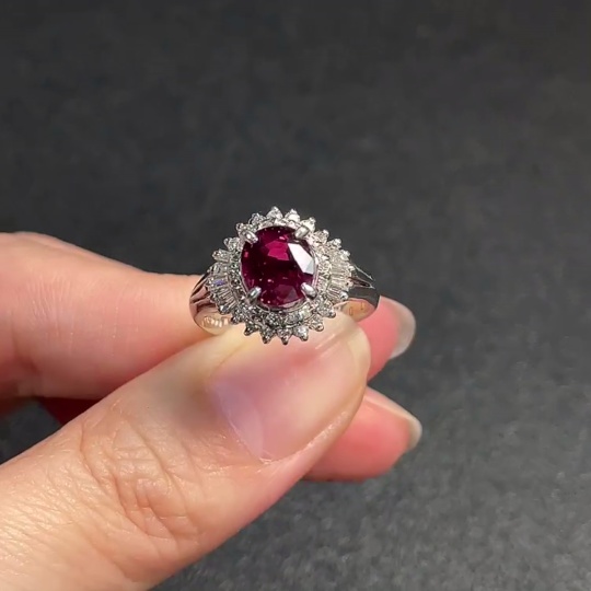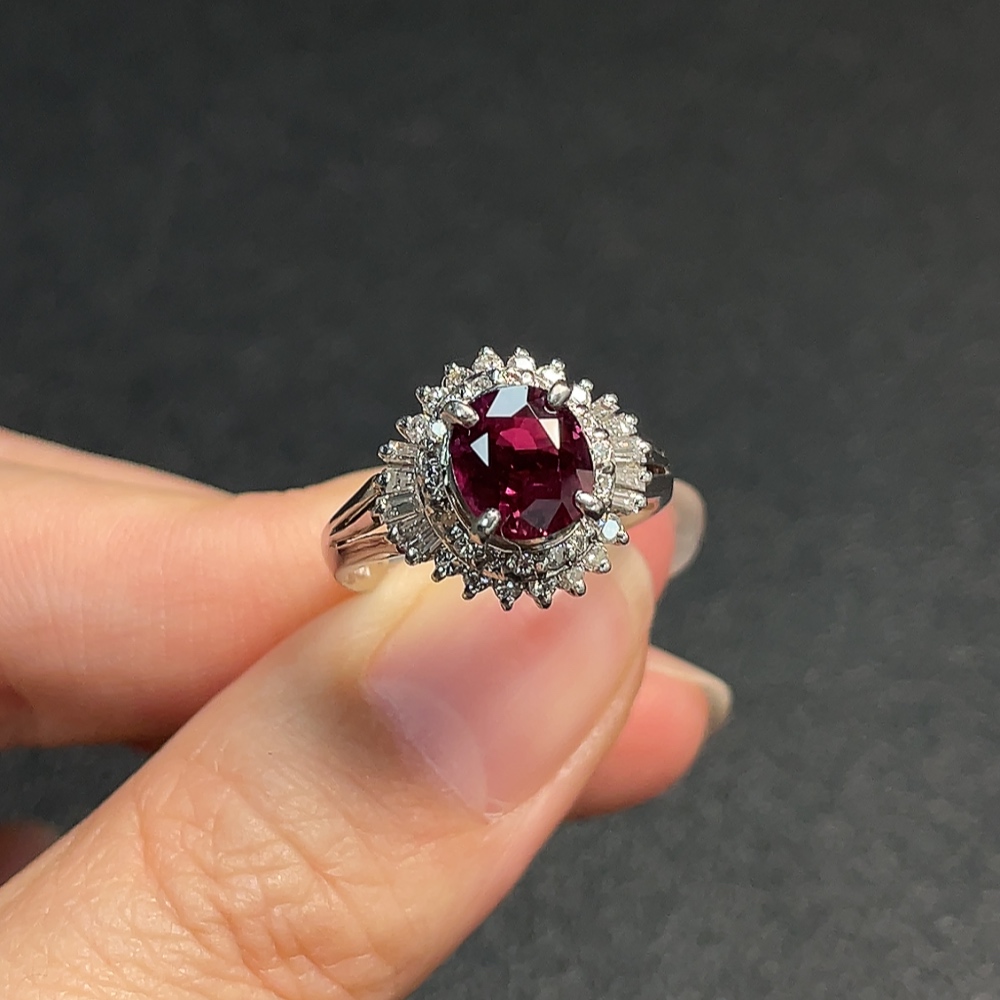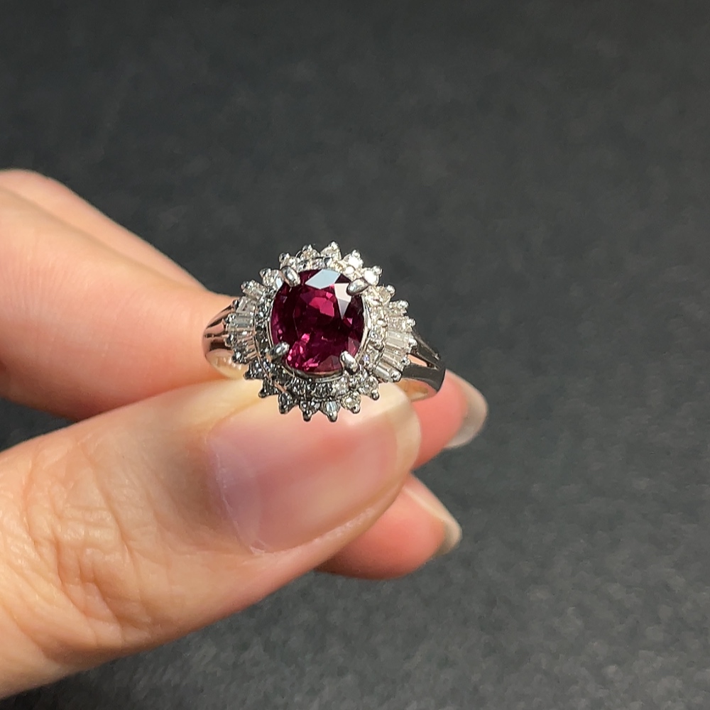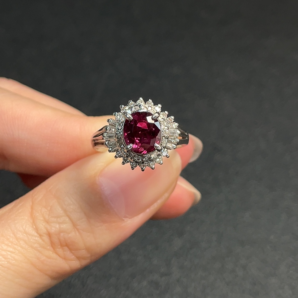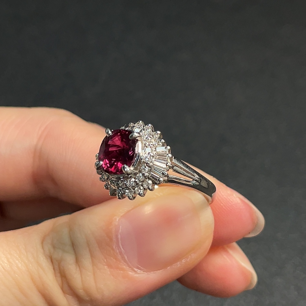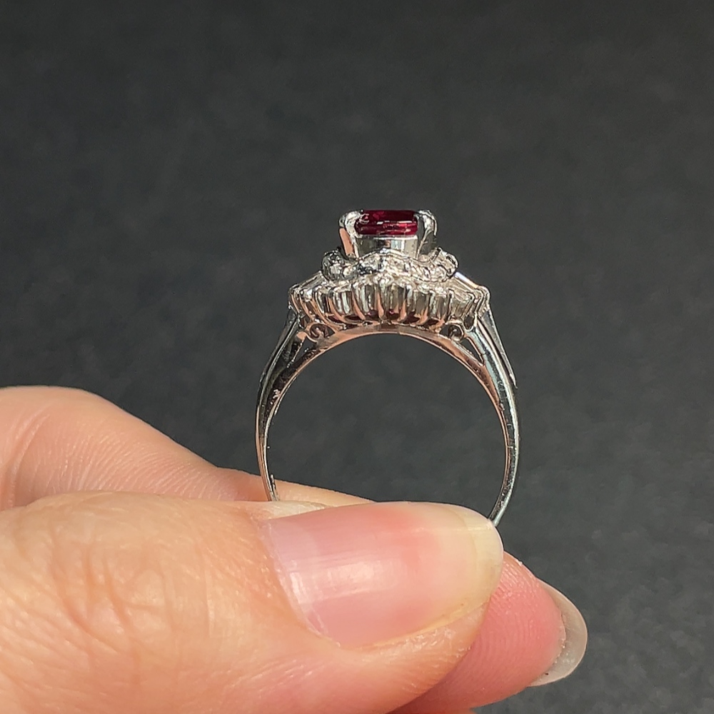 Ruby Ring with Diamond Accents, Round Diamonds Only, Pt90%, Total Weight Approx. 6.42g, Size 14
