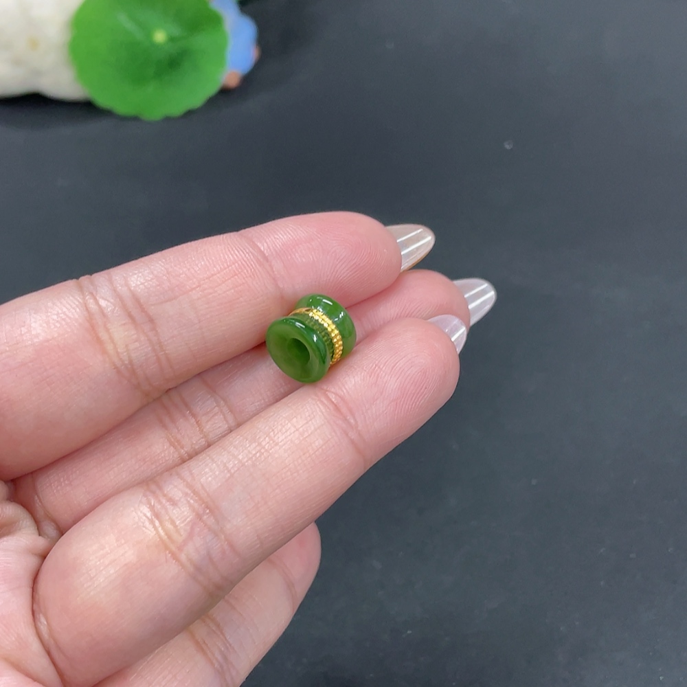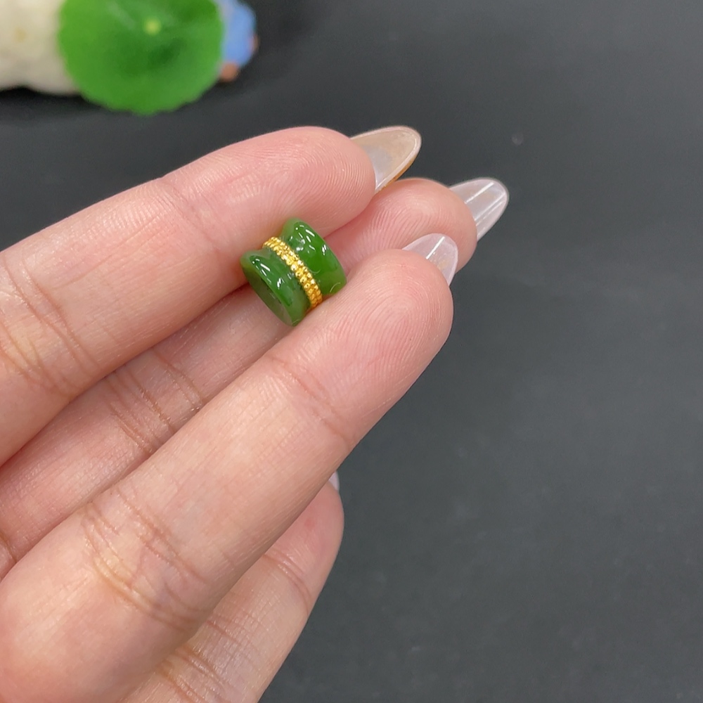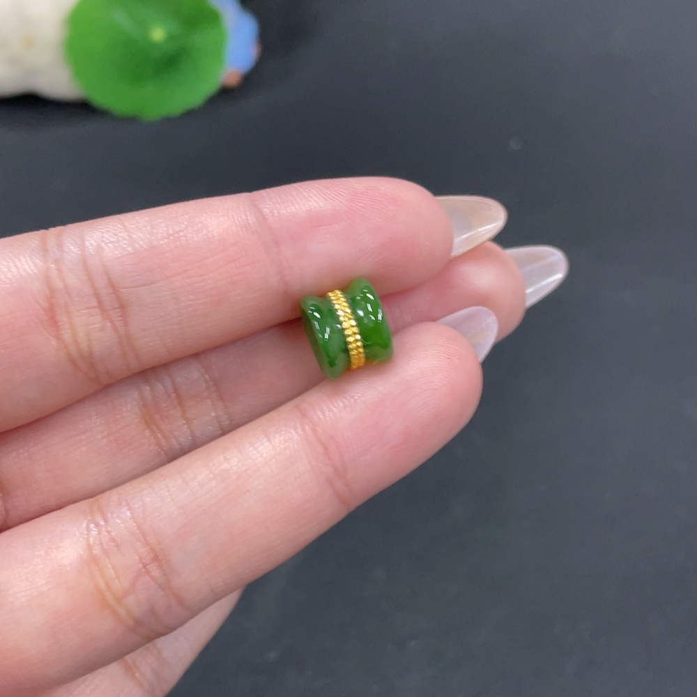 Hetian Jade Inlaid Pendant, Total Weight Approx. 1.4g, No Hallmark, Gold Content Tested 91%