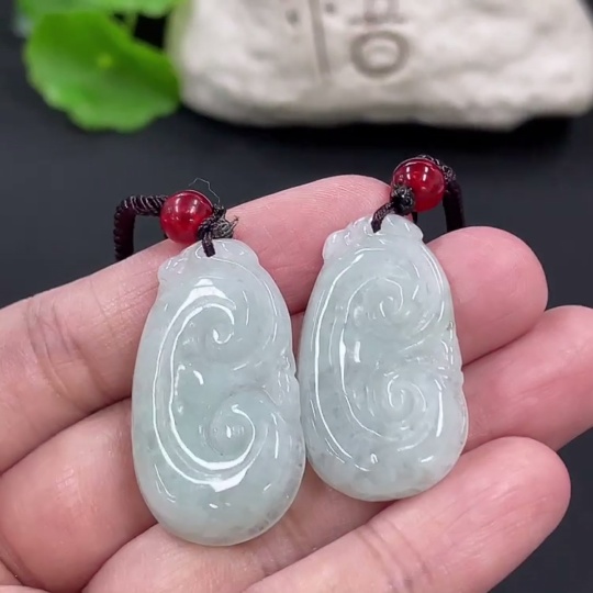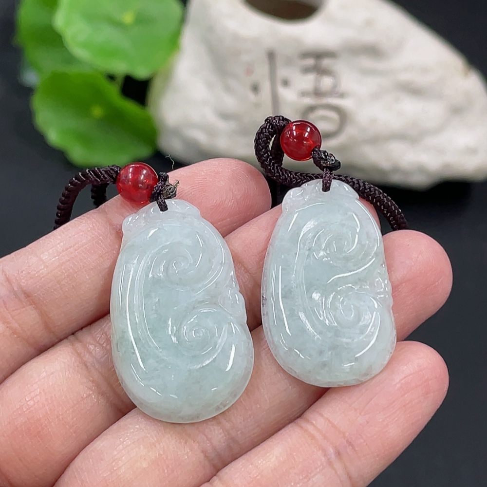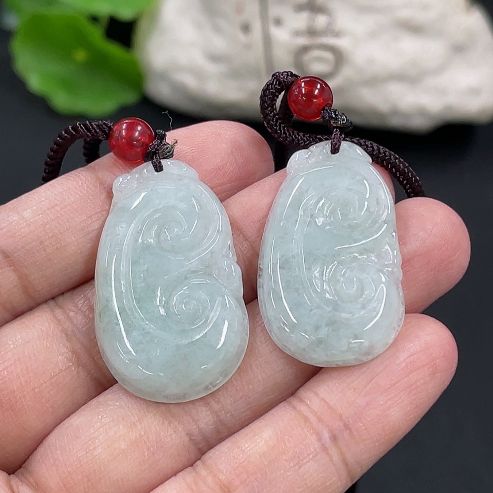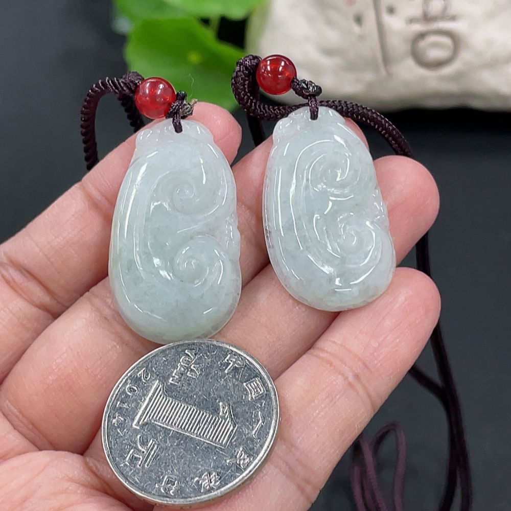 Jadeite Ruyi Pendant Total weight approx. 14.26g With non-A grade beads