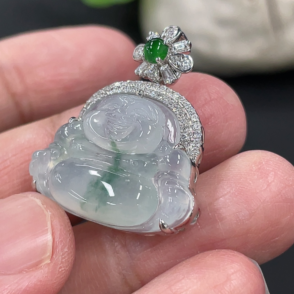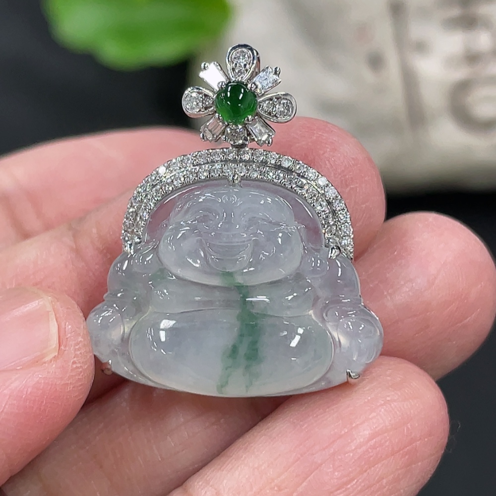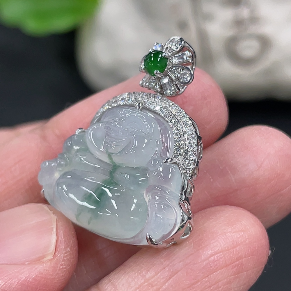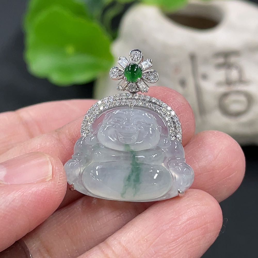 Jadeite Buddha Pendant with 18K Gold and Diamond Accents, Total Weight Approx. 5.24g