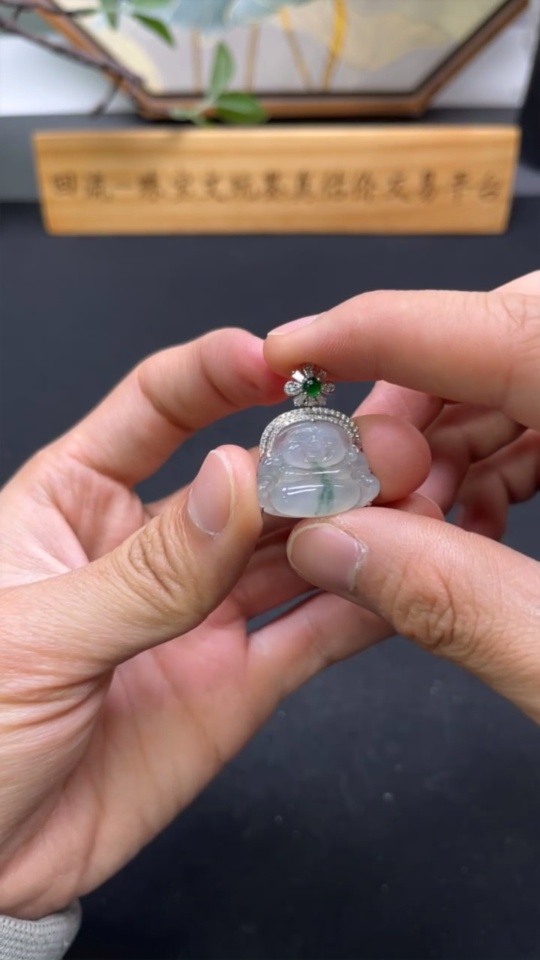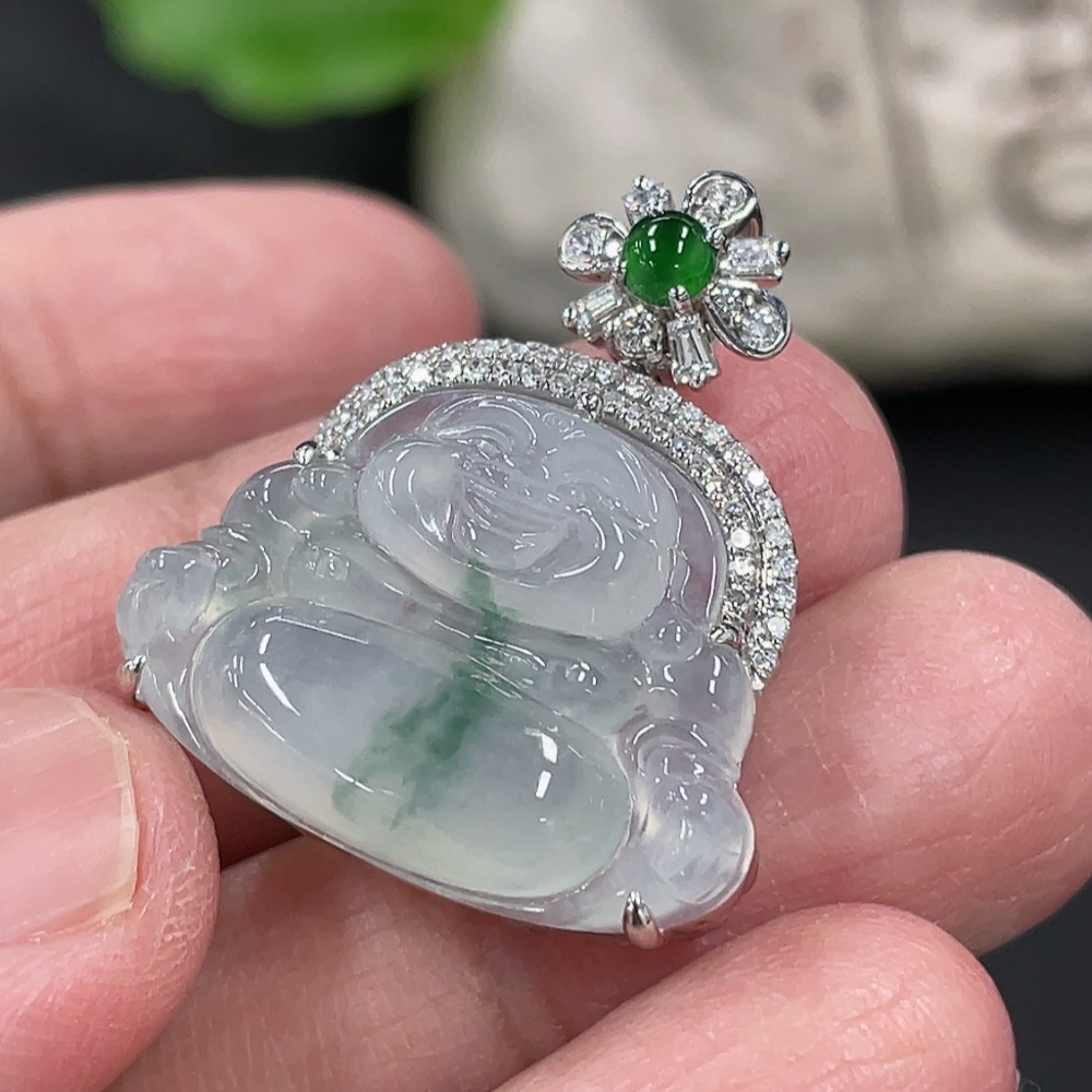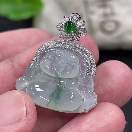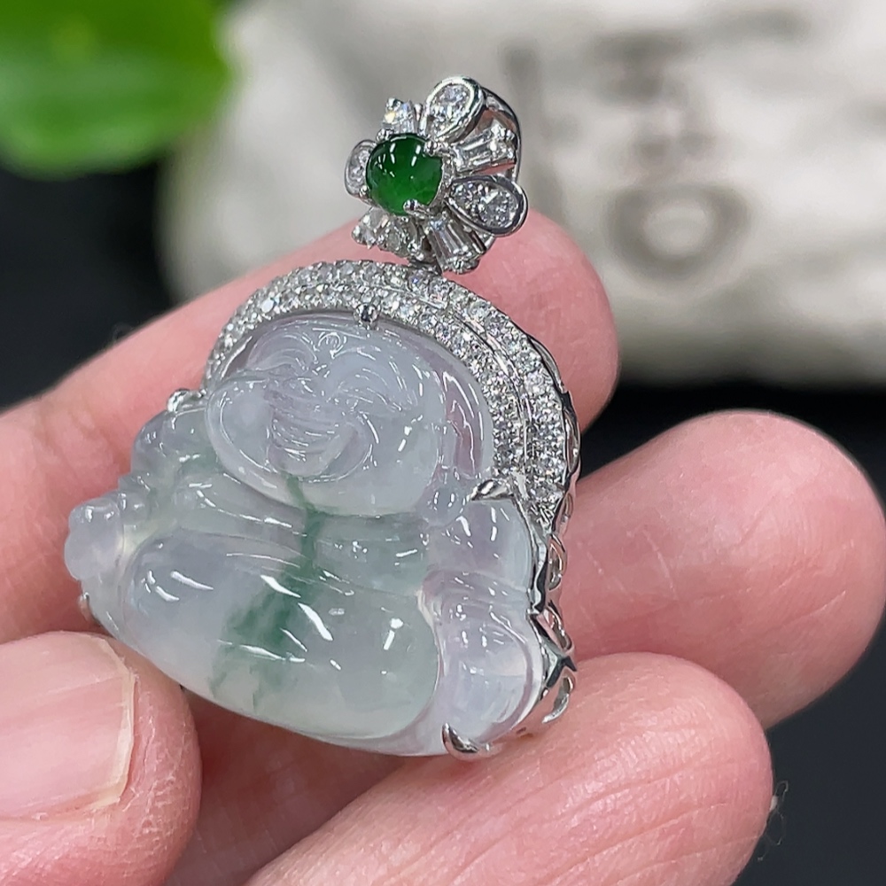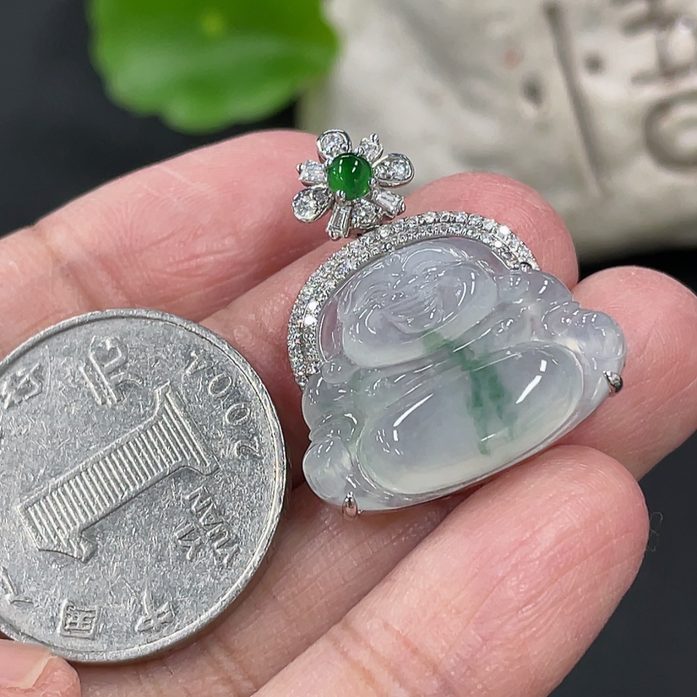Jadeite Buddha Pendant with 18K Gold and Diamond Accents, Total Weight Approx. 5.24g
