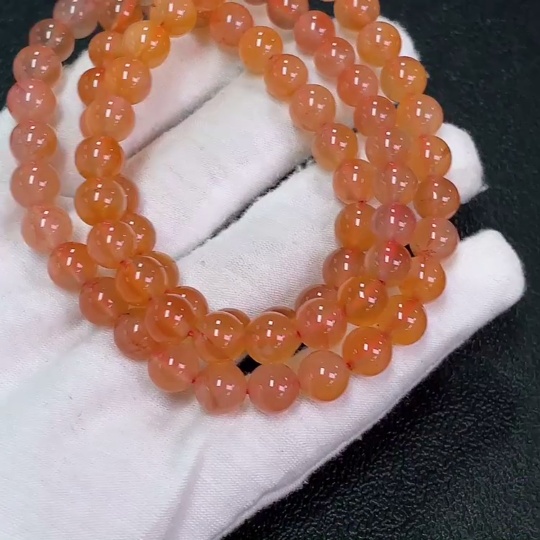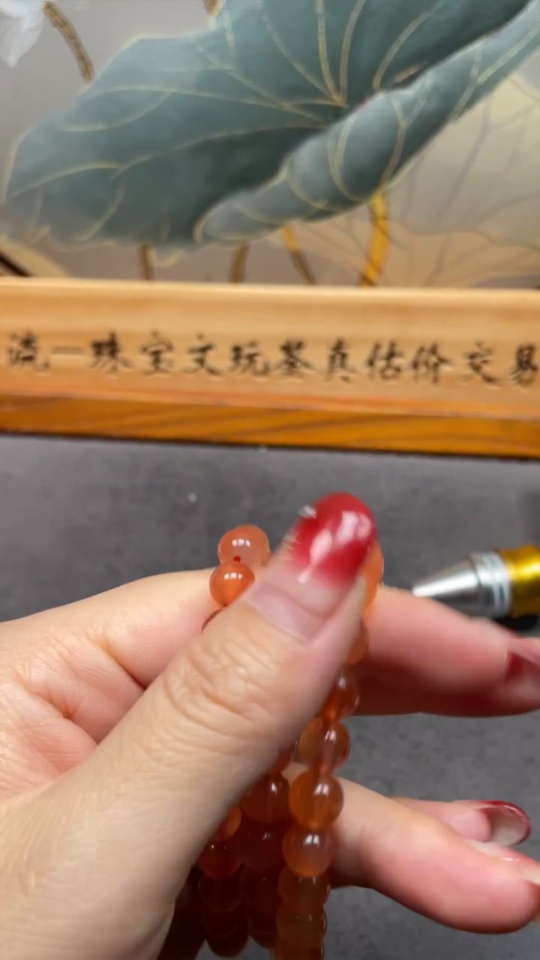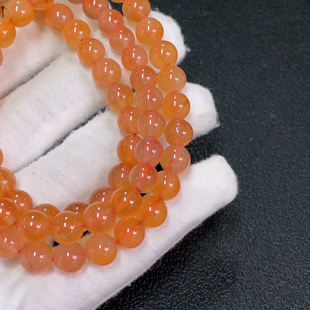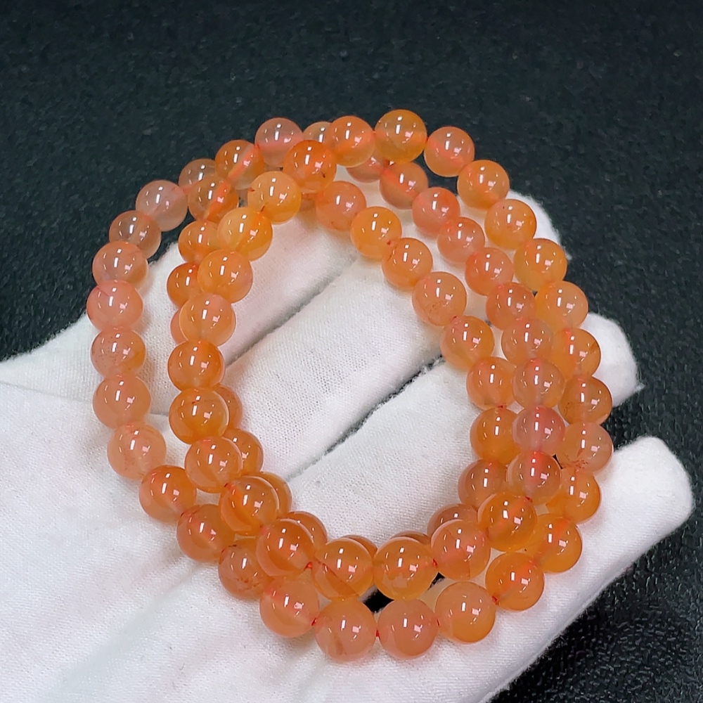 South Red Agate Bead Strand with Visible Organic Matter, Total Weight Approximately 45.43g, Size About 7.6mm