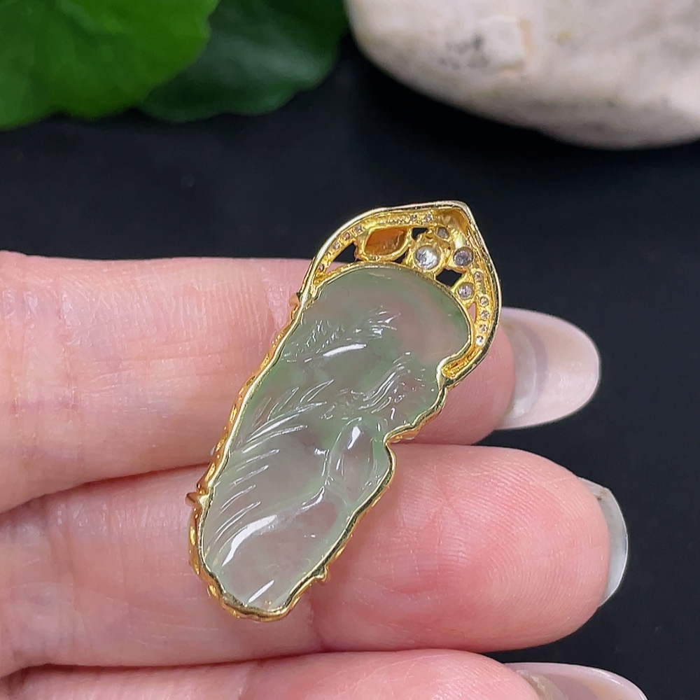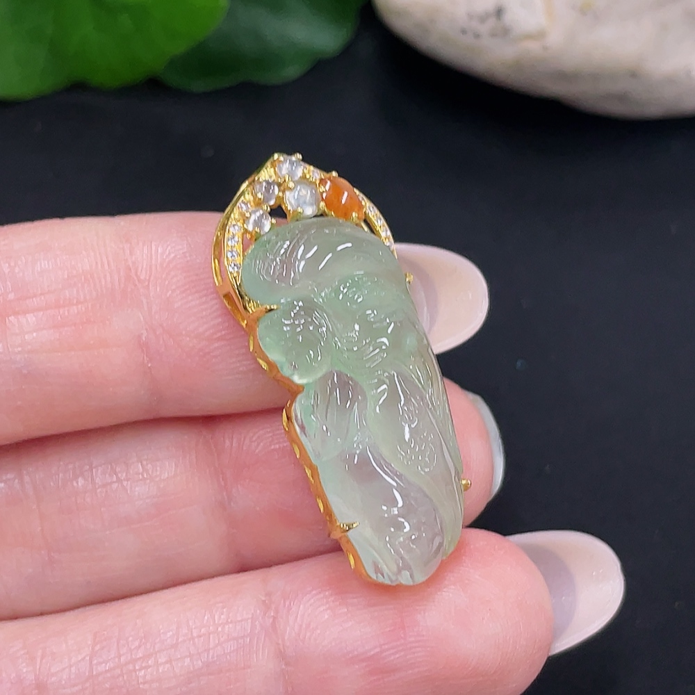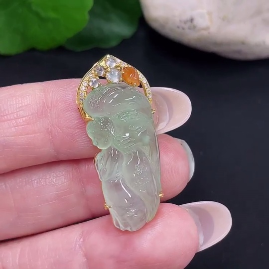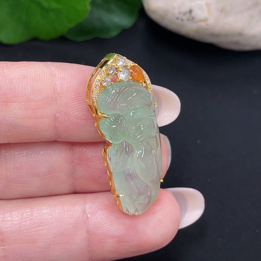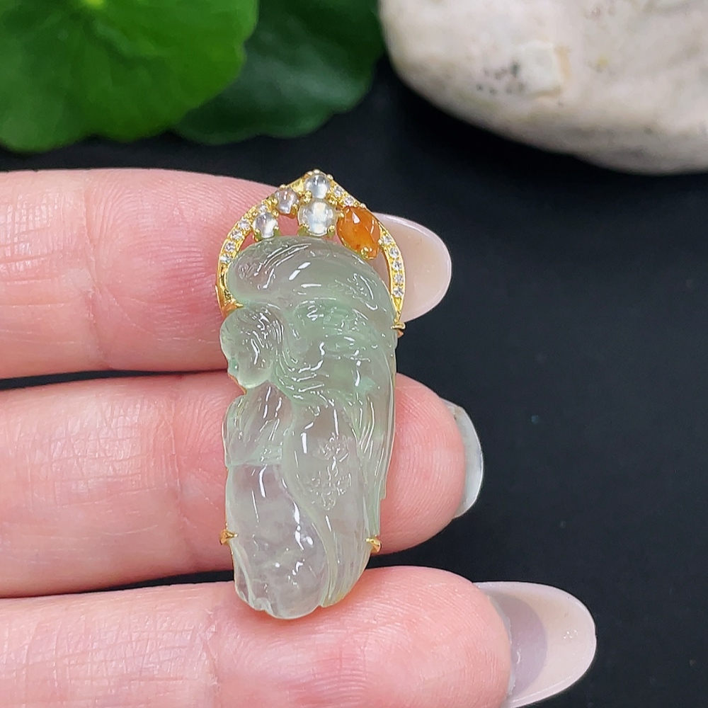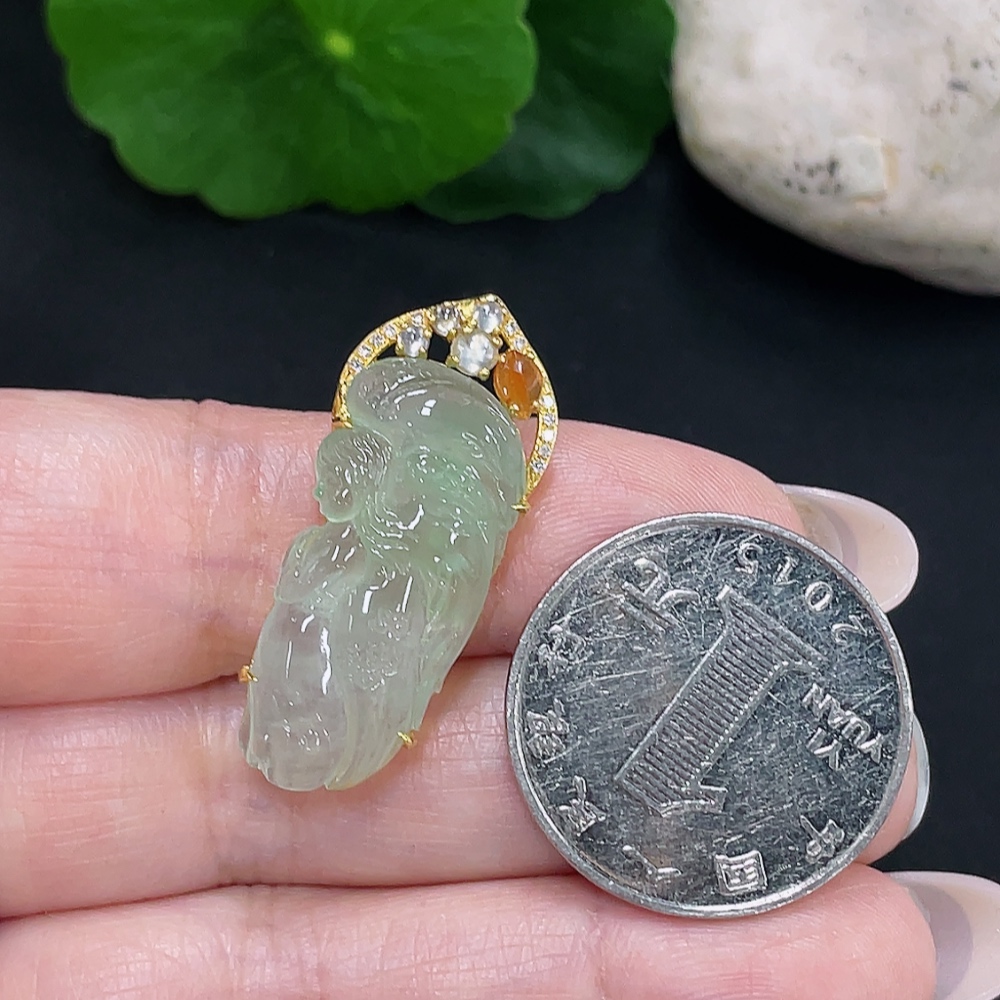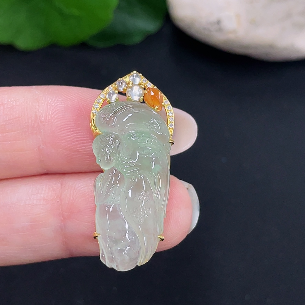 Jadeite Angel Inlaid Pendant 18k with Diamond Accents Total Weight Approx. 4.53g