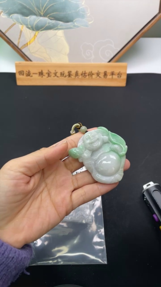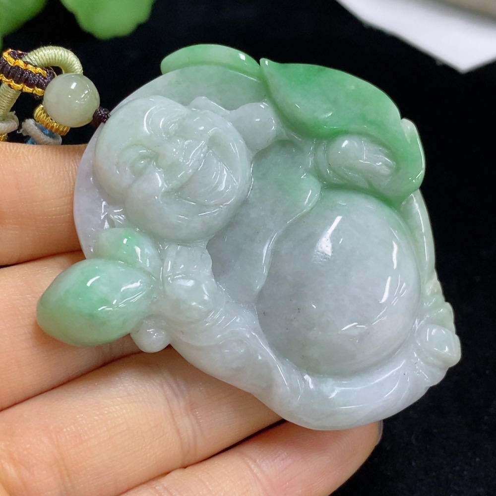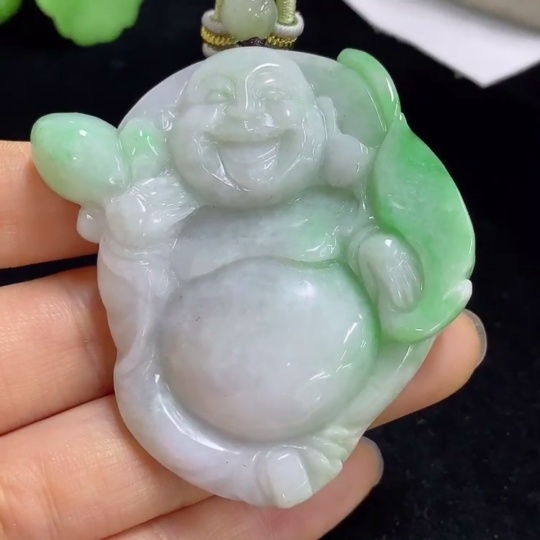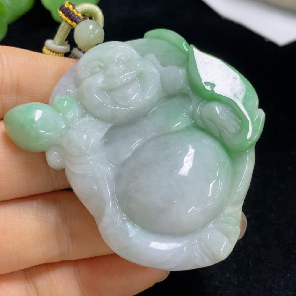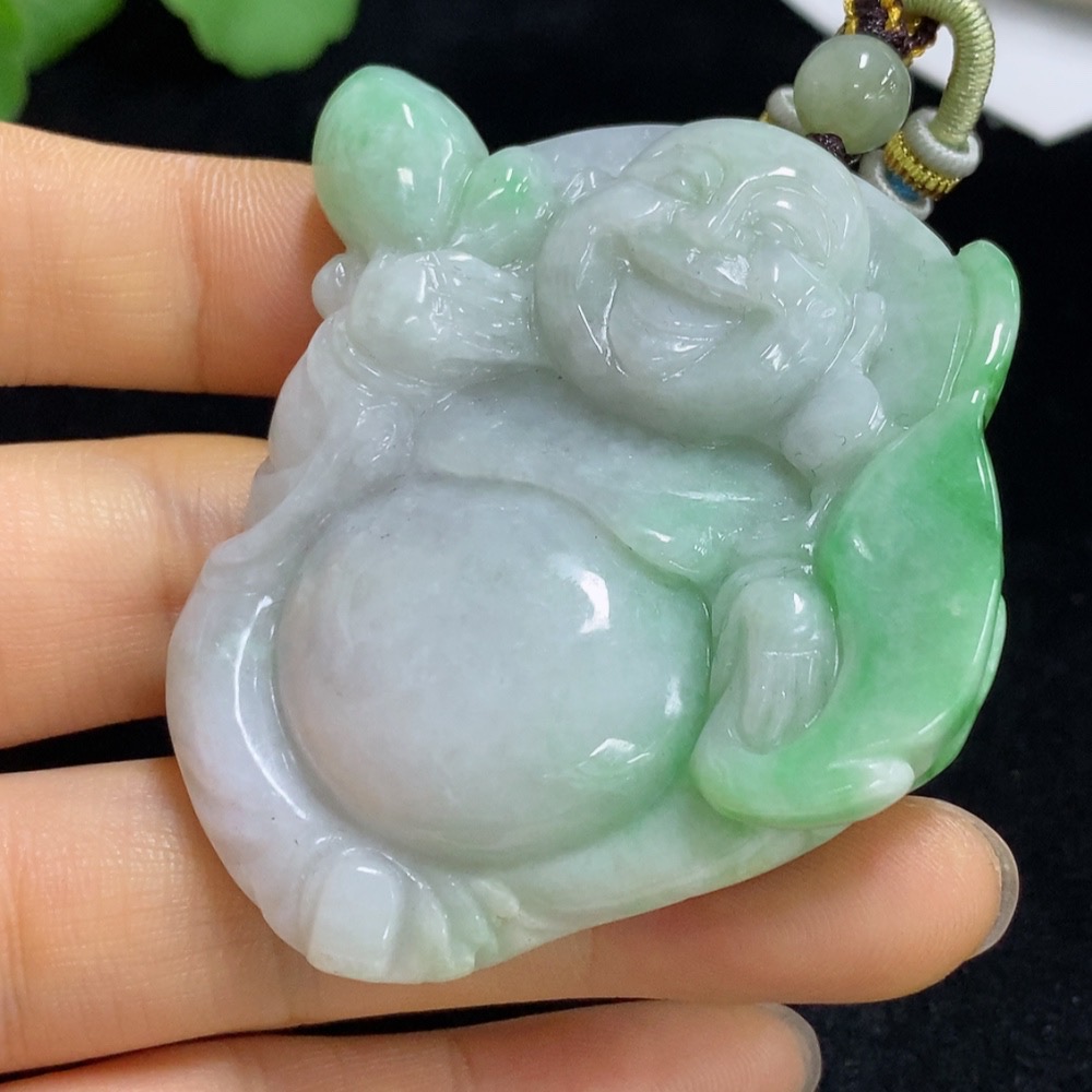 Jadeite Buddha Pendant Total Weight Approx. 64.8g (Including Rope Weight)