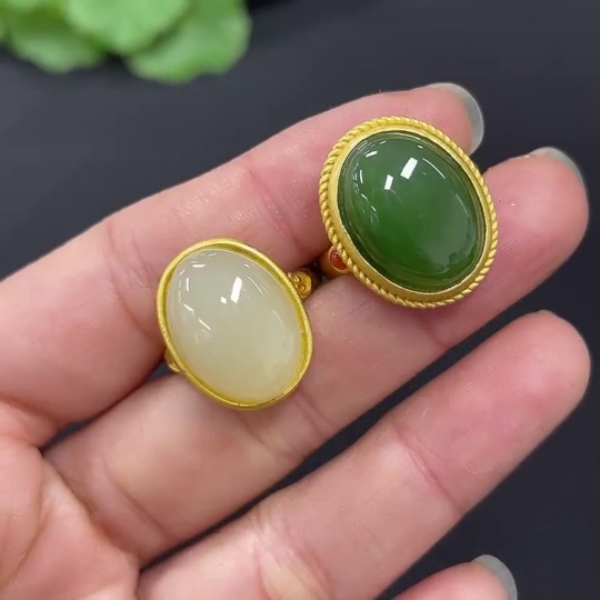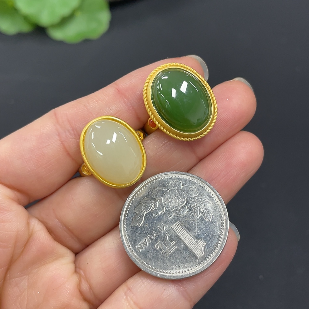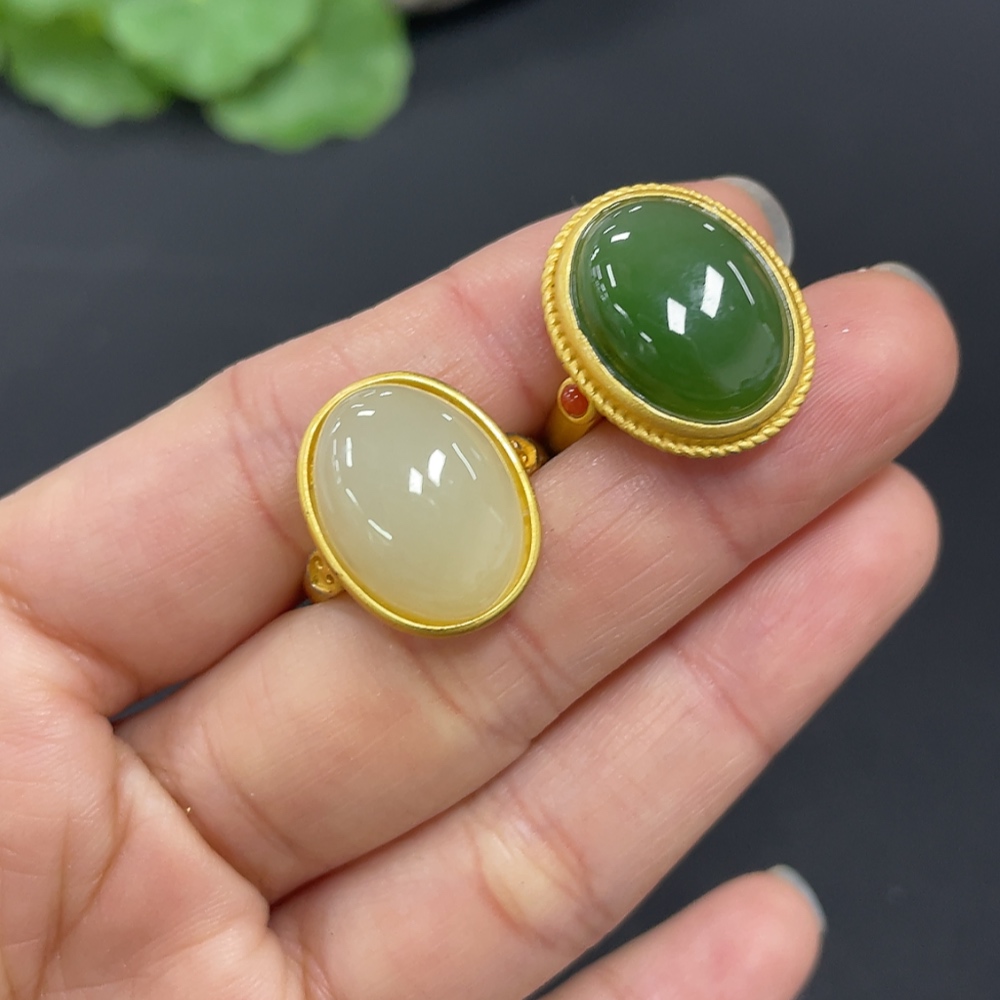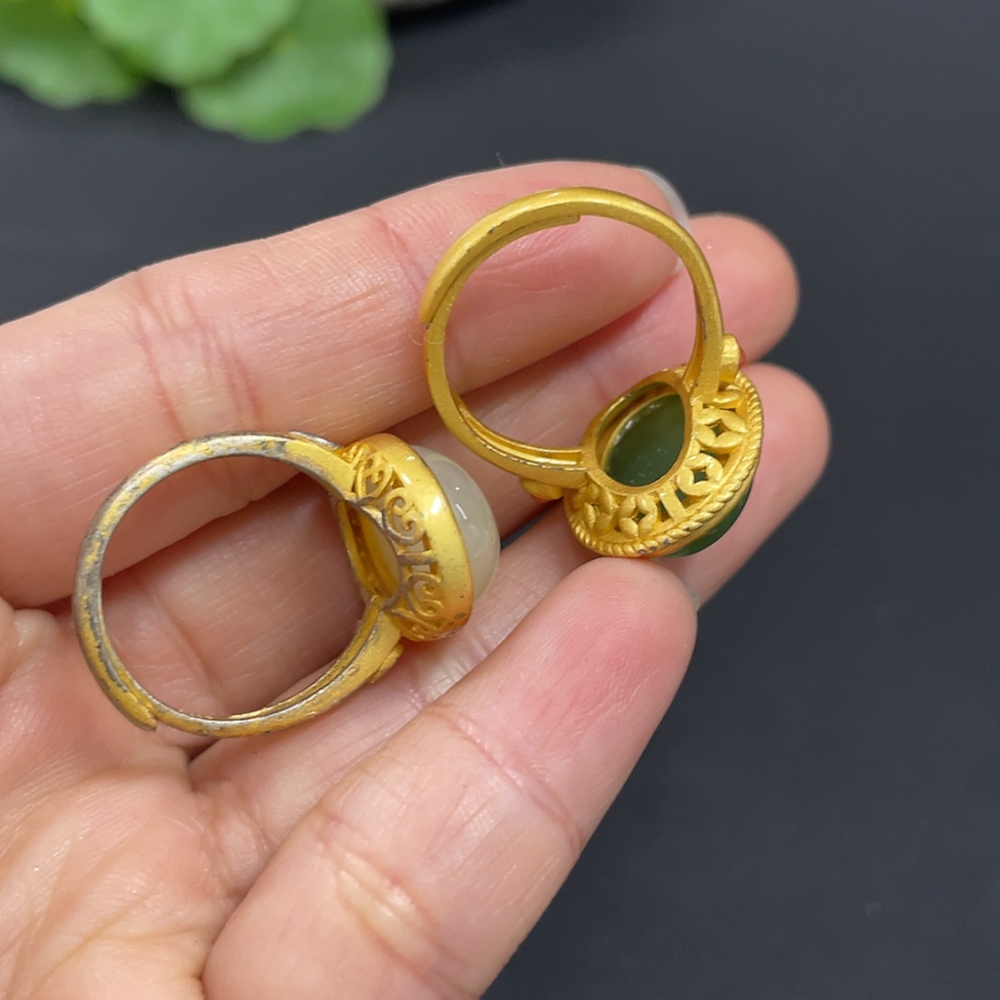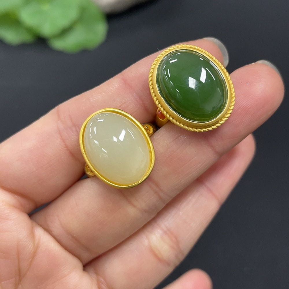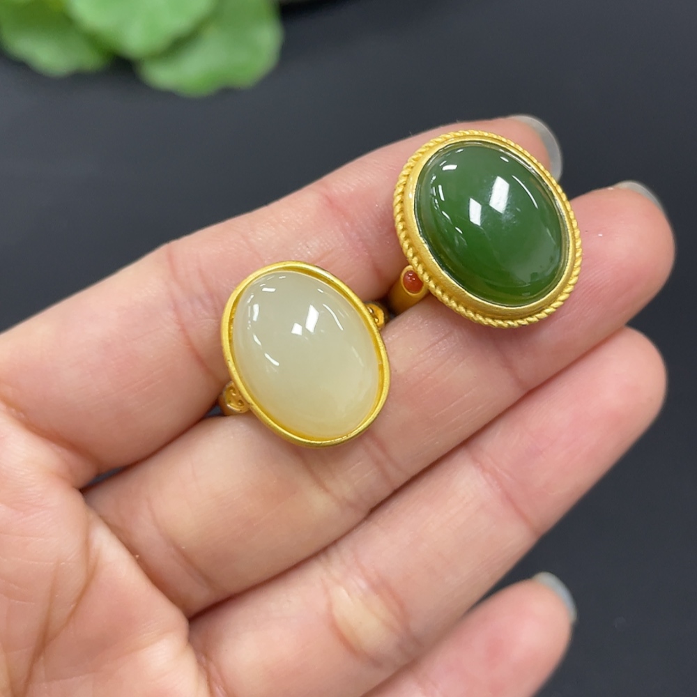 Hetian Jade Inlaid Adjustable Ring Non-Gold Inlaid Total Weight Approx. 10.3g