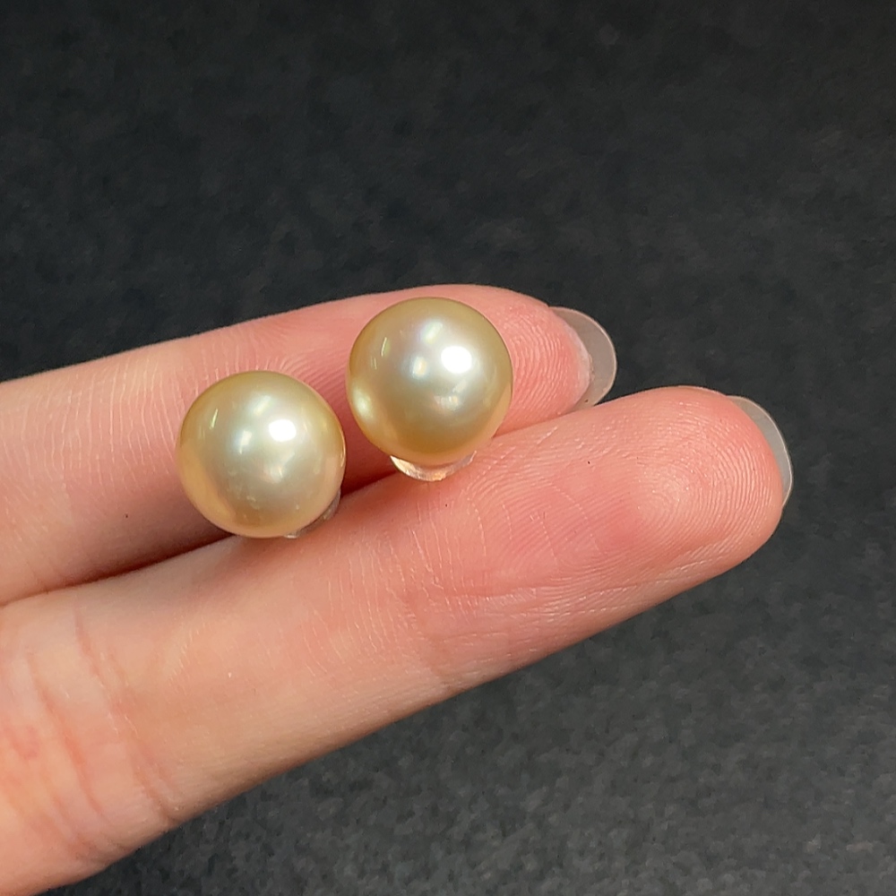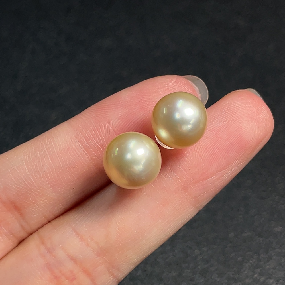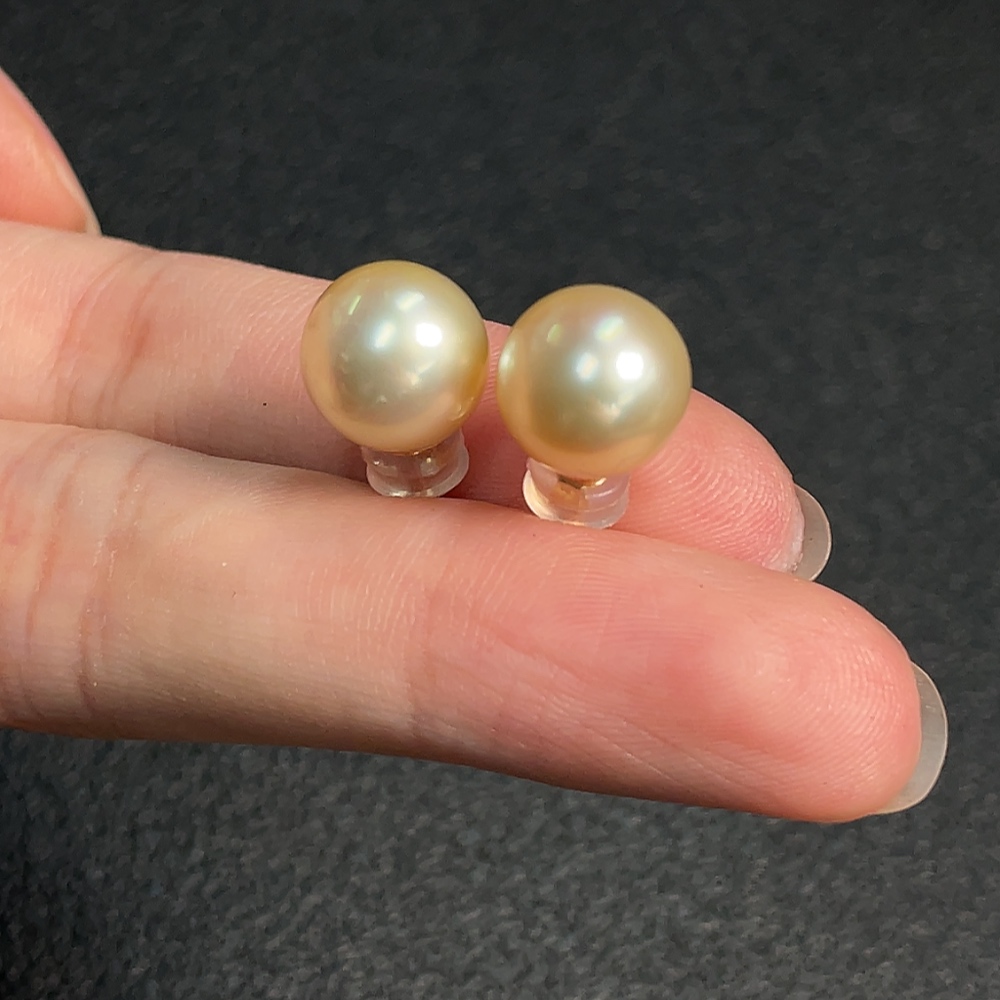 18K Seawater Pearl Earrings, Color Origin Undetermined, Total Weight Approximately 3.09g, Size About 9.8mm