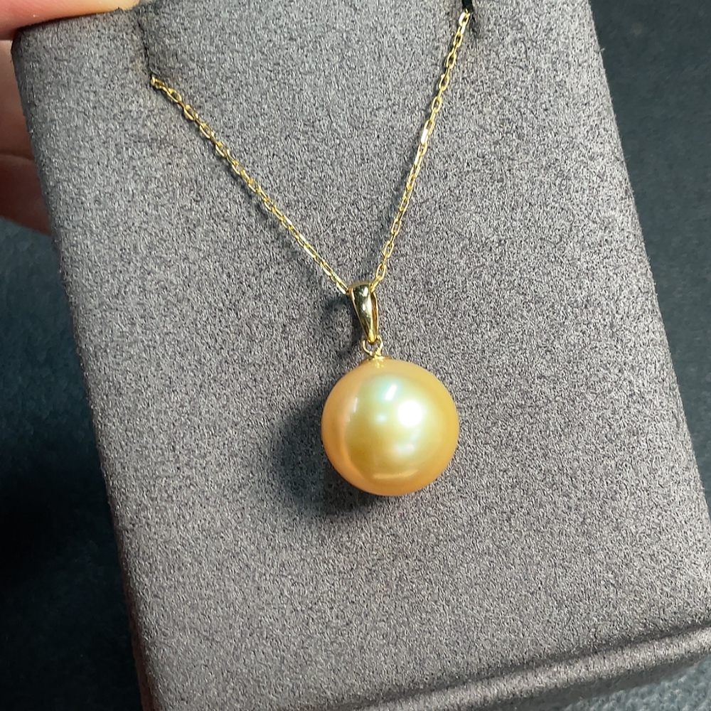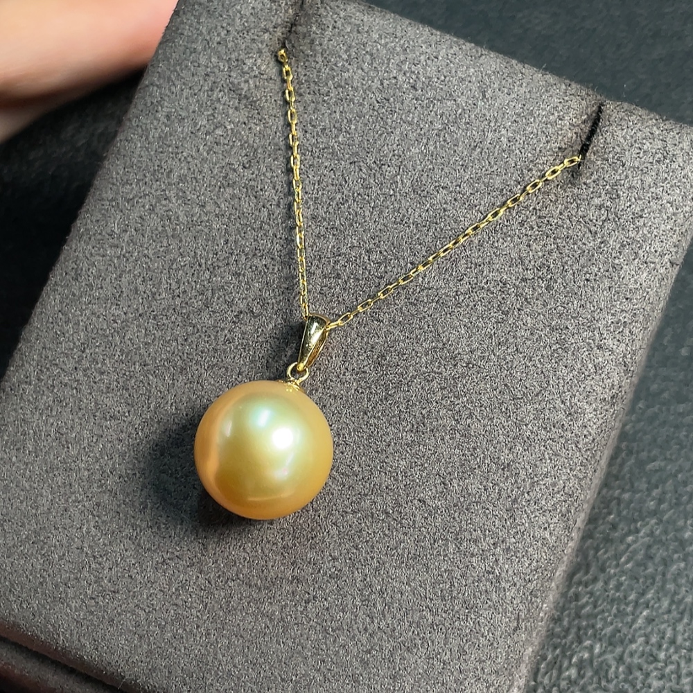 18K Sea Water Pearl Necklace, Color Origin Undetermined, Total Weight Approximately 4.02g, Size About 12.2mm