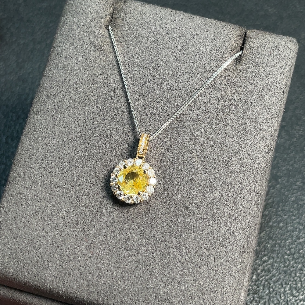 18K Blue Sapphire Necklace (Non-Diamond, Color Origin Undetermined, Total Weight Approx. 2.23g, Stone Size Around 5.9mm)