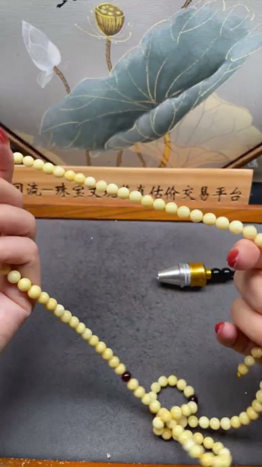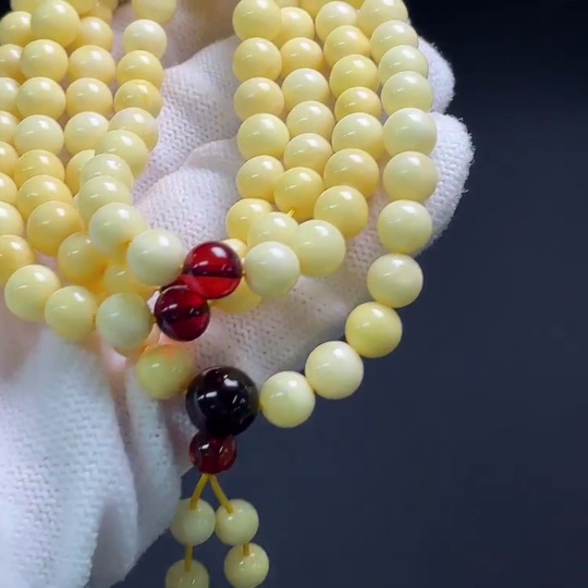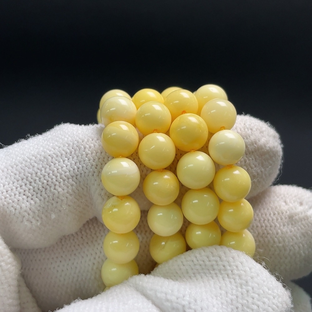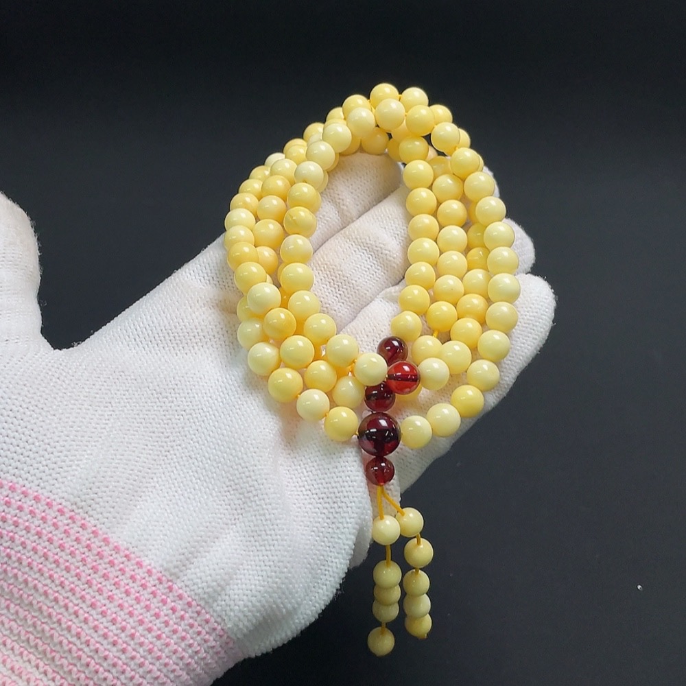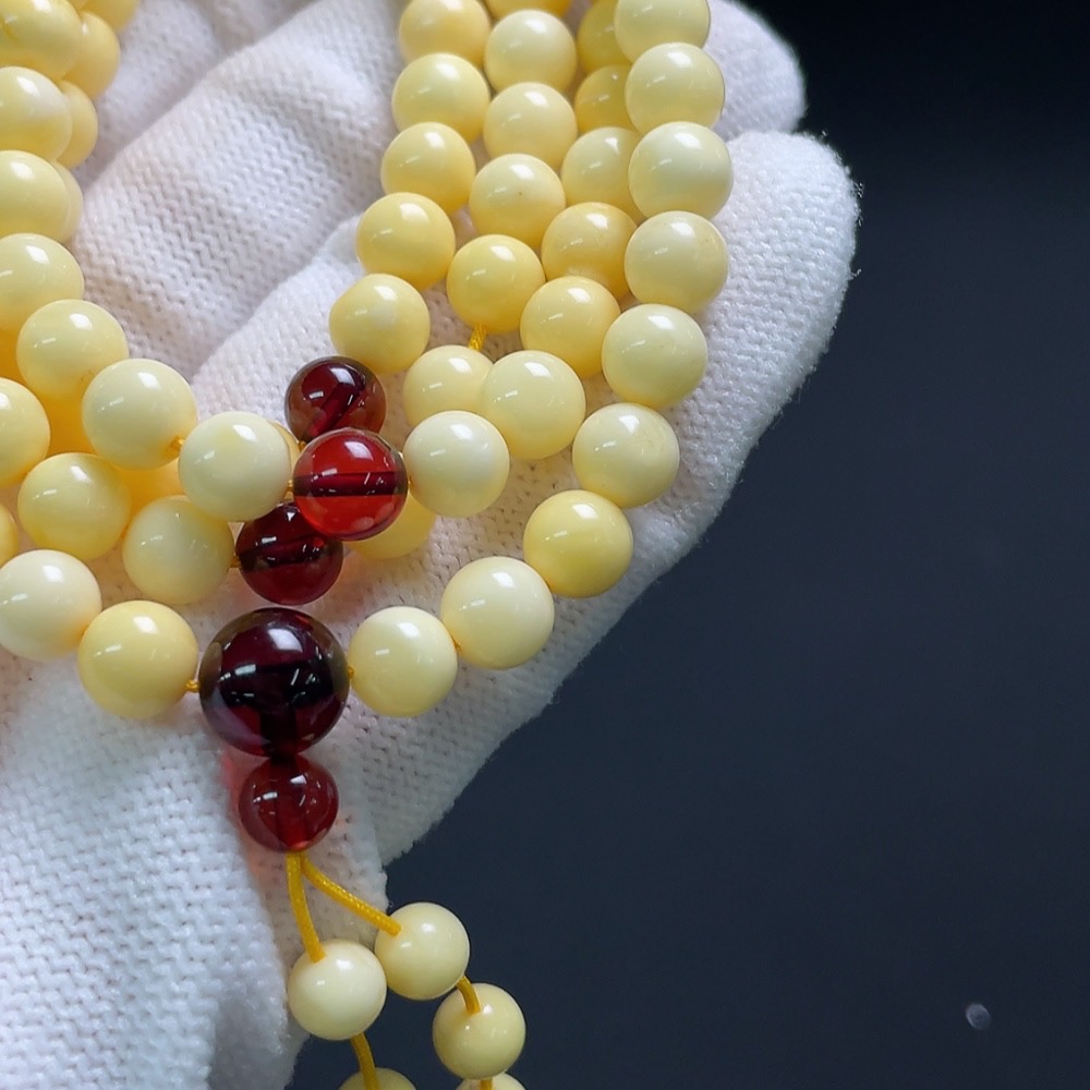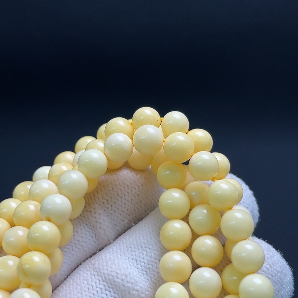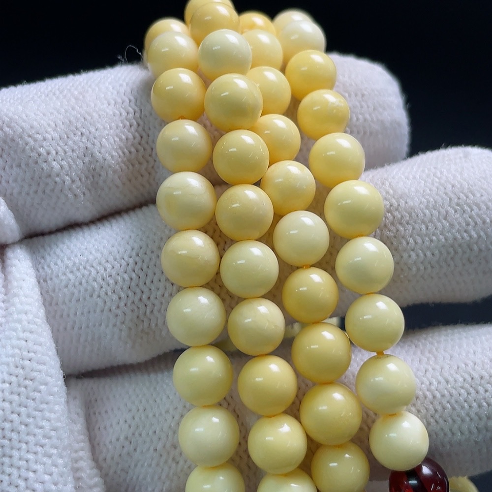 Amber and beeswax bead necklace, total weight approx. 19.2g, bead size about 6.5mm