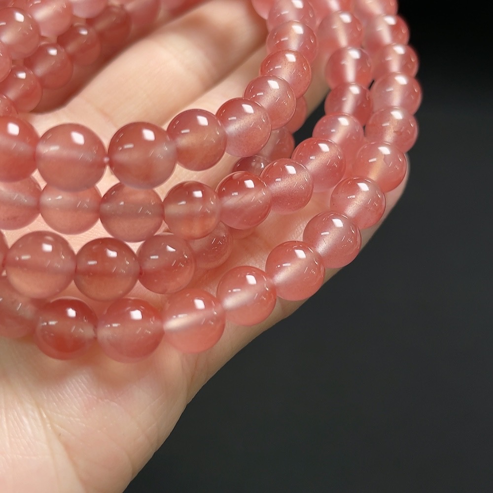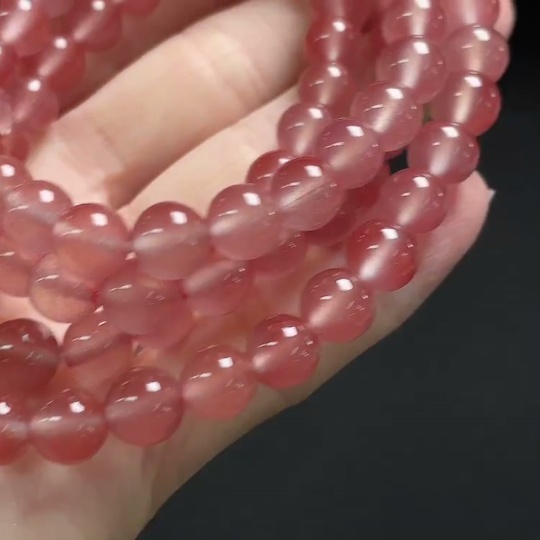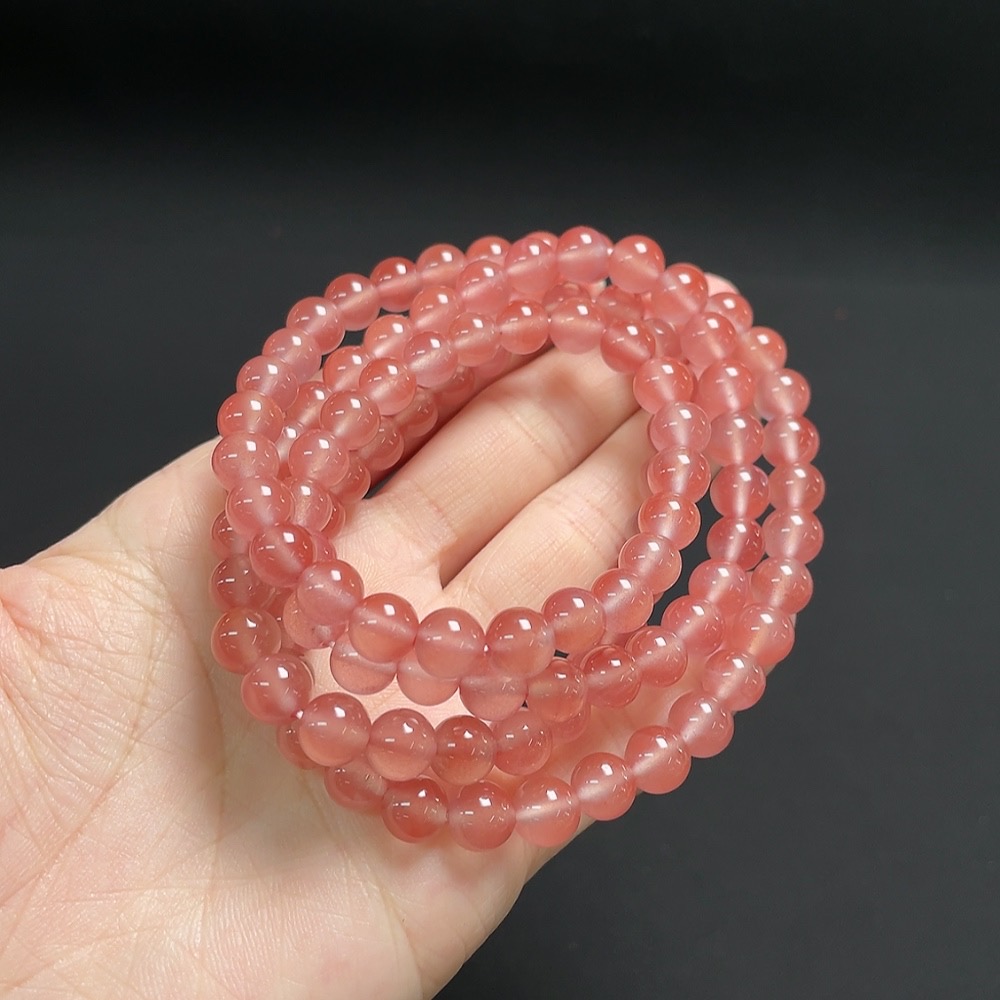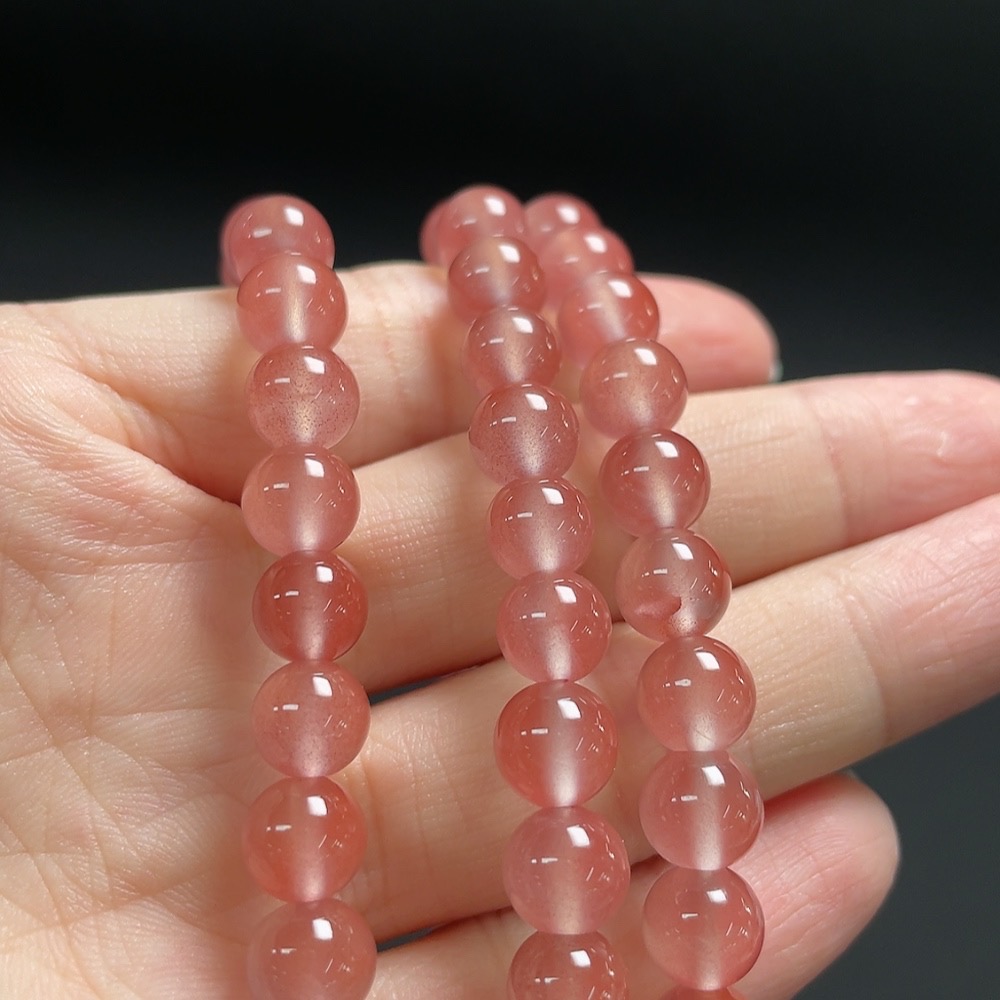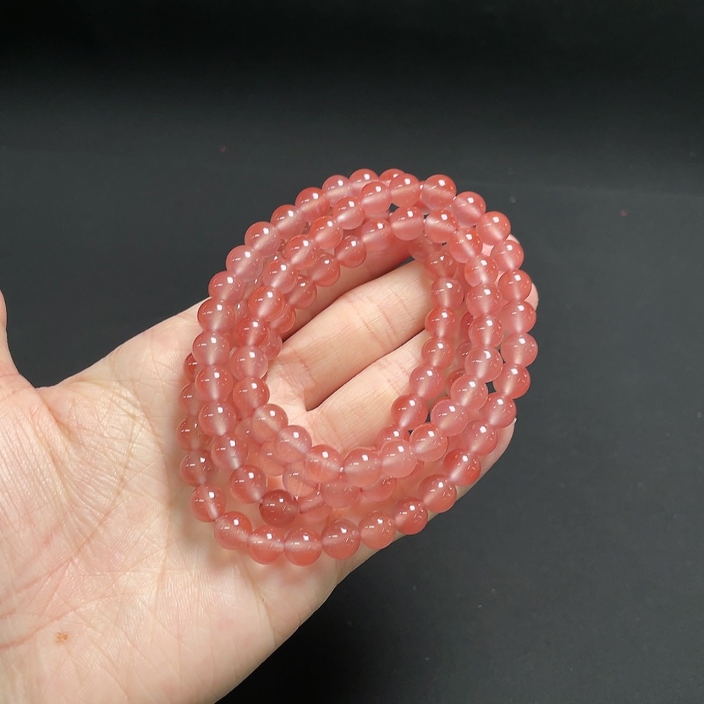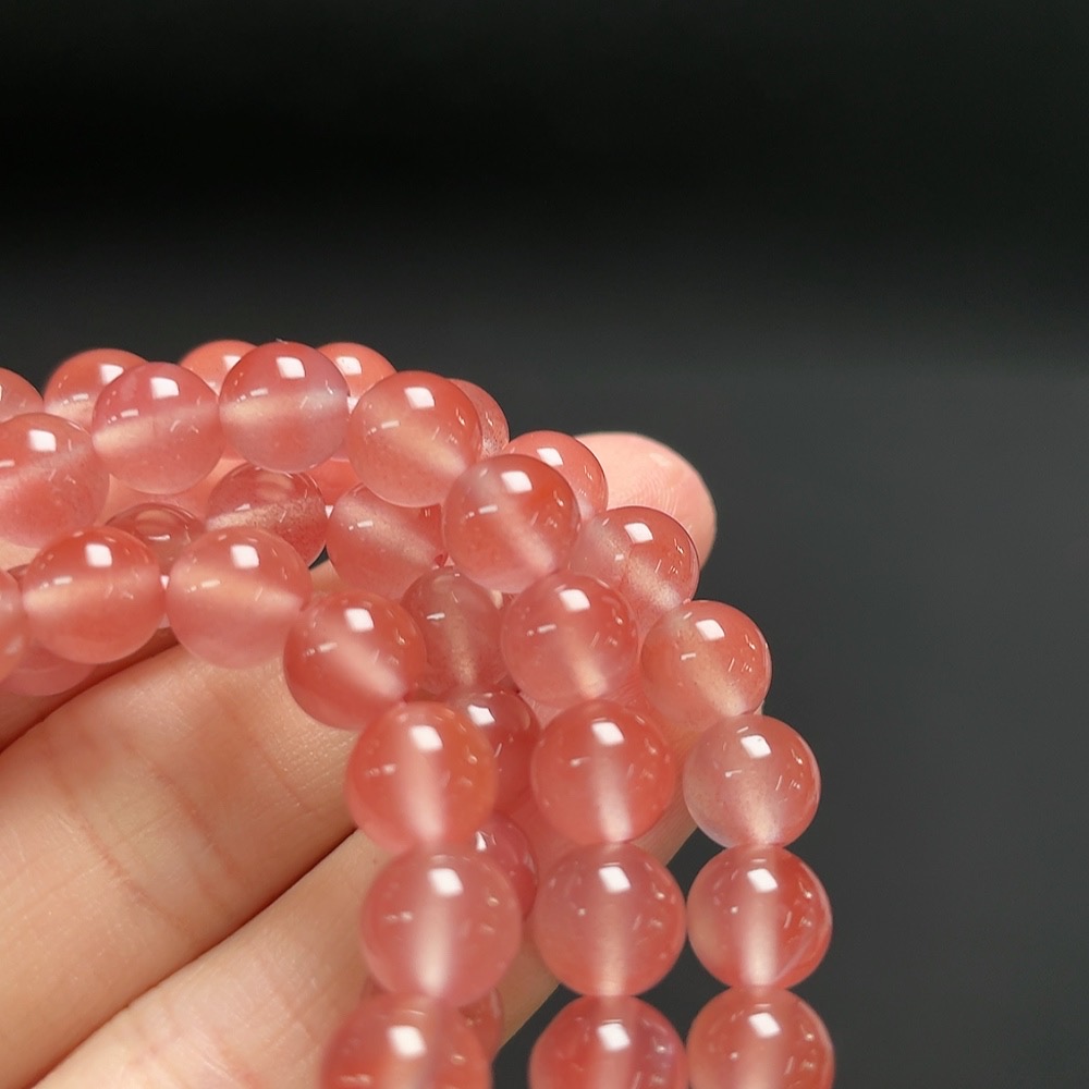 Red Agate Beaded Necklace with Visible Organic Matter, Total Weight Approx. 54.3g, Bead Size About 7.2mm