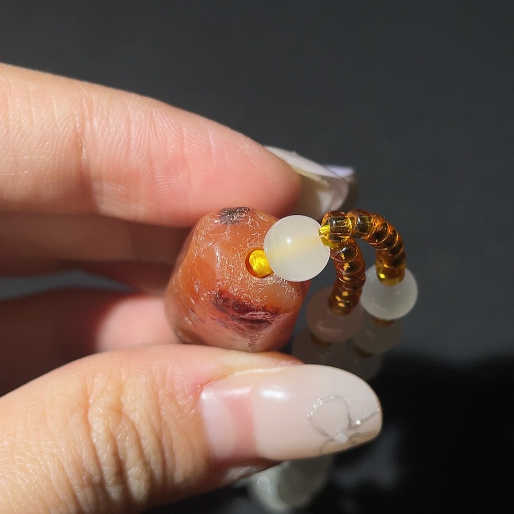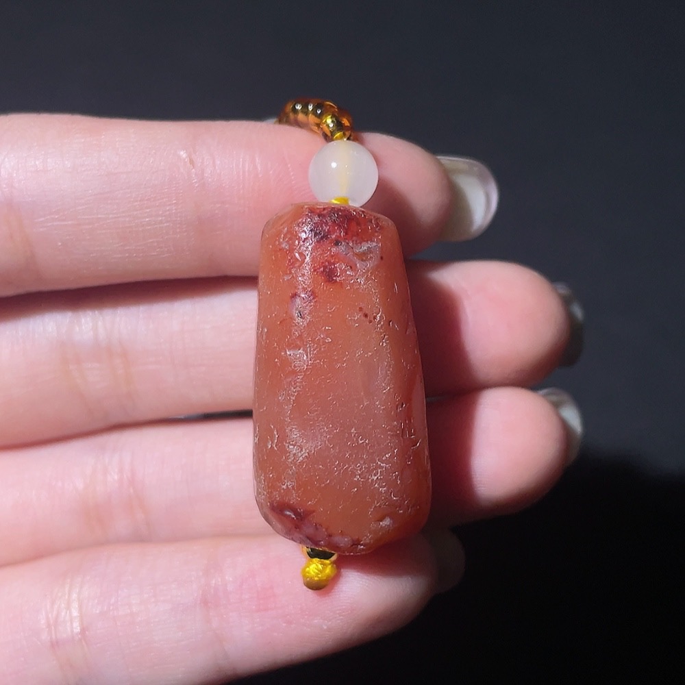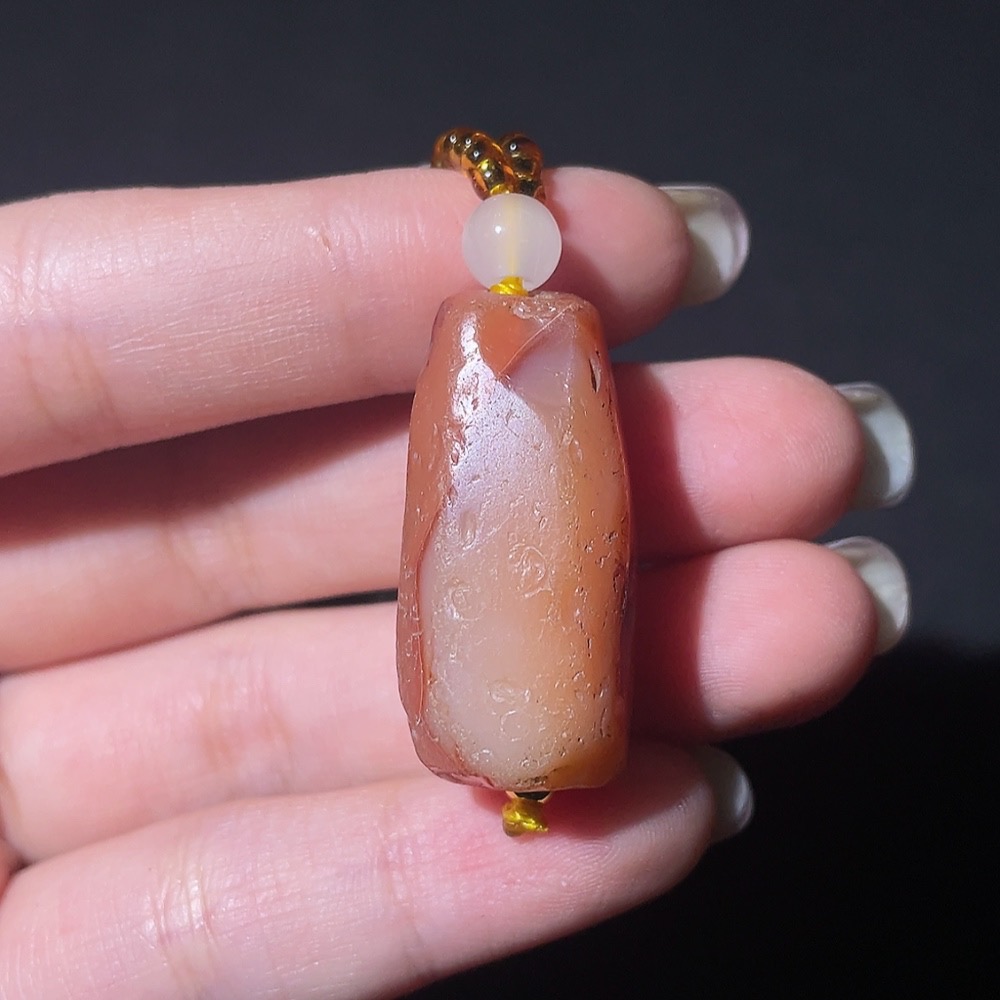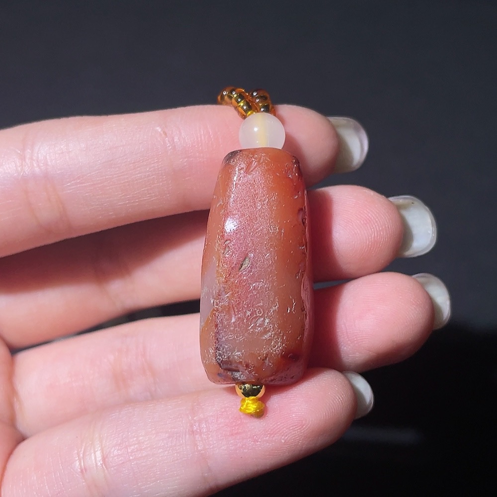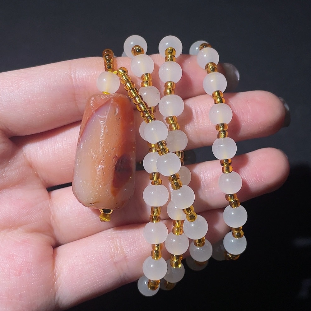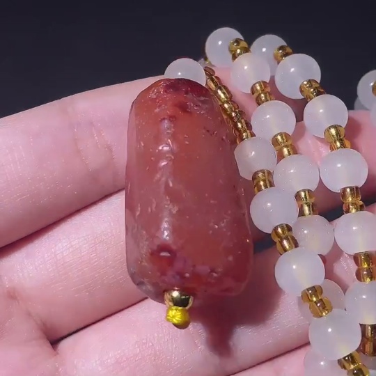 Doubtful Millennium Ancient Bead Necklace, Large Main Bead with Multiple Facets Cambay Agate Bead, Antique Beads
