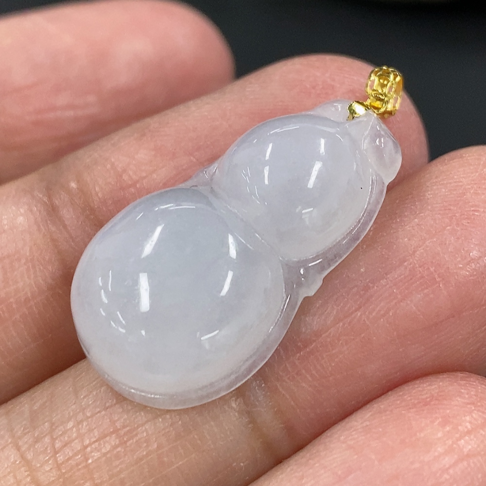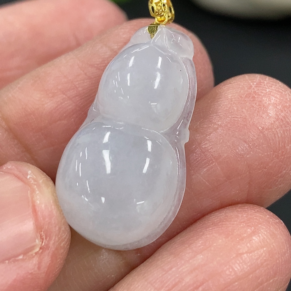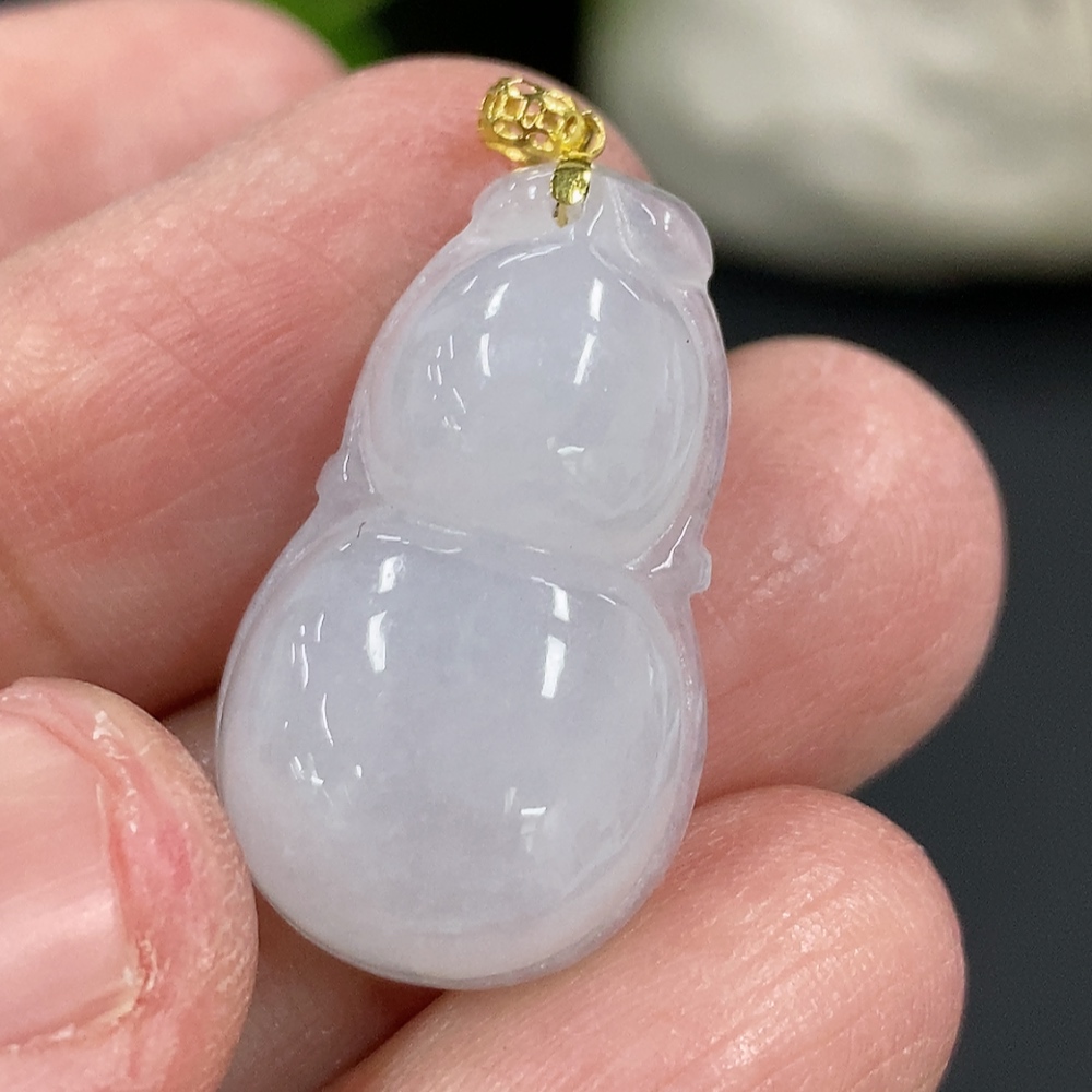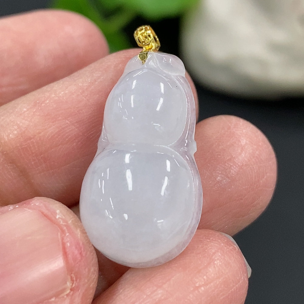 Jadeite Gourd Pendant, Total Weight Approx. 3.34g, 18k Gold Clasp