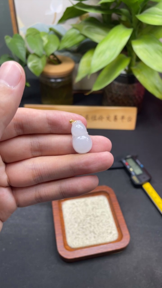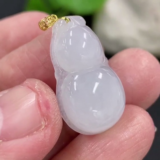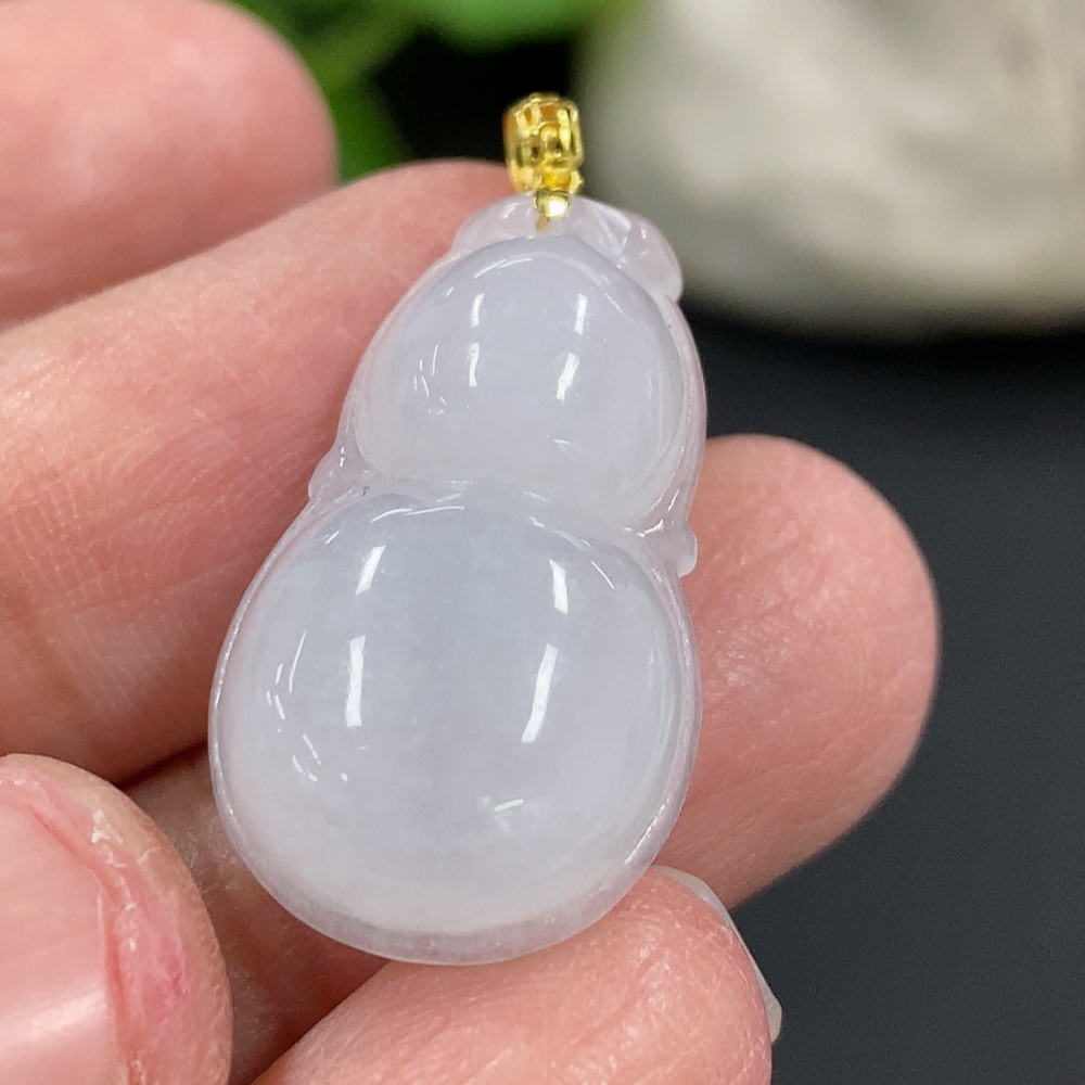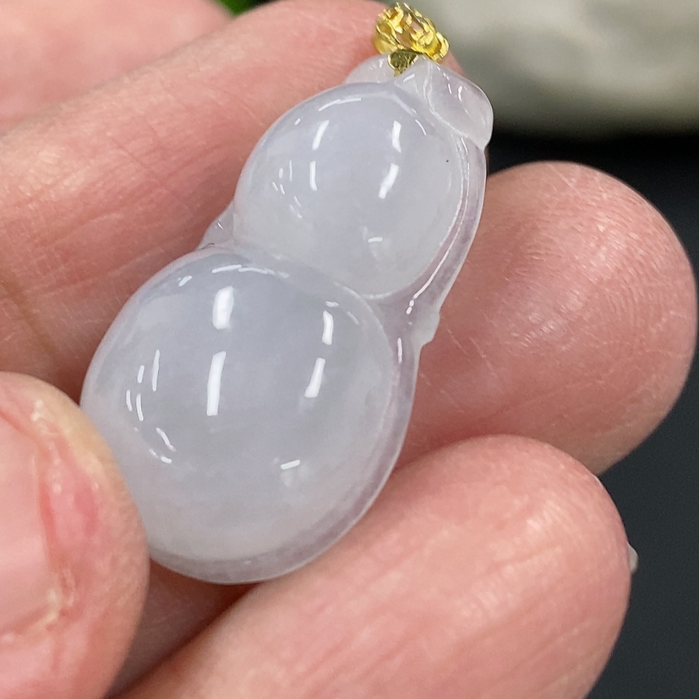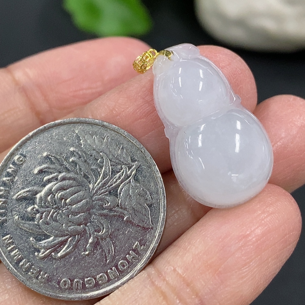 Jadeite Gourd Pendant, Total Weight Approx. 3.34g, 18k Gold Clasp