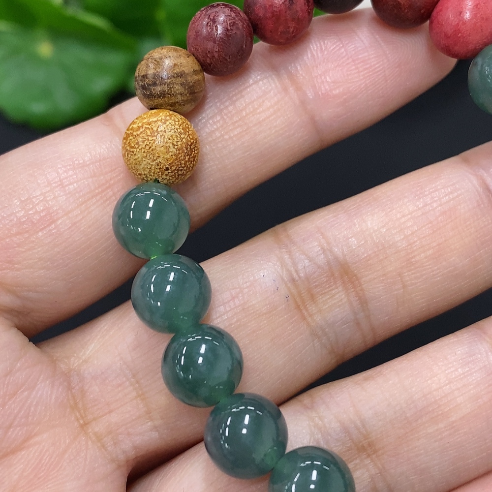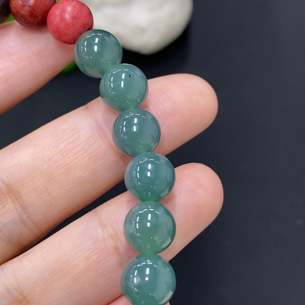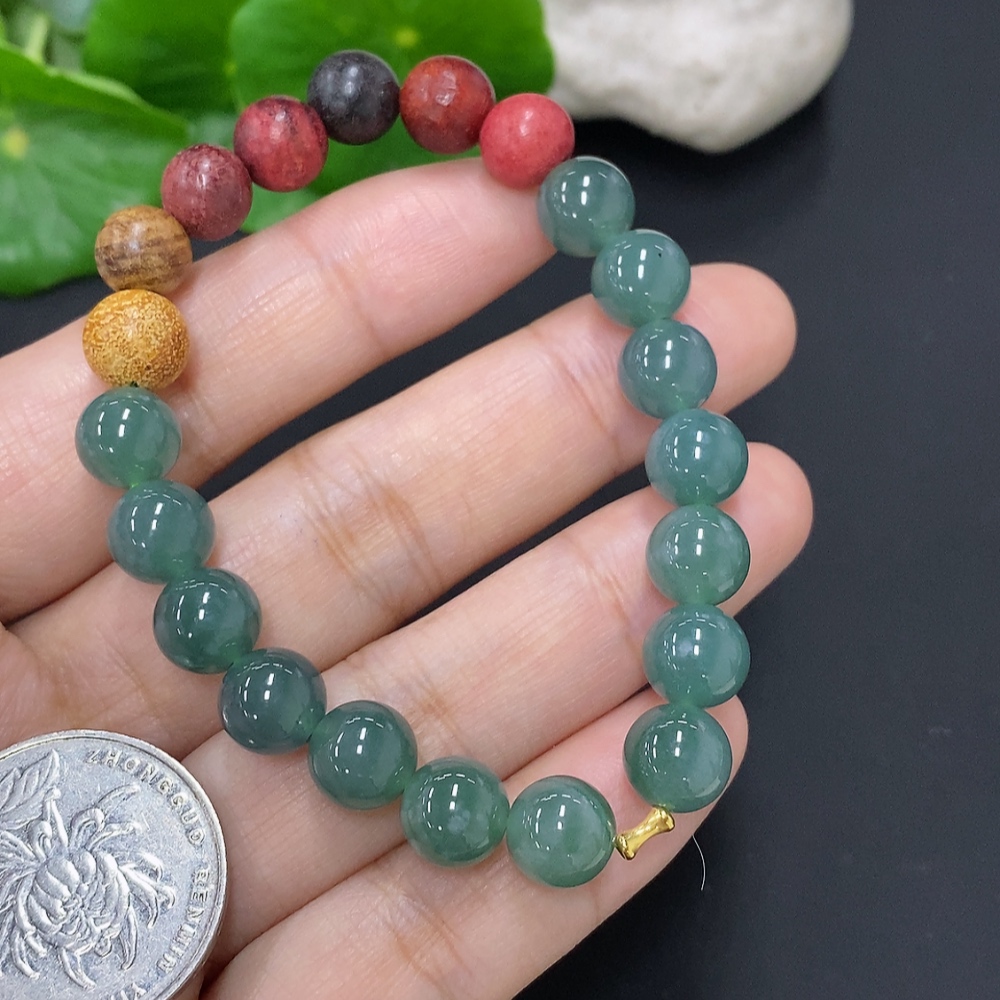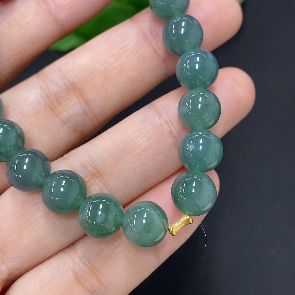 Jadeite bead necklace approx. 8.5mm (unmarked, gold content tested Au75%) total weight approx. 17.7g (gold fragile)