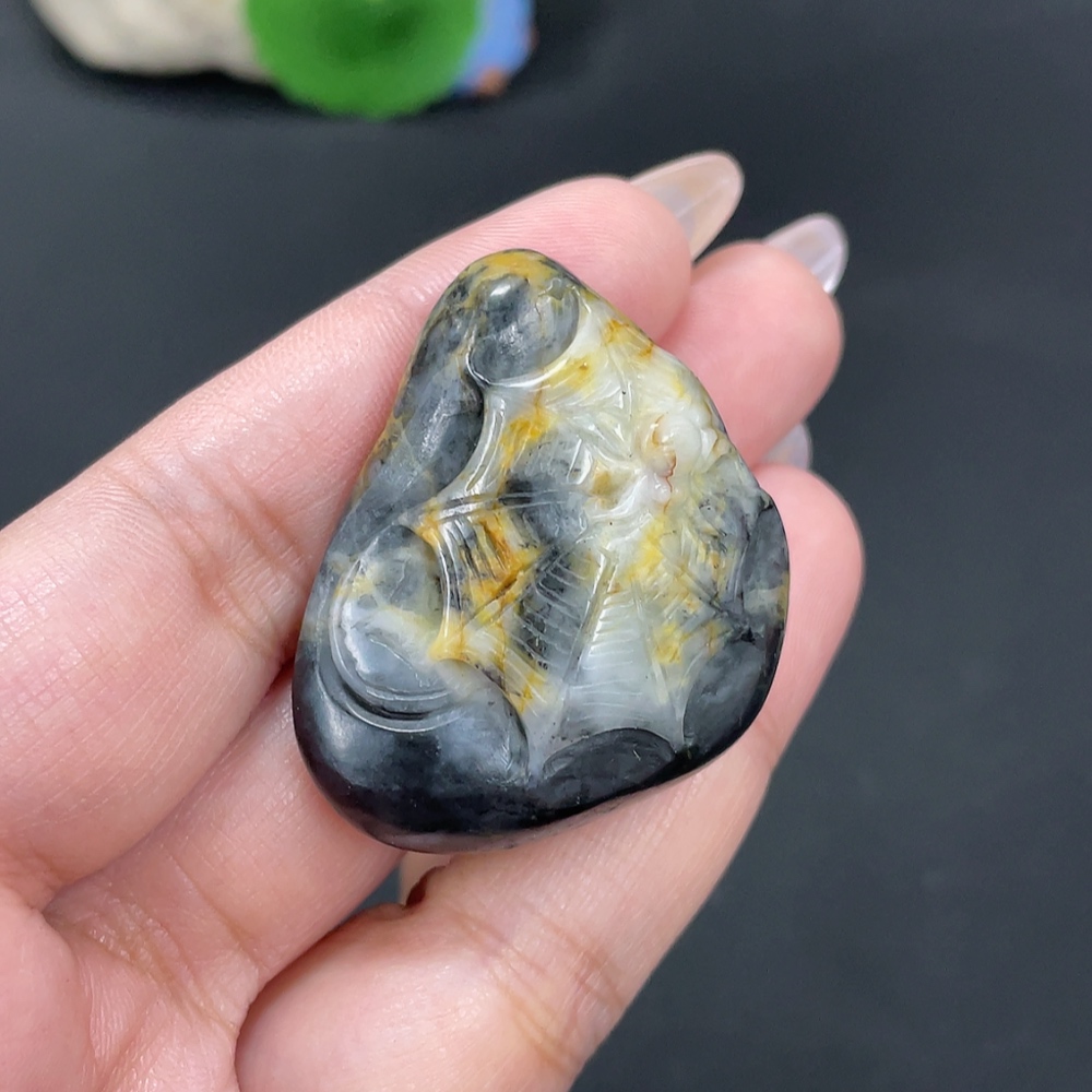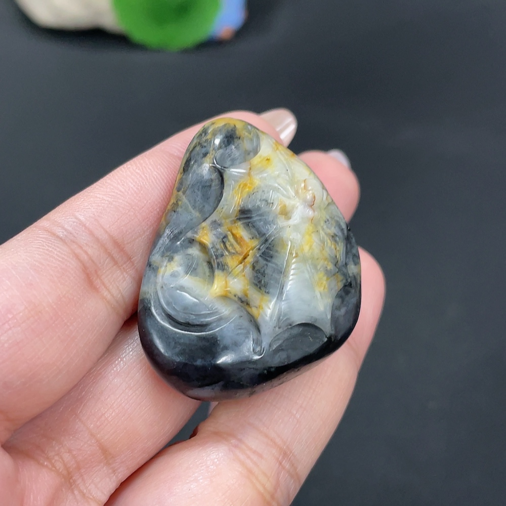 Hetian Jade Pendant "Contentment" Total Weight Approx. 35.7g Undetermined Skin Color Origin