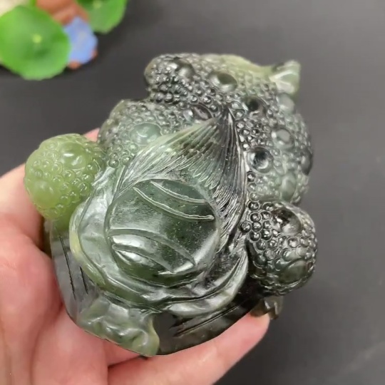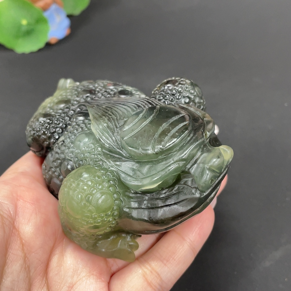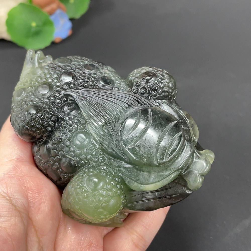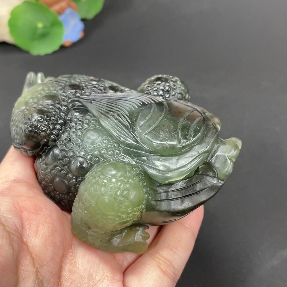 Xiuyu (serpentine jade) ornament - Three-legged Golden Toad, total weight approx. 355g