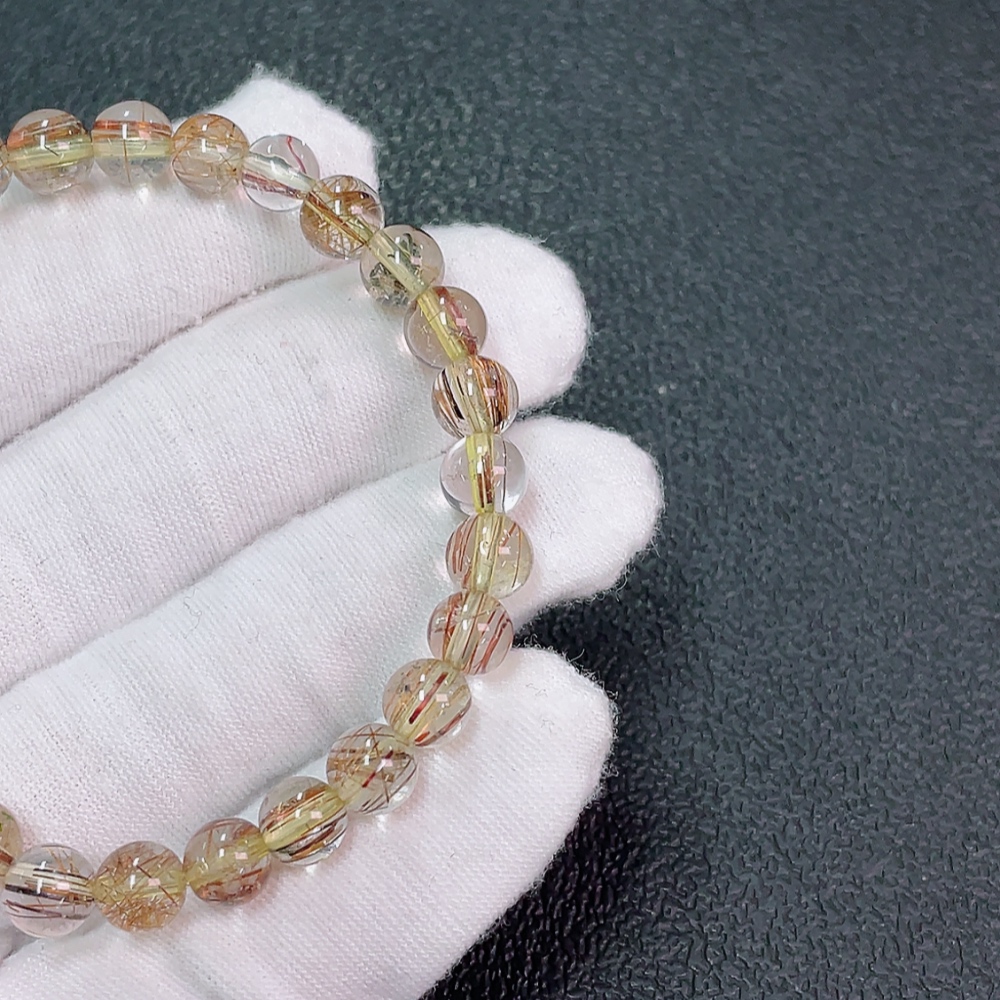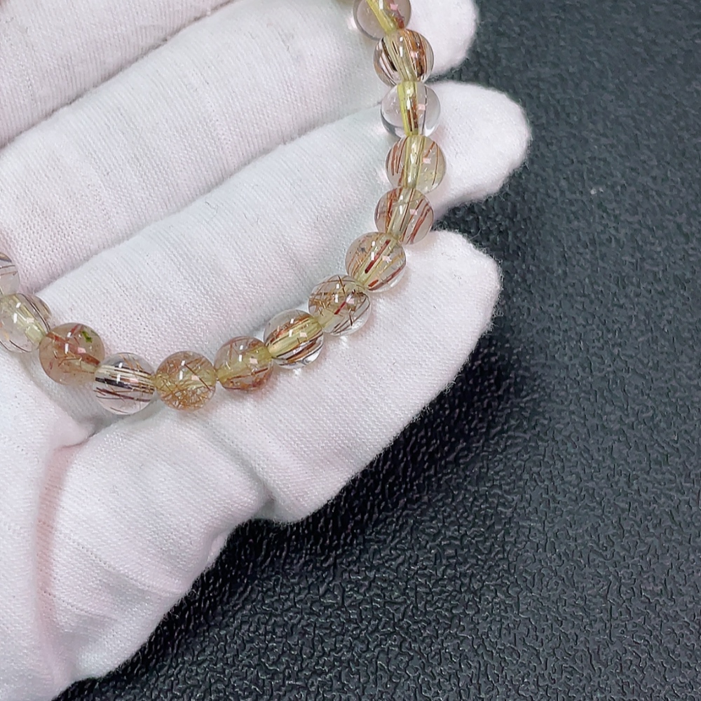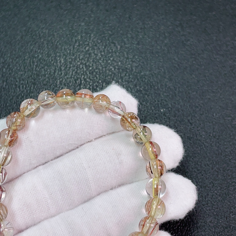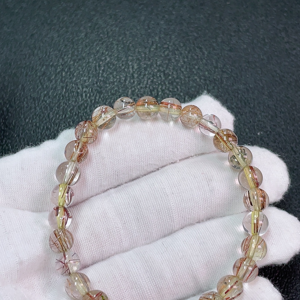 Crystal Bracelet with Visible Organic Matter, Total Weight Approx. 11.30g, Size About 6.7mm